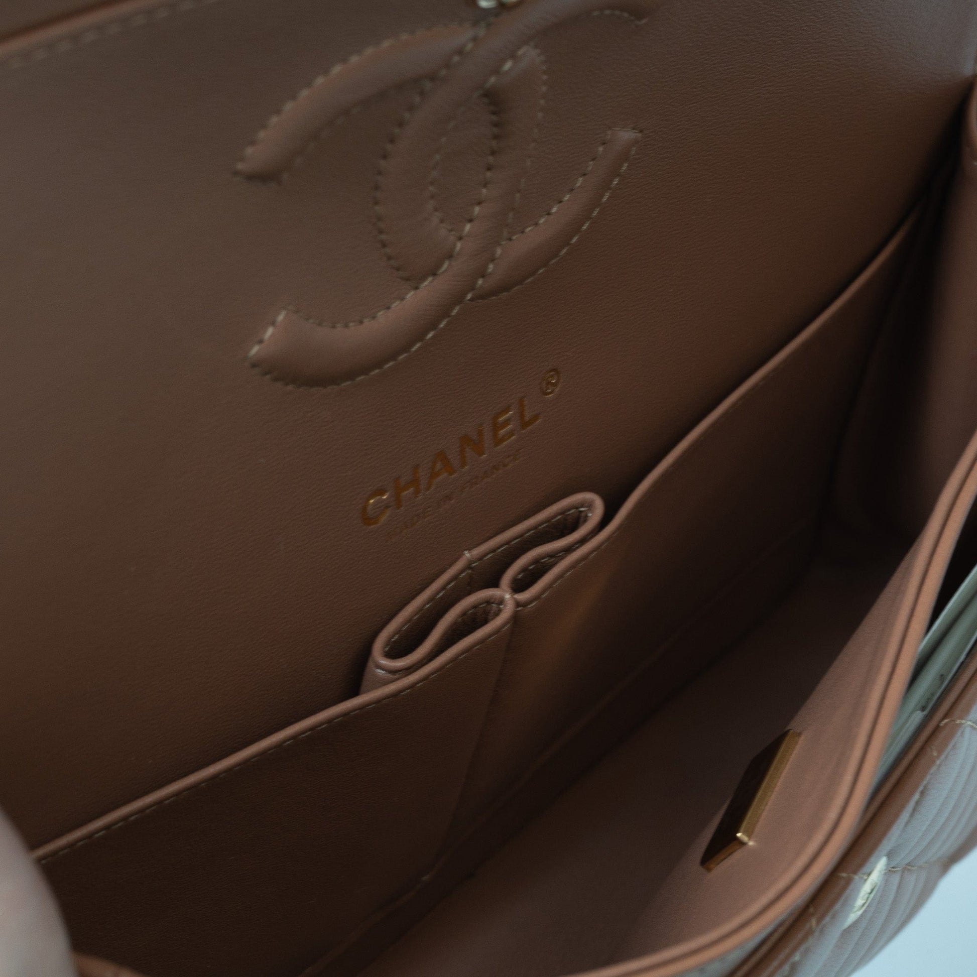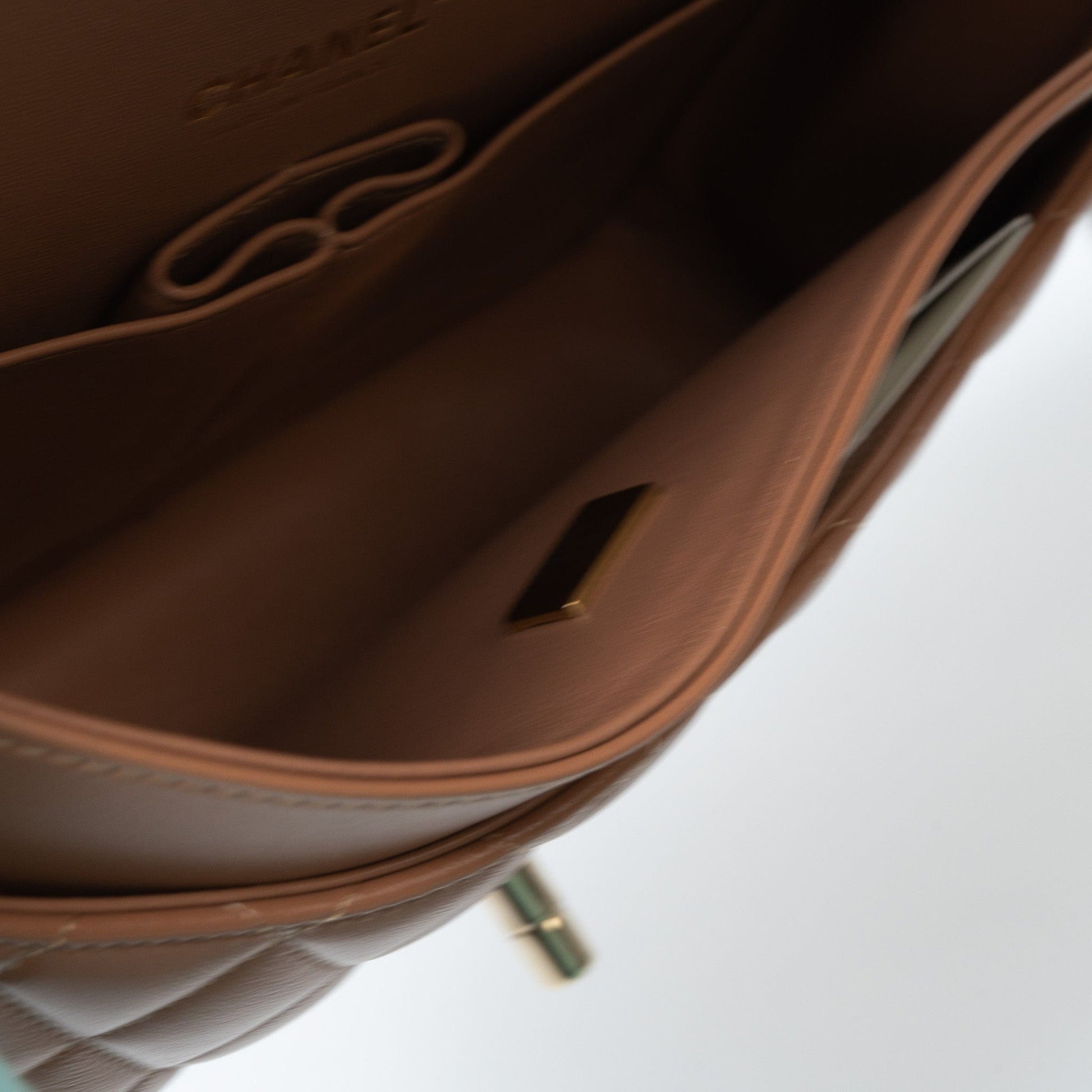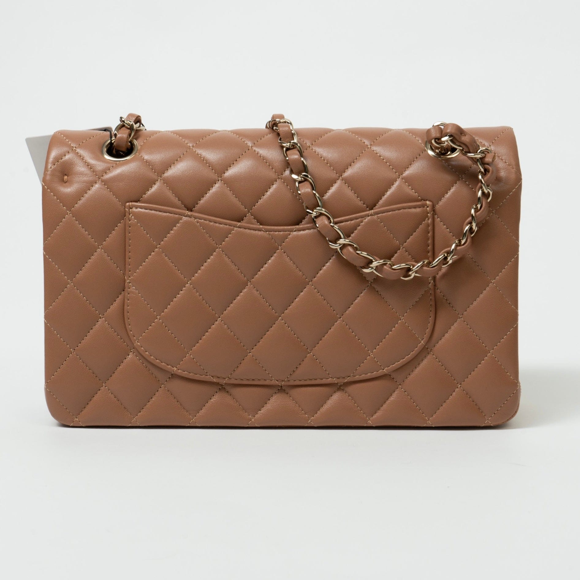 22S Caramel Lambskin Quilted Classic Flap Medium LGHW
