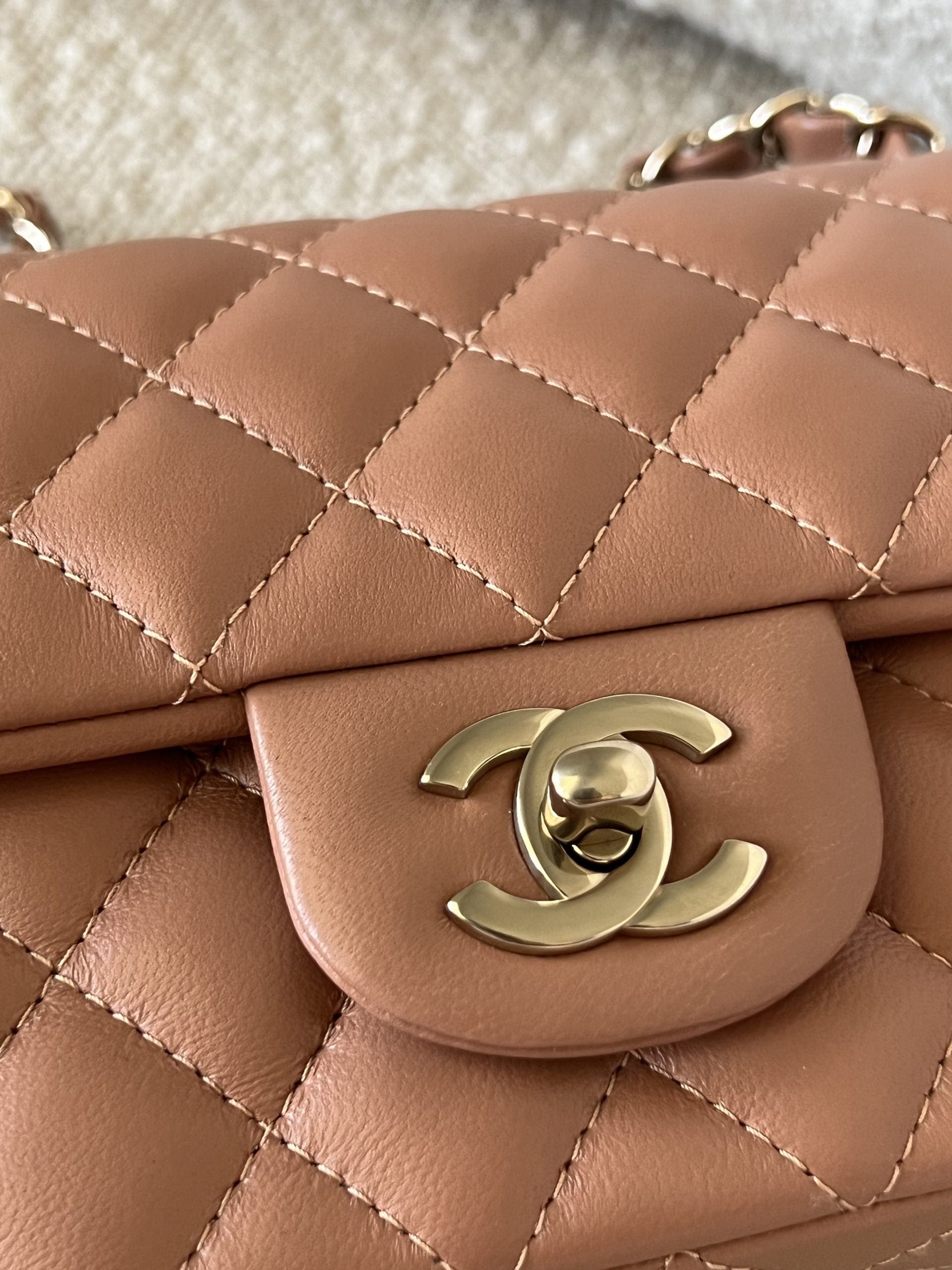 22S Caramel Mini Rectangular Lambskin Quilted LGHW