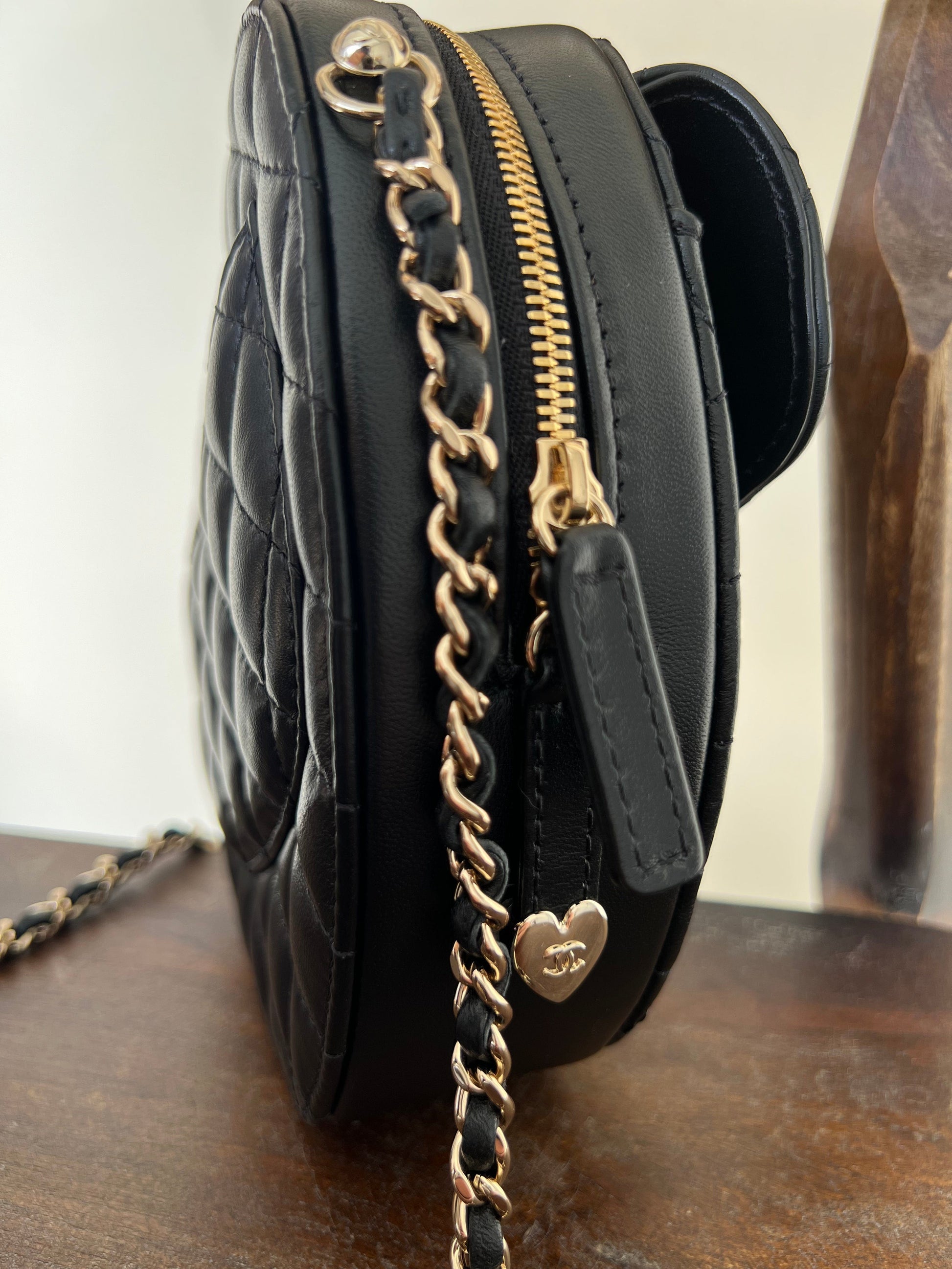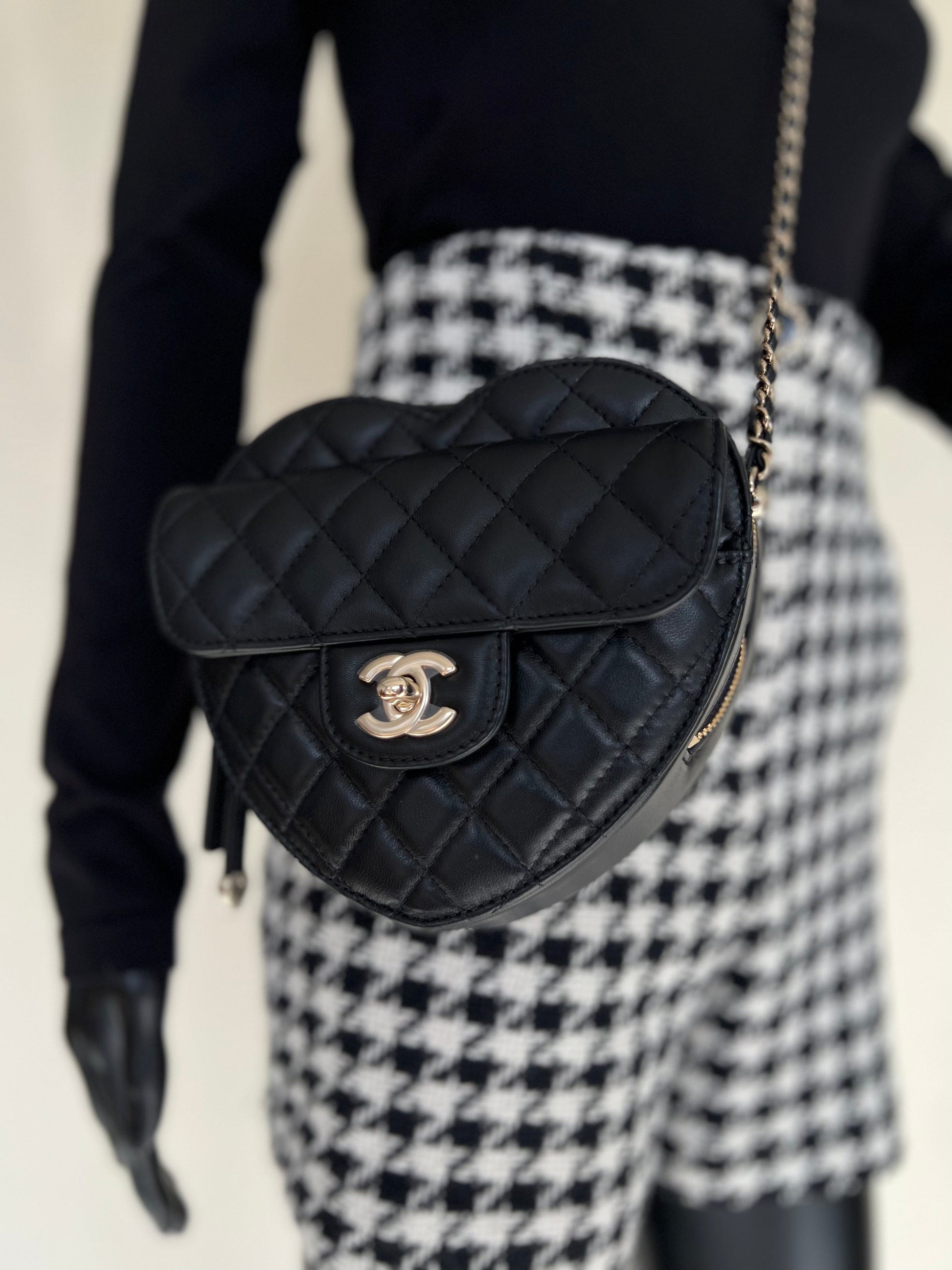 22S CC In Love Black Lambskin Quilted Large Heart Bag LGHW