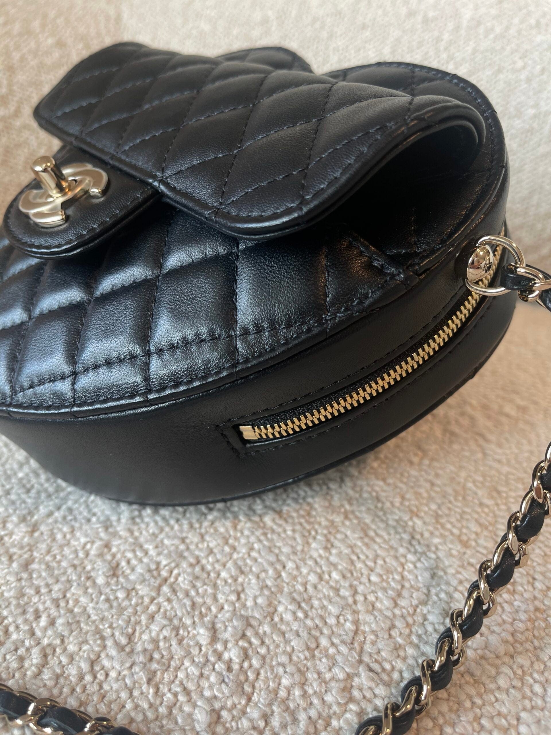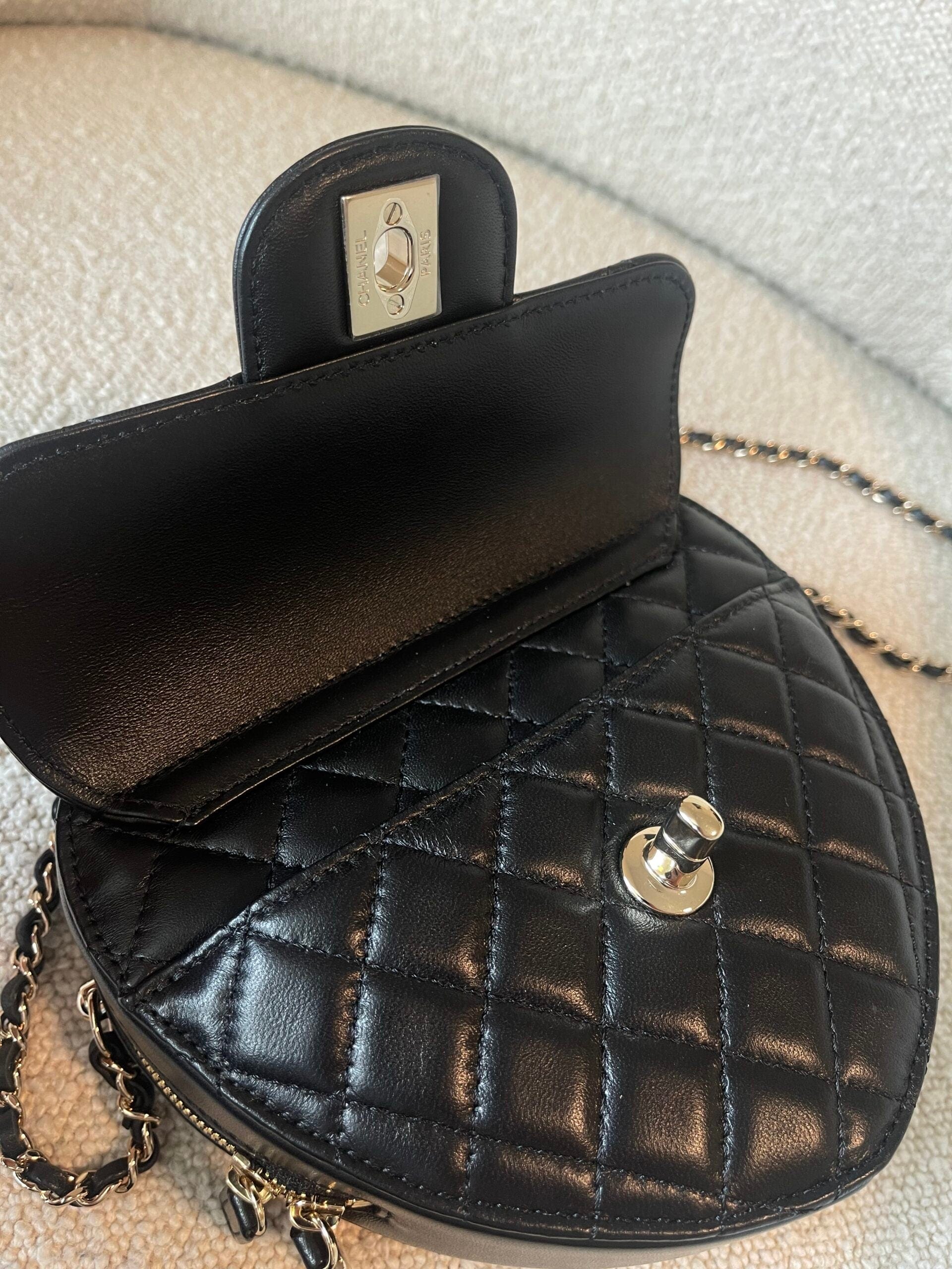 22S CC In Love Black Lambskin Quilted Large Heart Bag LGHW