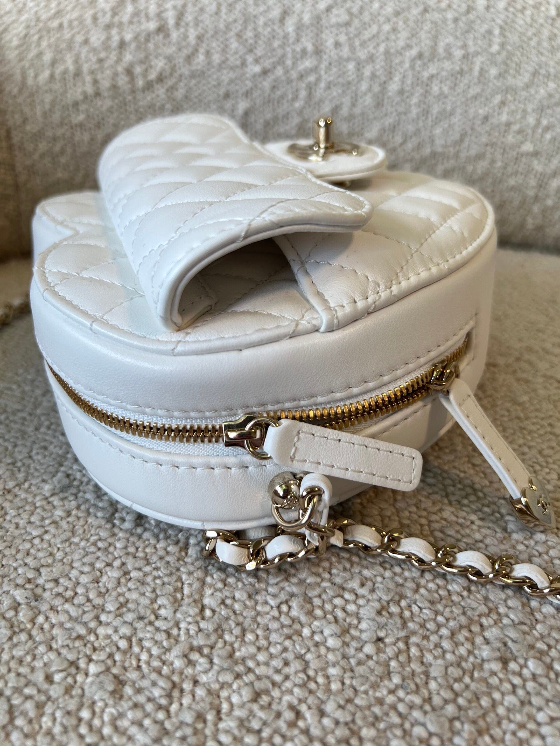 22S CC In Love White Lambskin Quilted Large Heart Bag LGHW