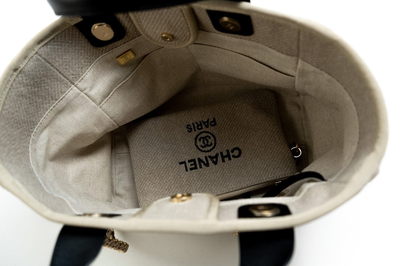 22S Dark Beige Deauville Shopping Bag Small Light Gold Hardware