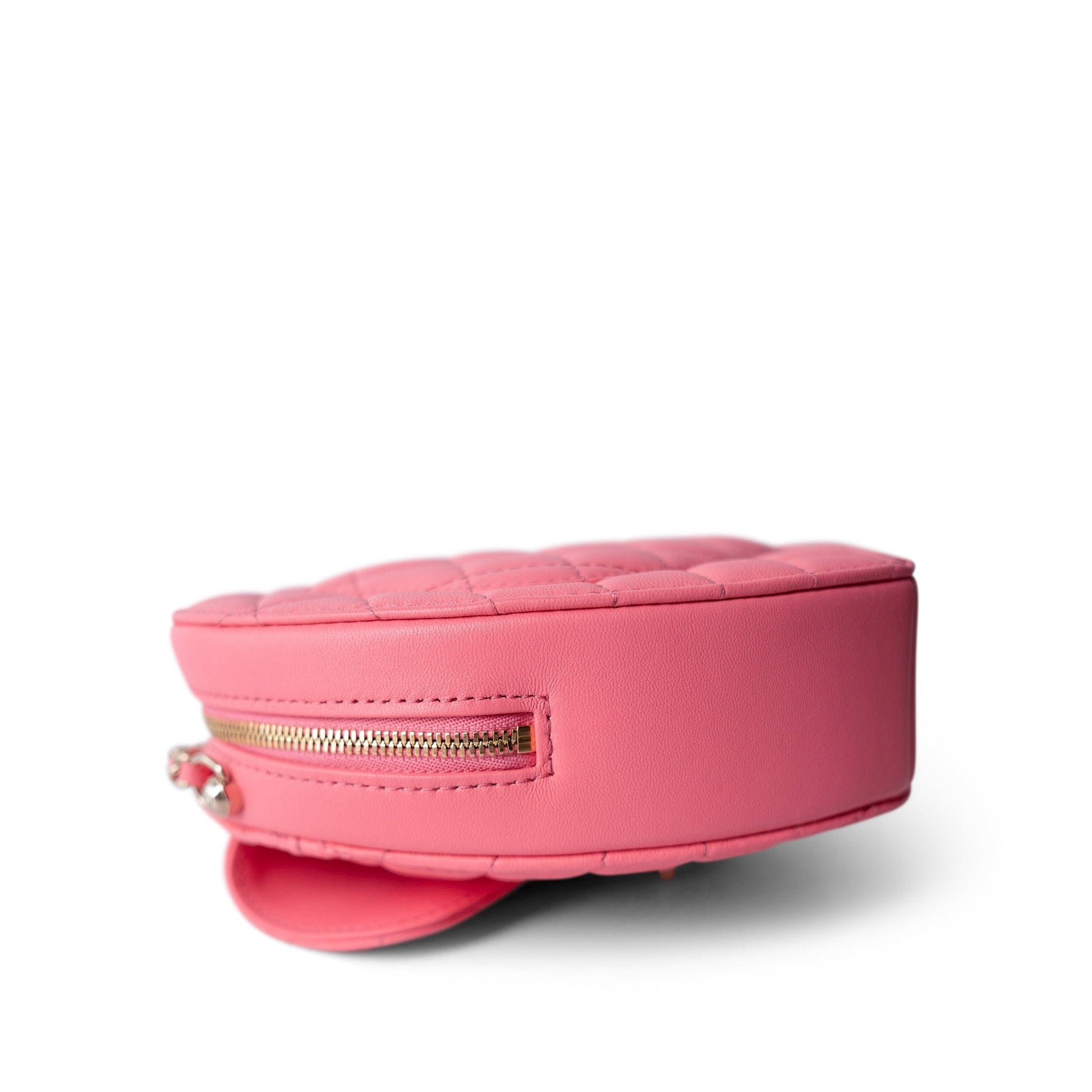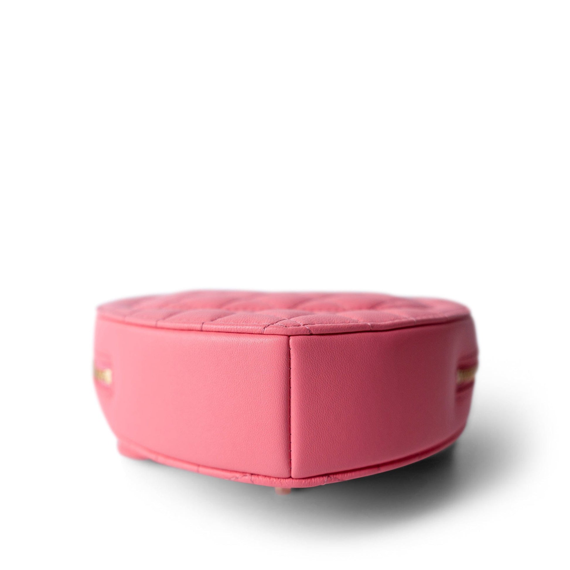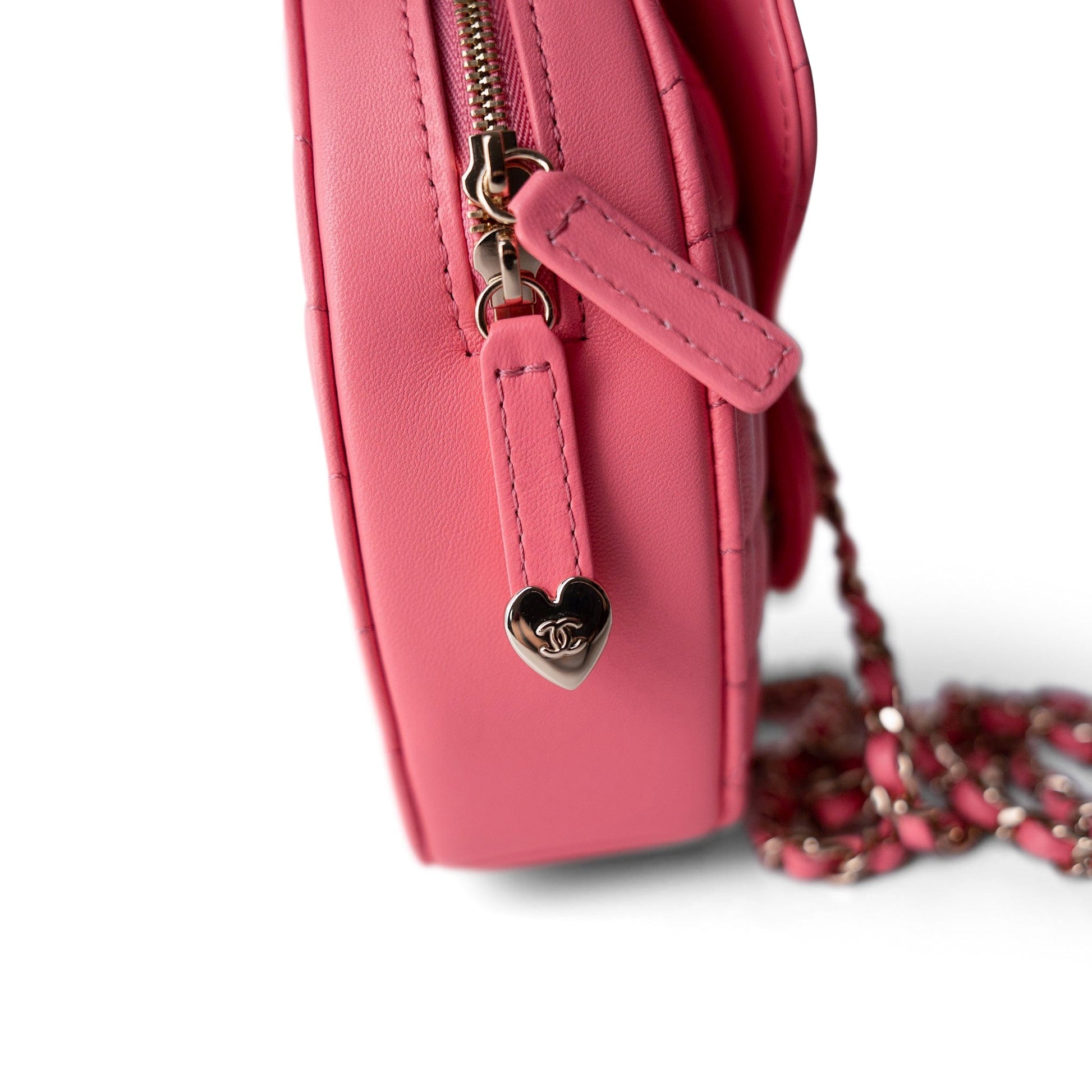 22S Pink Lambskin Quilted Large Heart Bag Light Gold Hardware