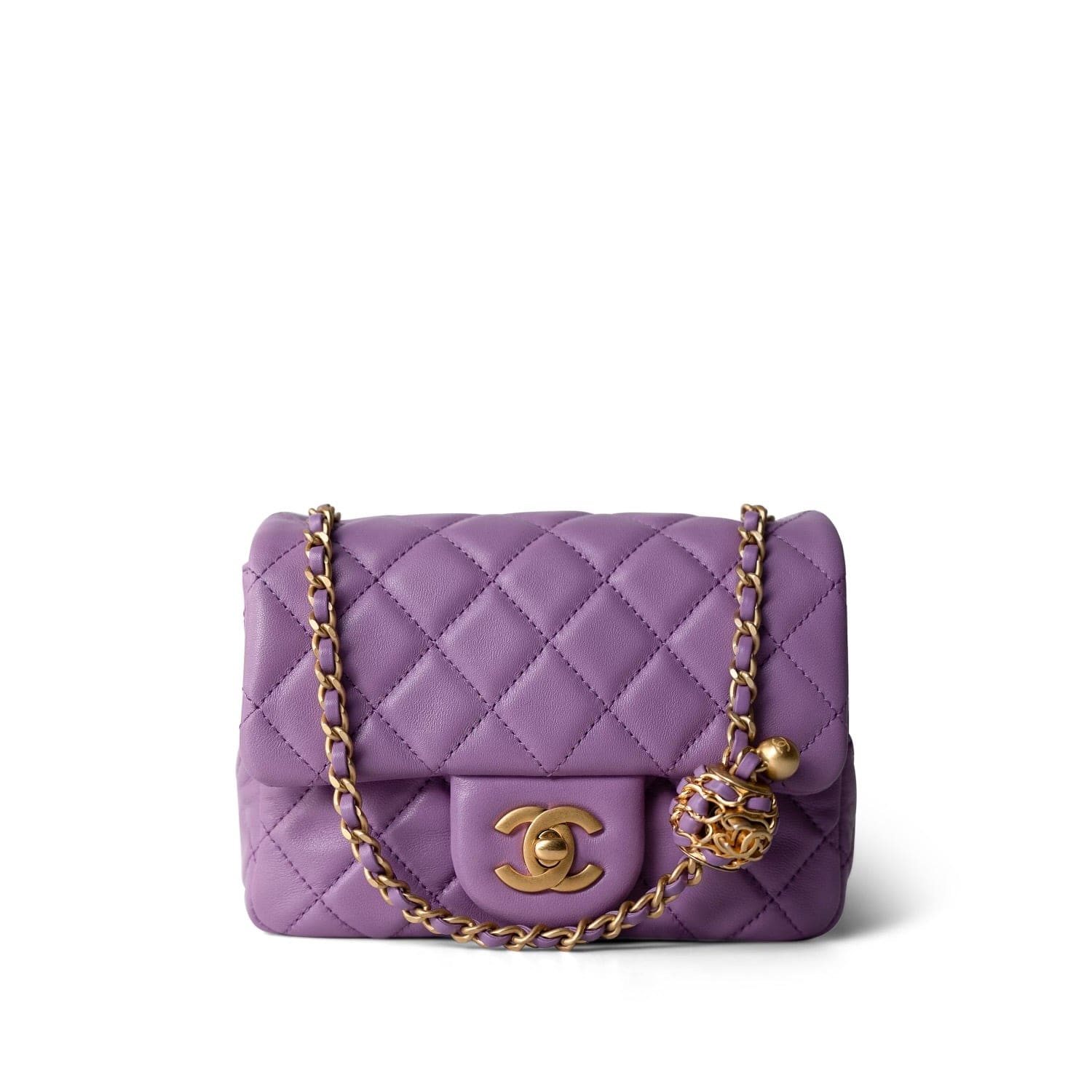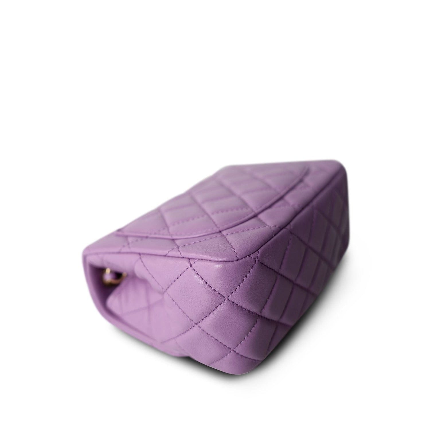 22S Purple Lambskin Quilted Pearl Crush Mini Square Aged Gold Hardware