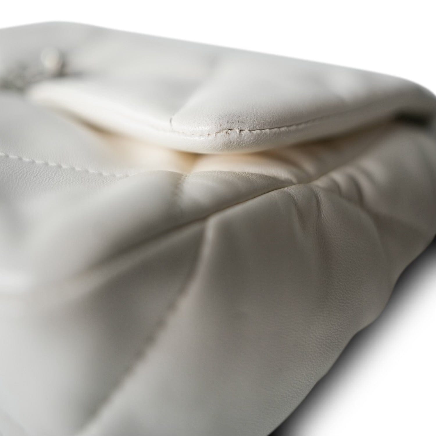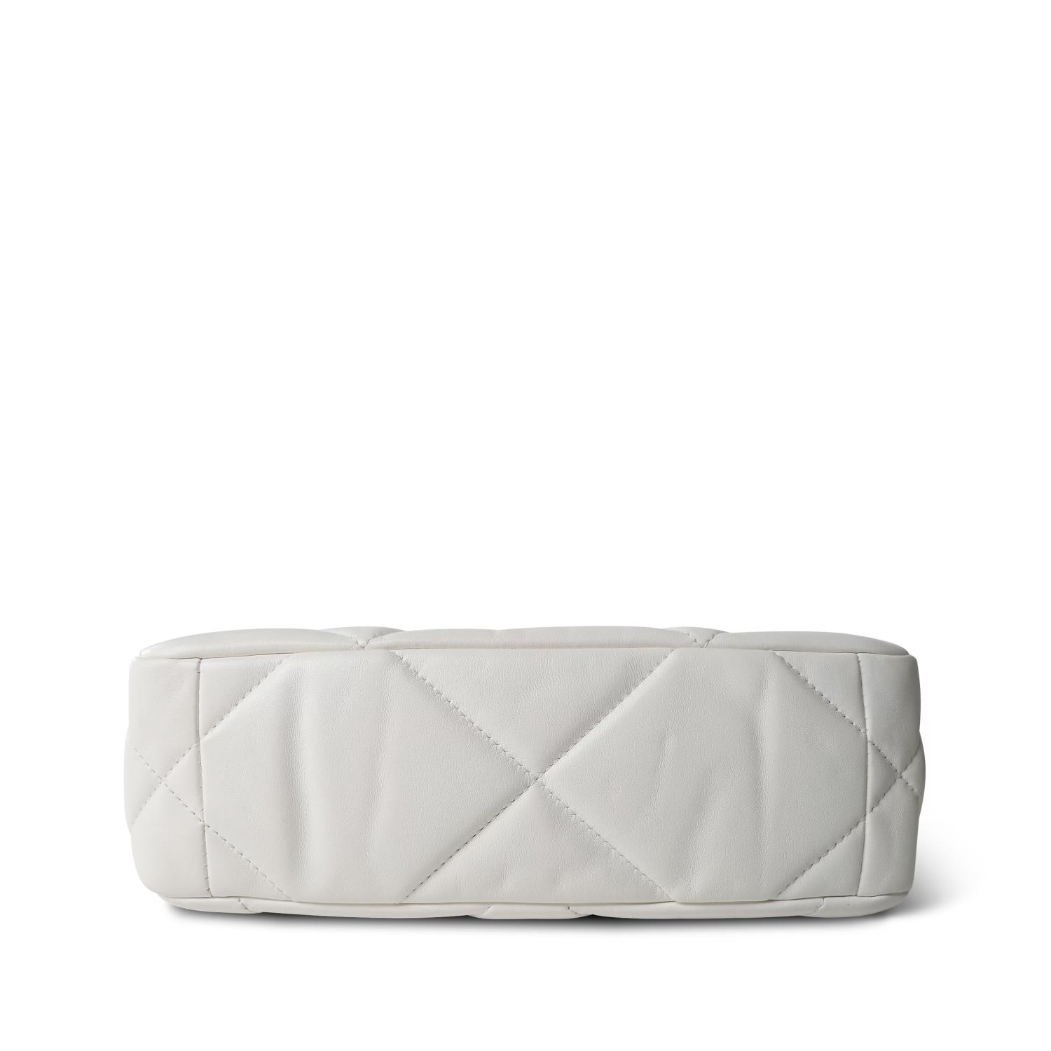 22S White Lambskin Quilted 19 Flap Small Mixed Hardware