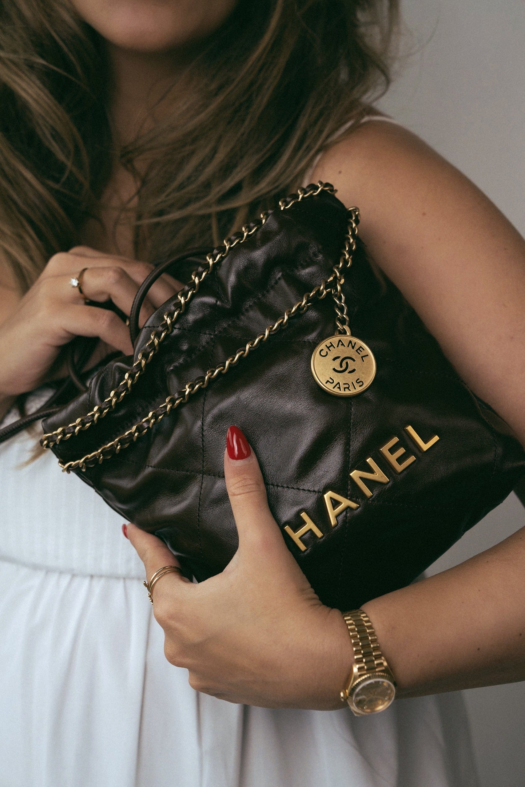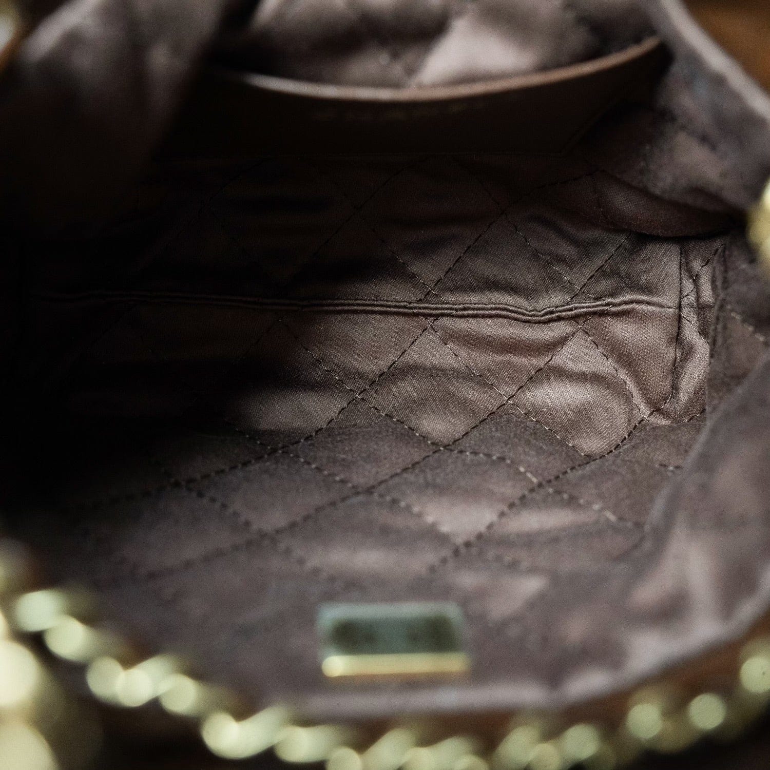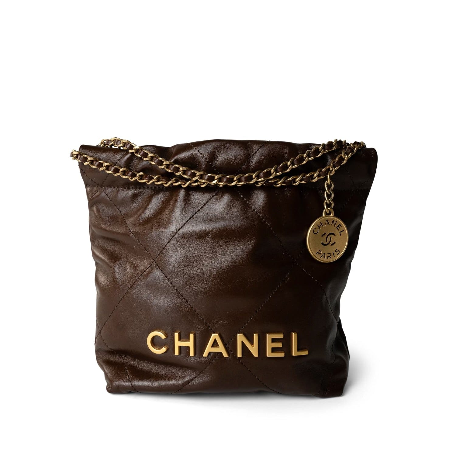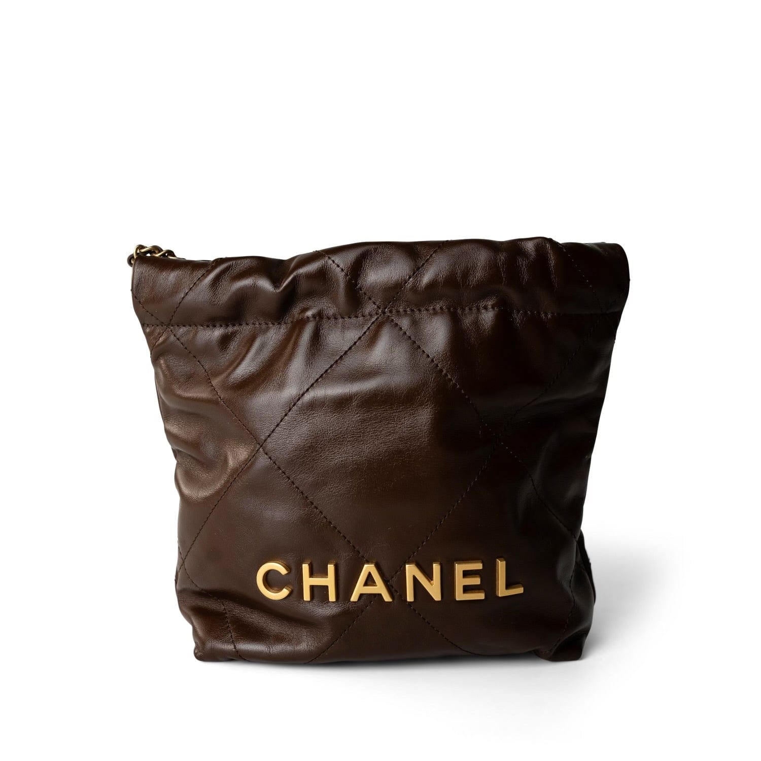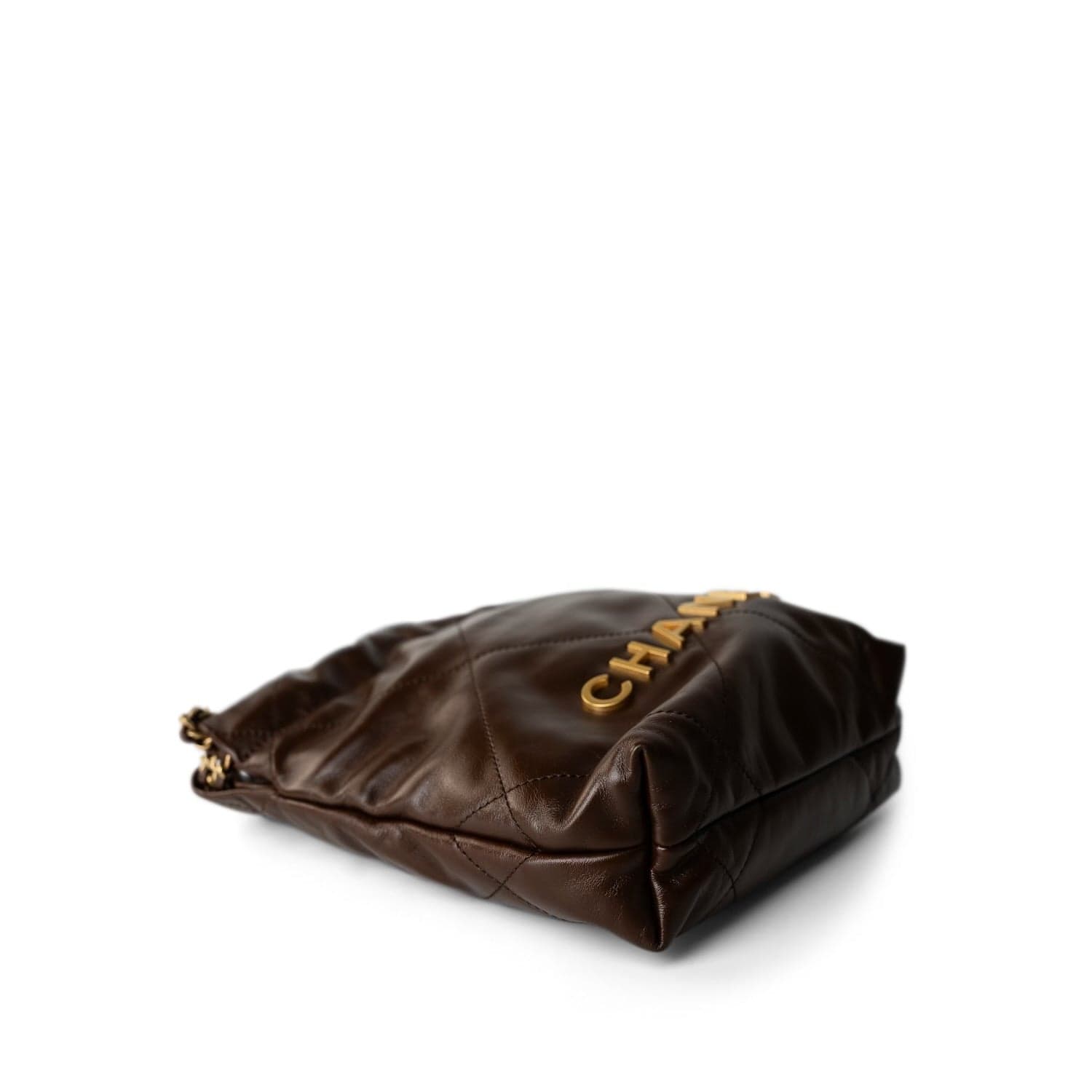 23A Brown Calfskin Quilted Mini 22 Bag Antique Gold Hardware
