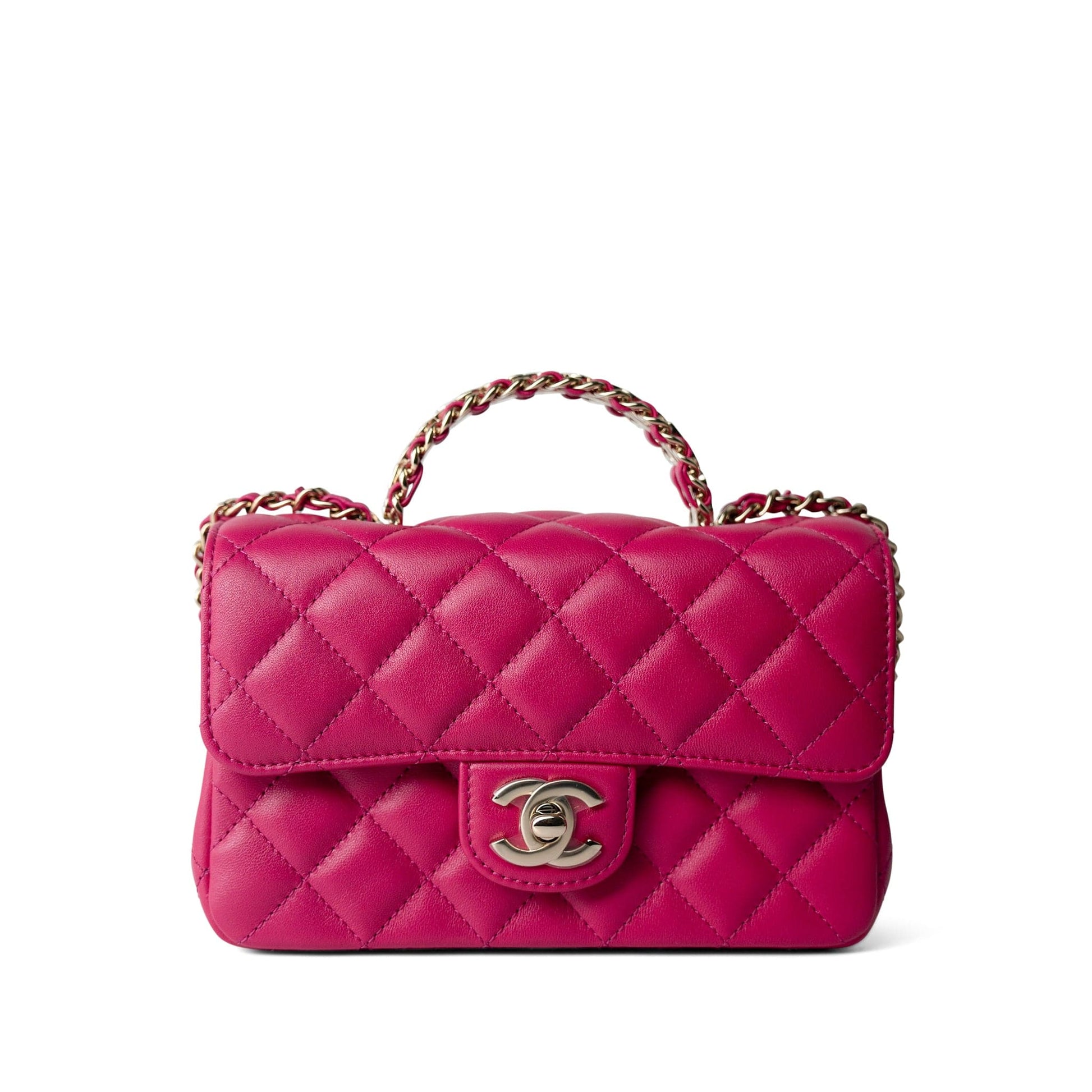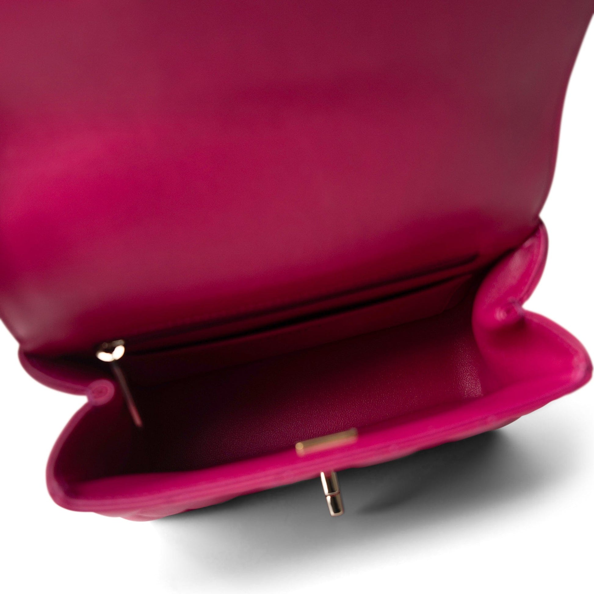 23A Dark Pink Lambskin Quilted Mini Flap Bag with Jeweled Top Handle Light Gold Hardware