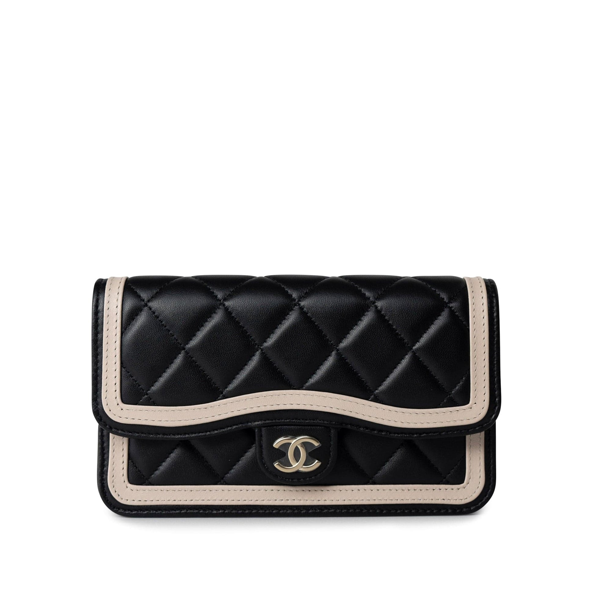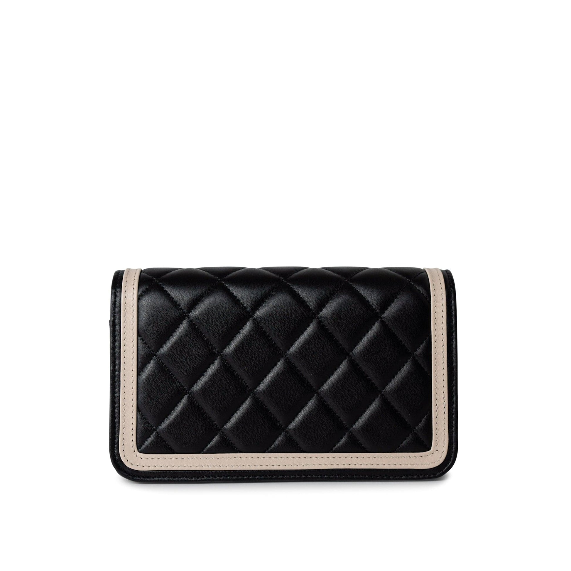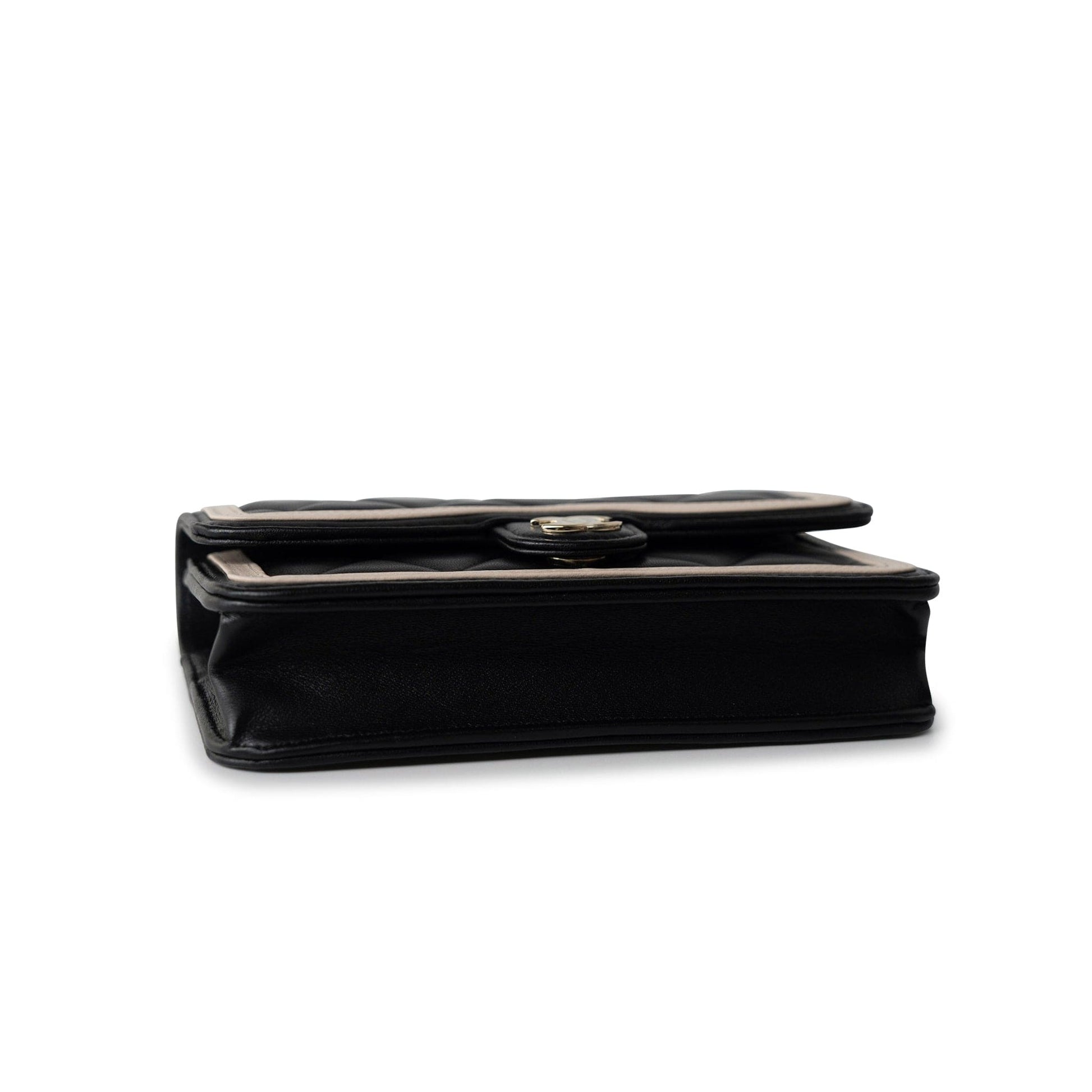 23B Black / Beige O Phone Holder w/ Chain Flap Light Gold Hardware