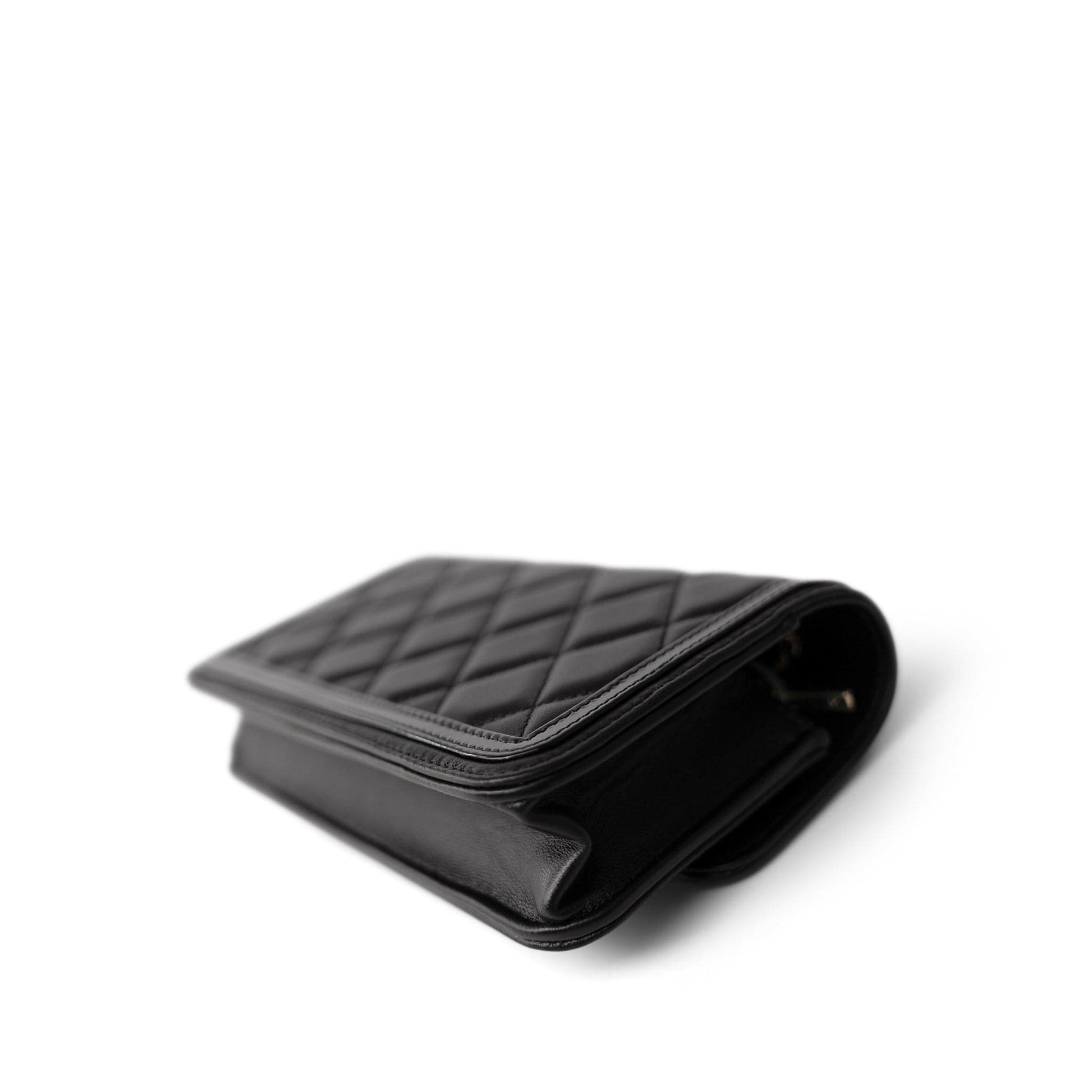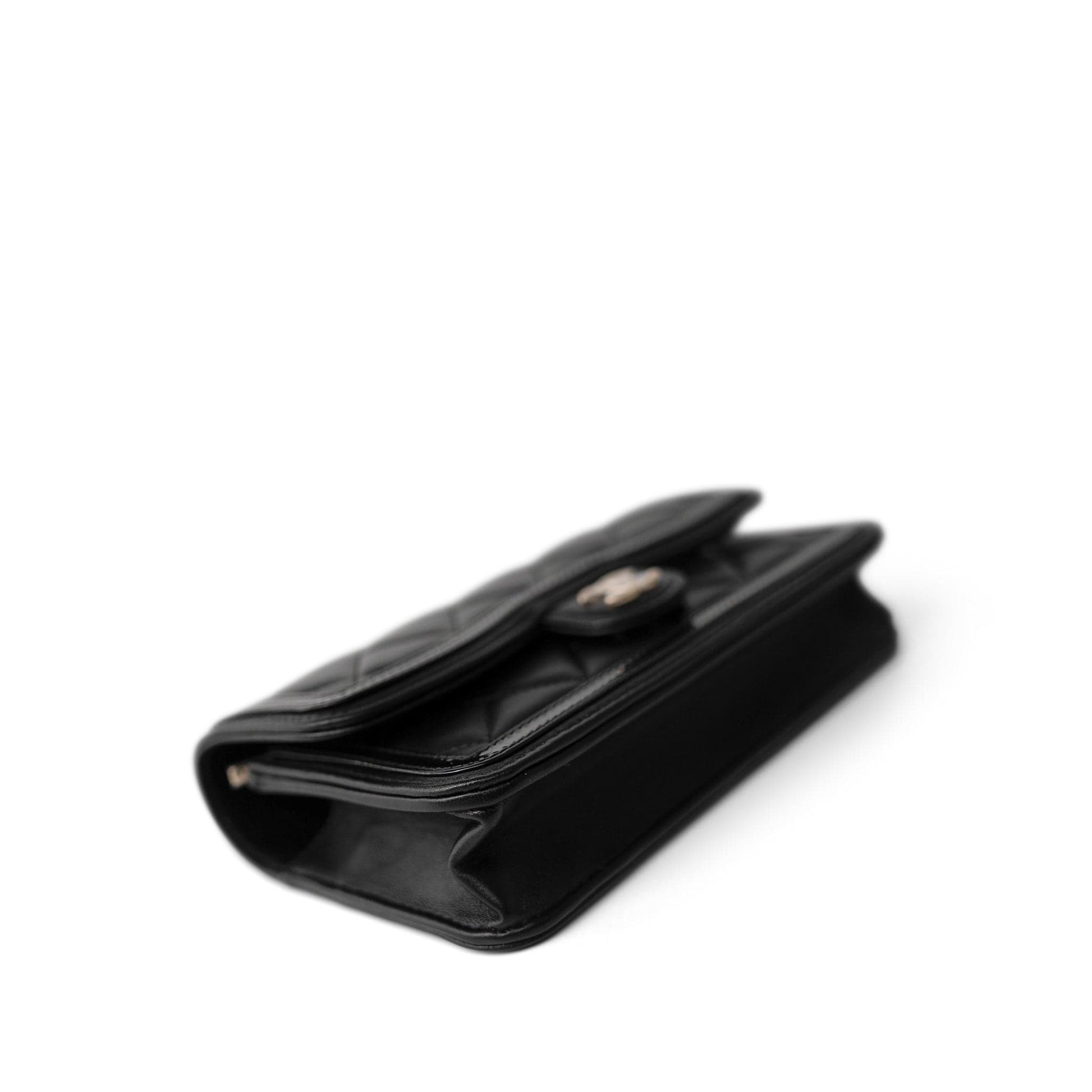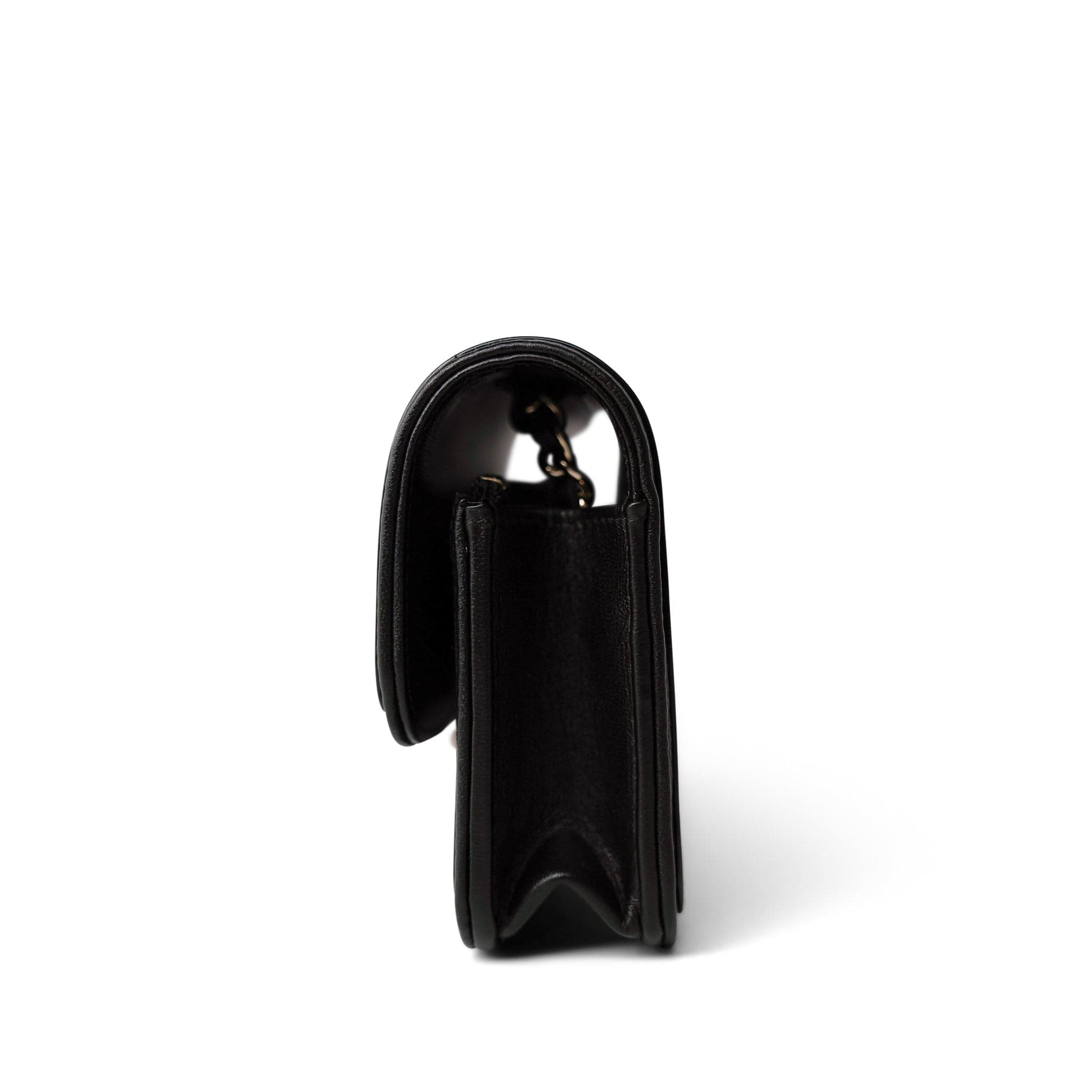 23B Black Lambskin Quilted O Phone Holder With Chain