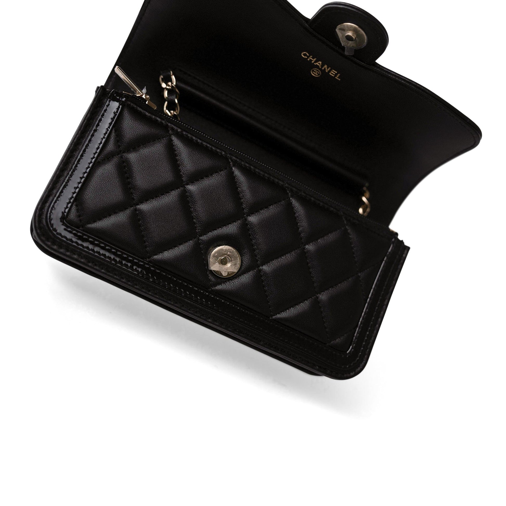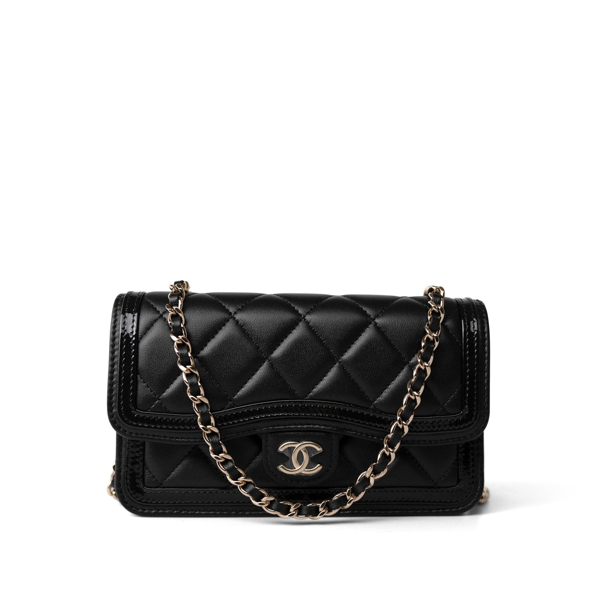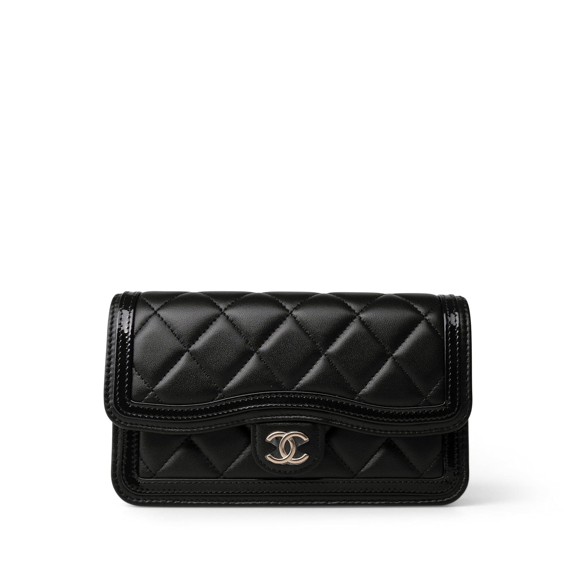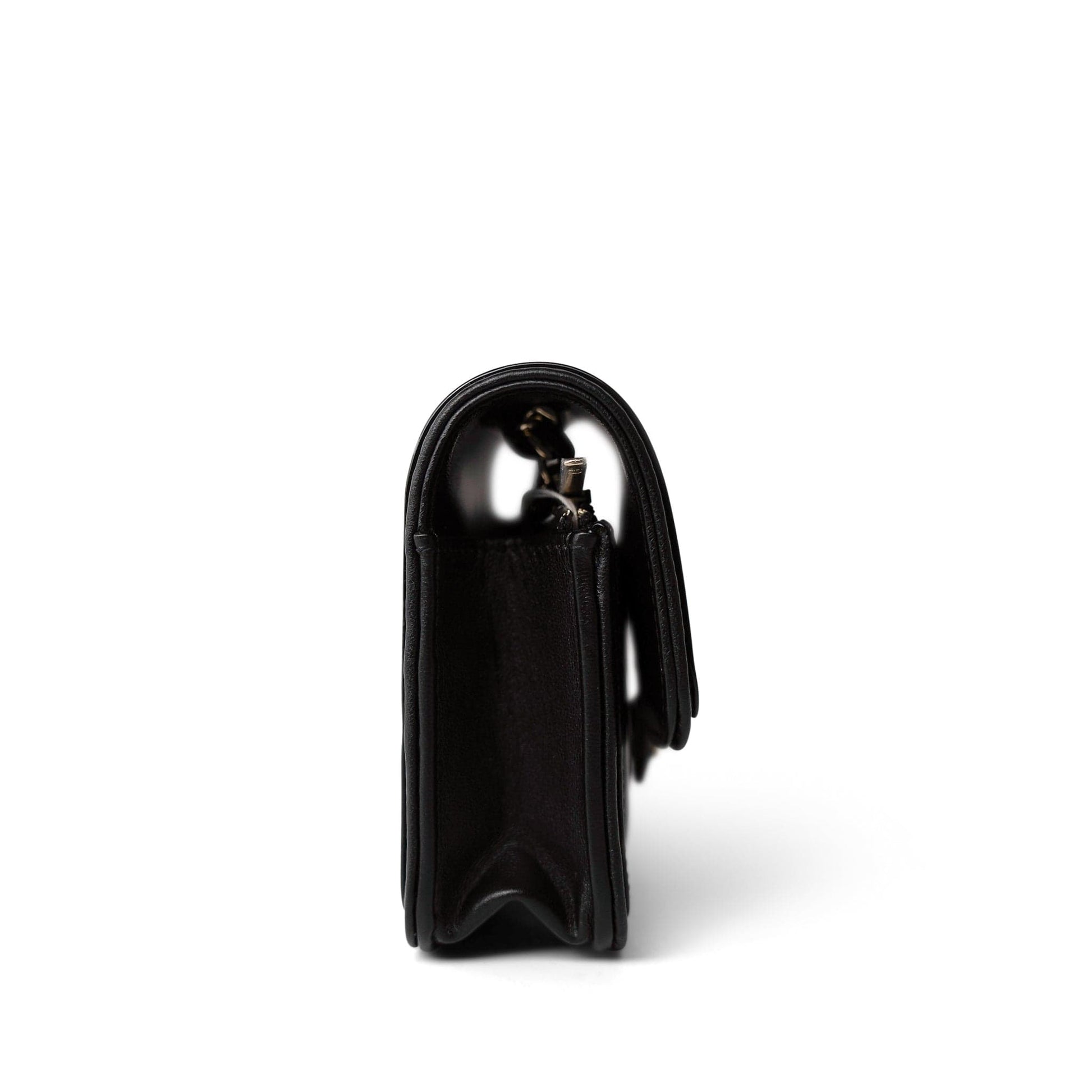 23B Black Lambskin Quilted O Phone Holder With Chain