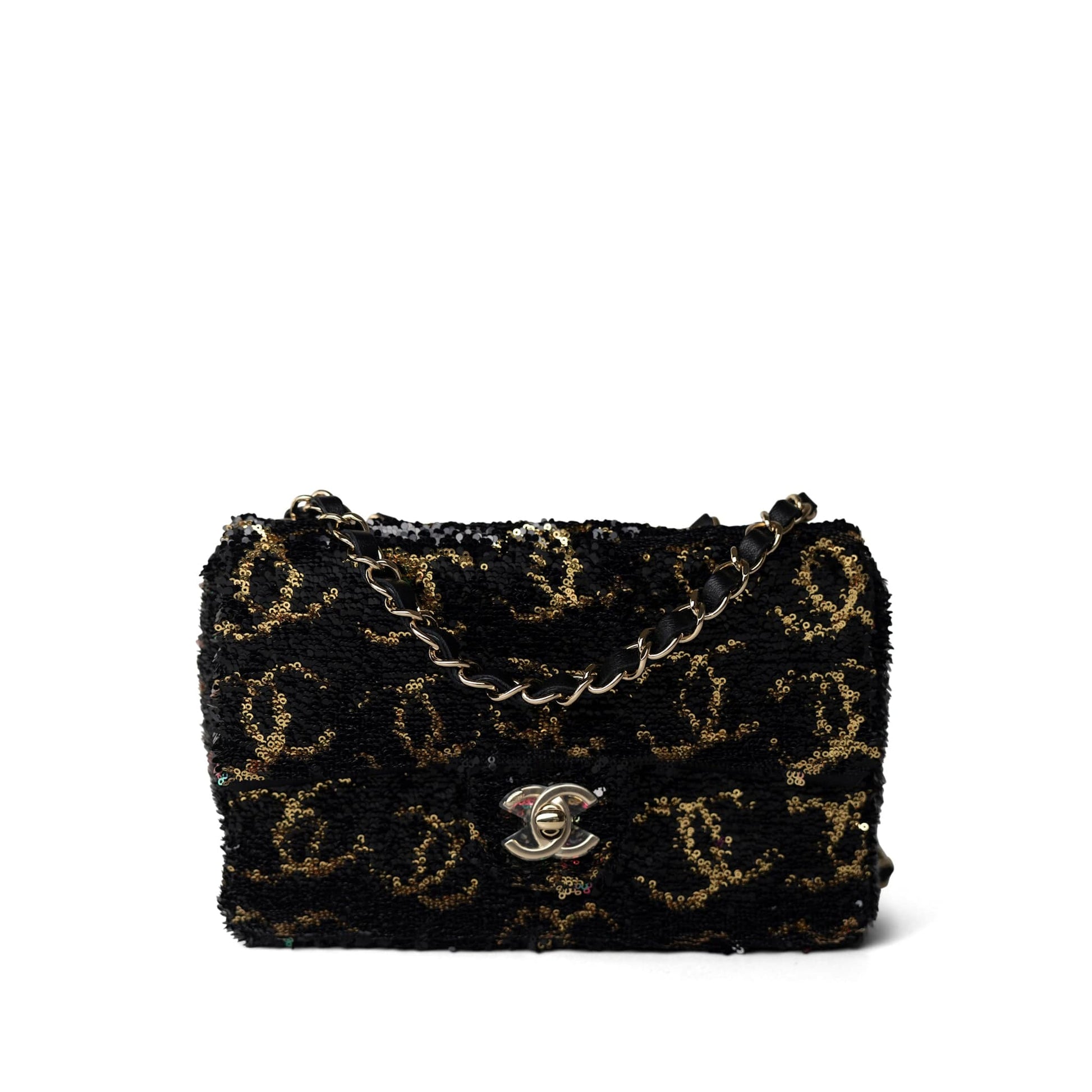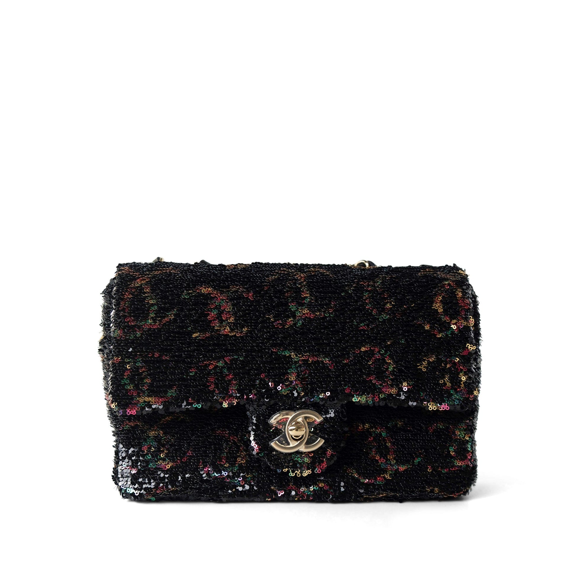 23B Black Multicolor Reversible Sequins Single Flap Bag