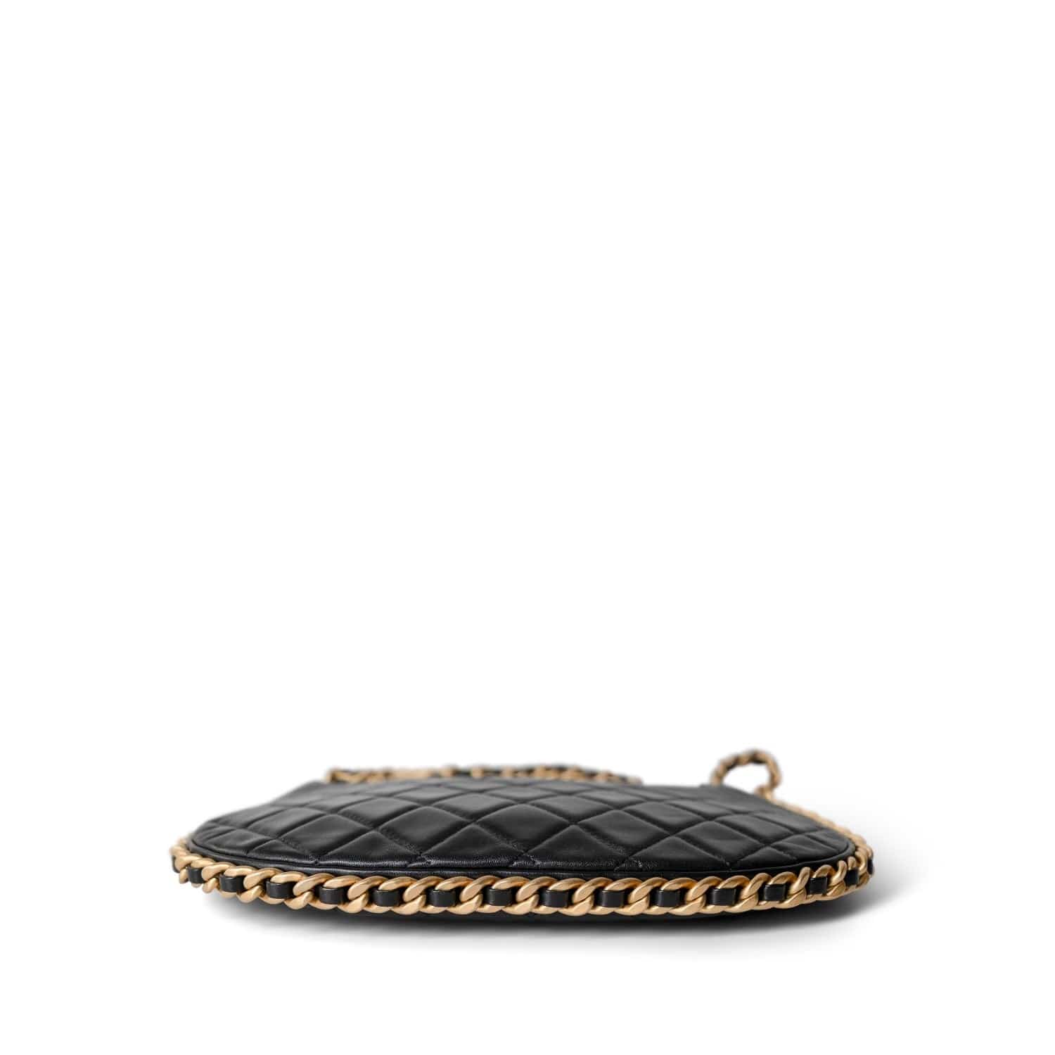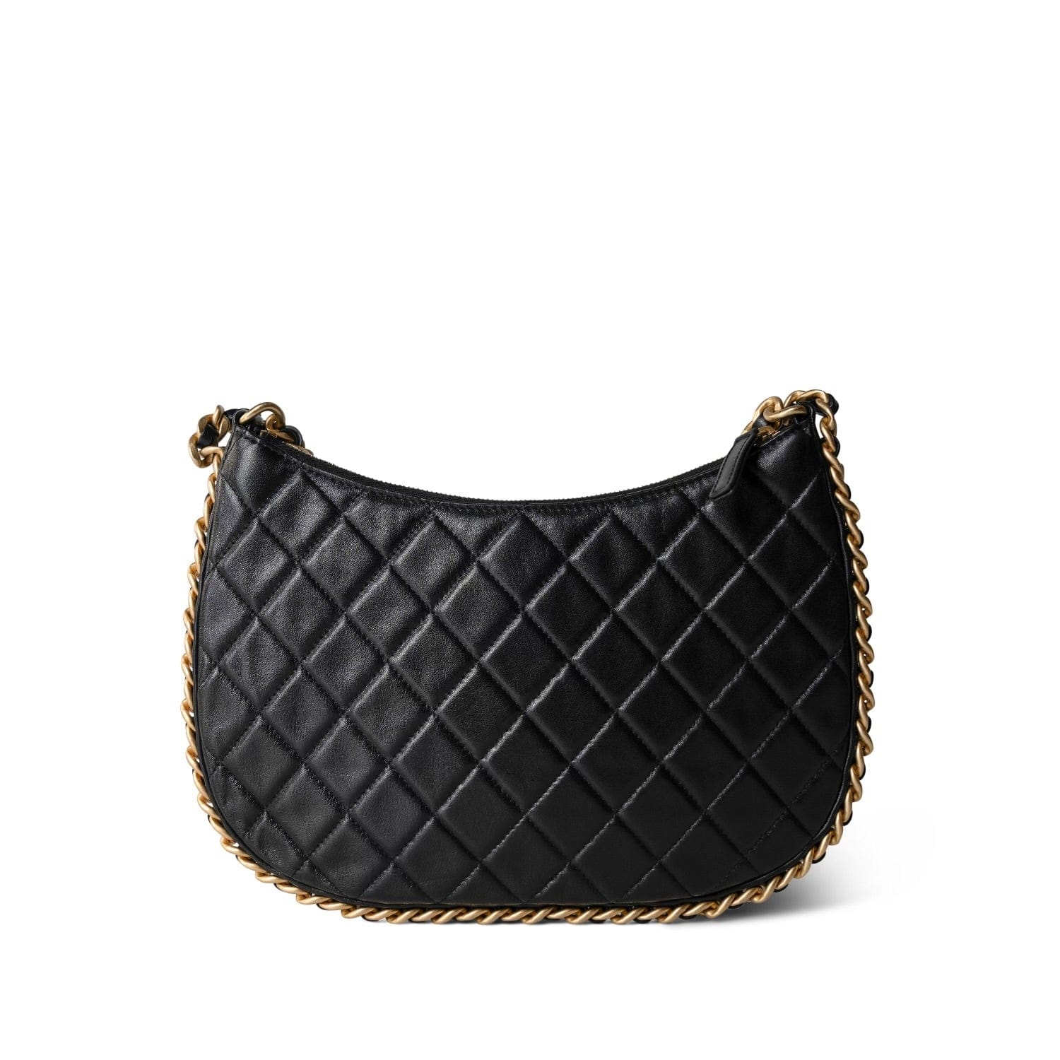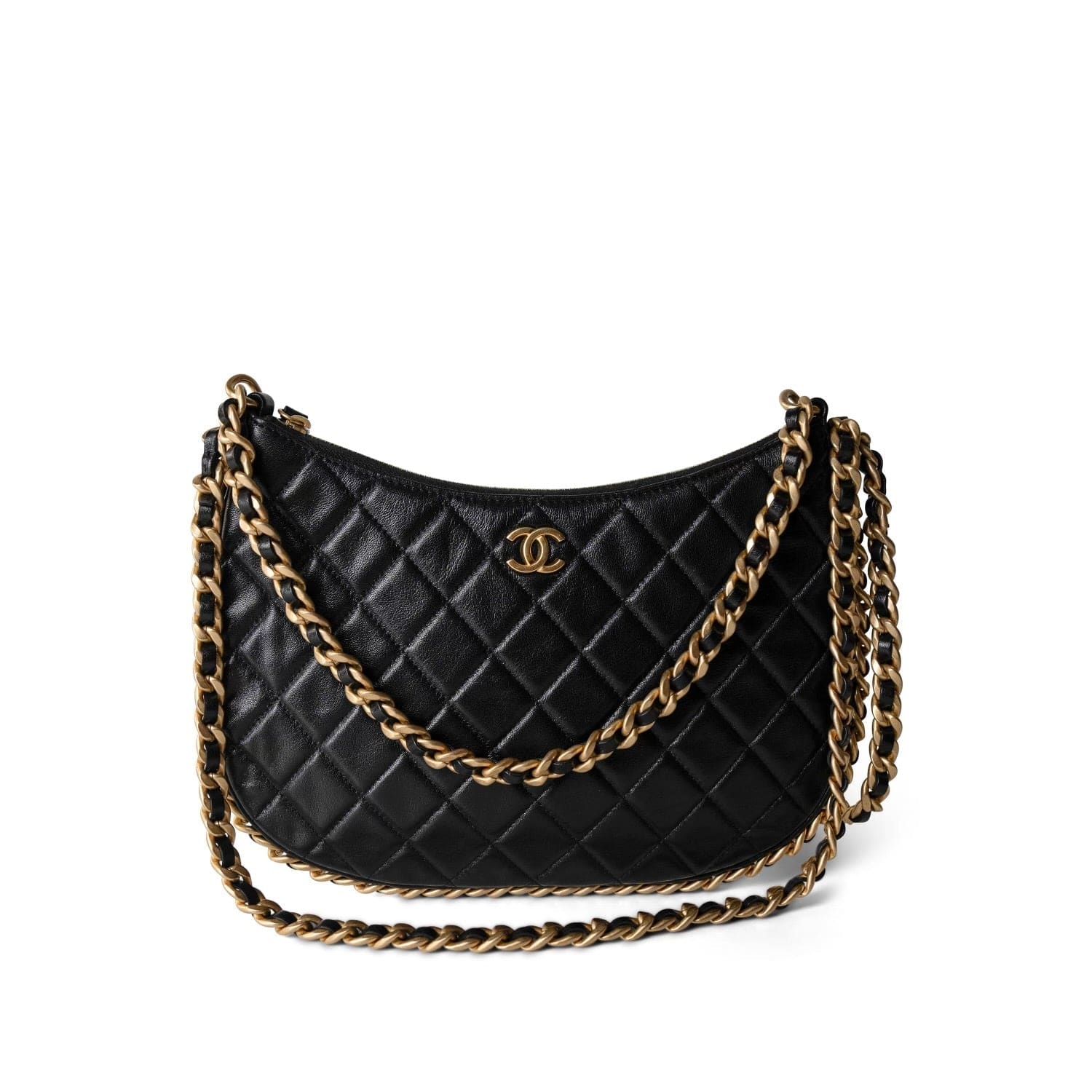 23B Black Shiny Crumpled Lambskin Quilted Large CC Hobo Bag Aged Gold Hardware
