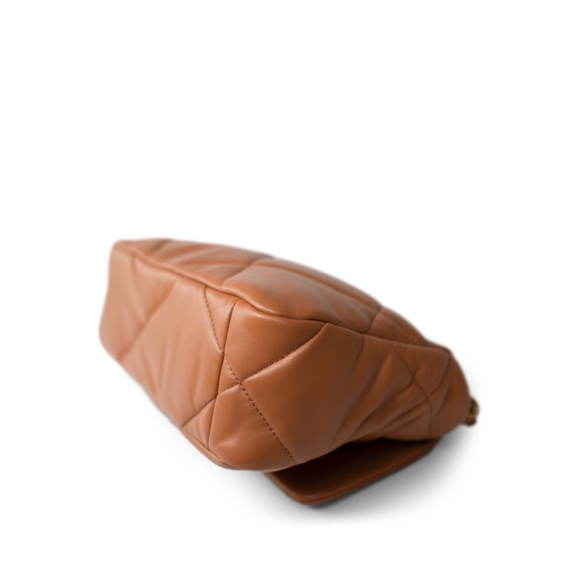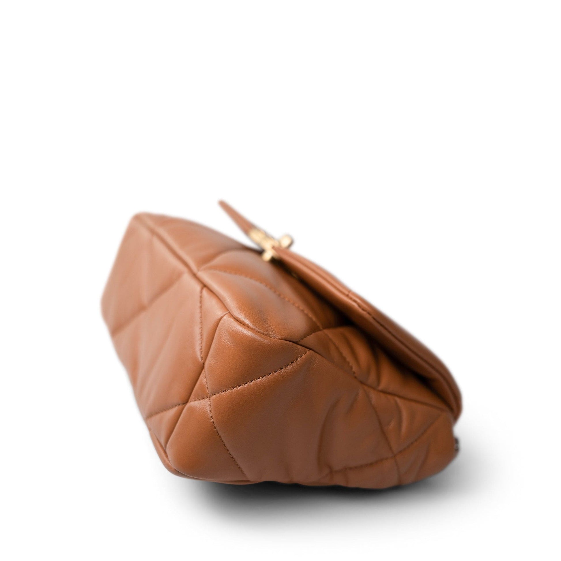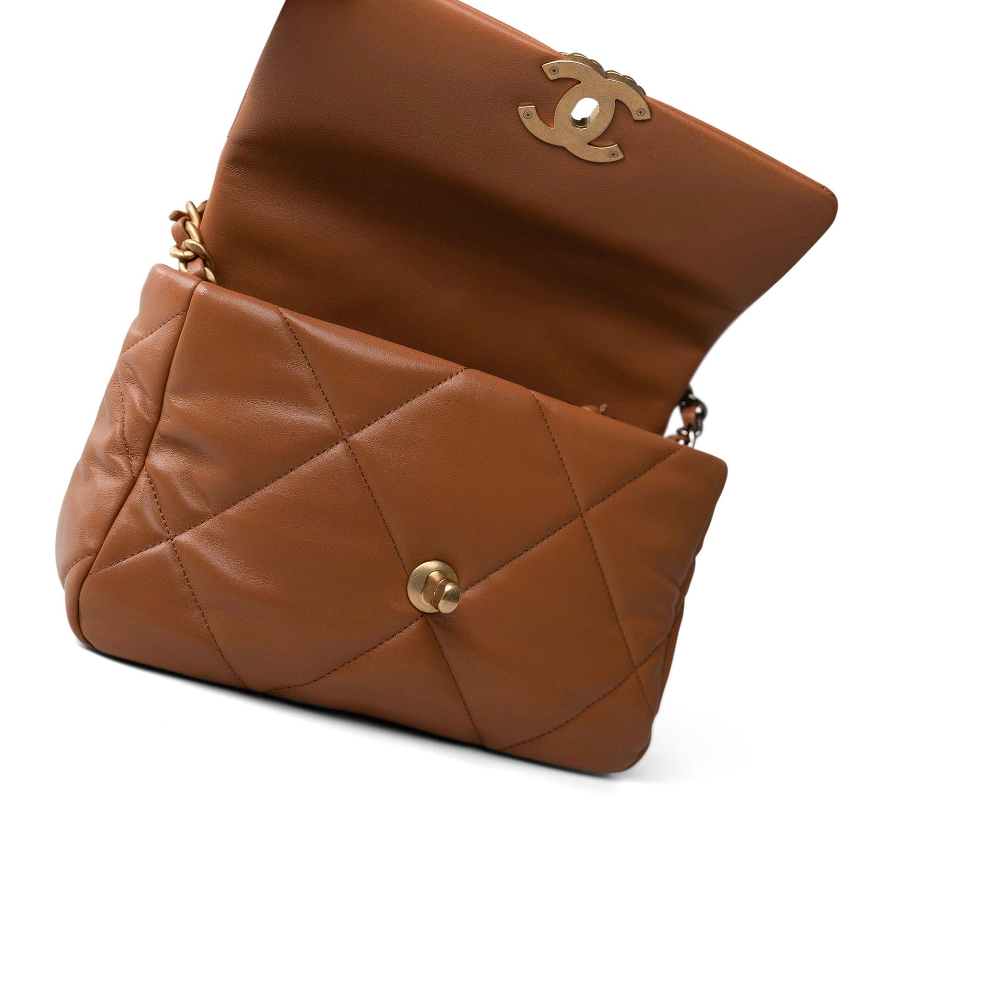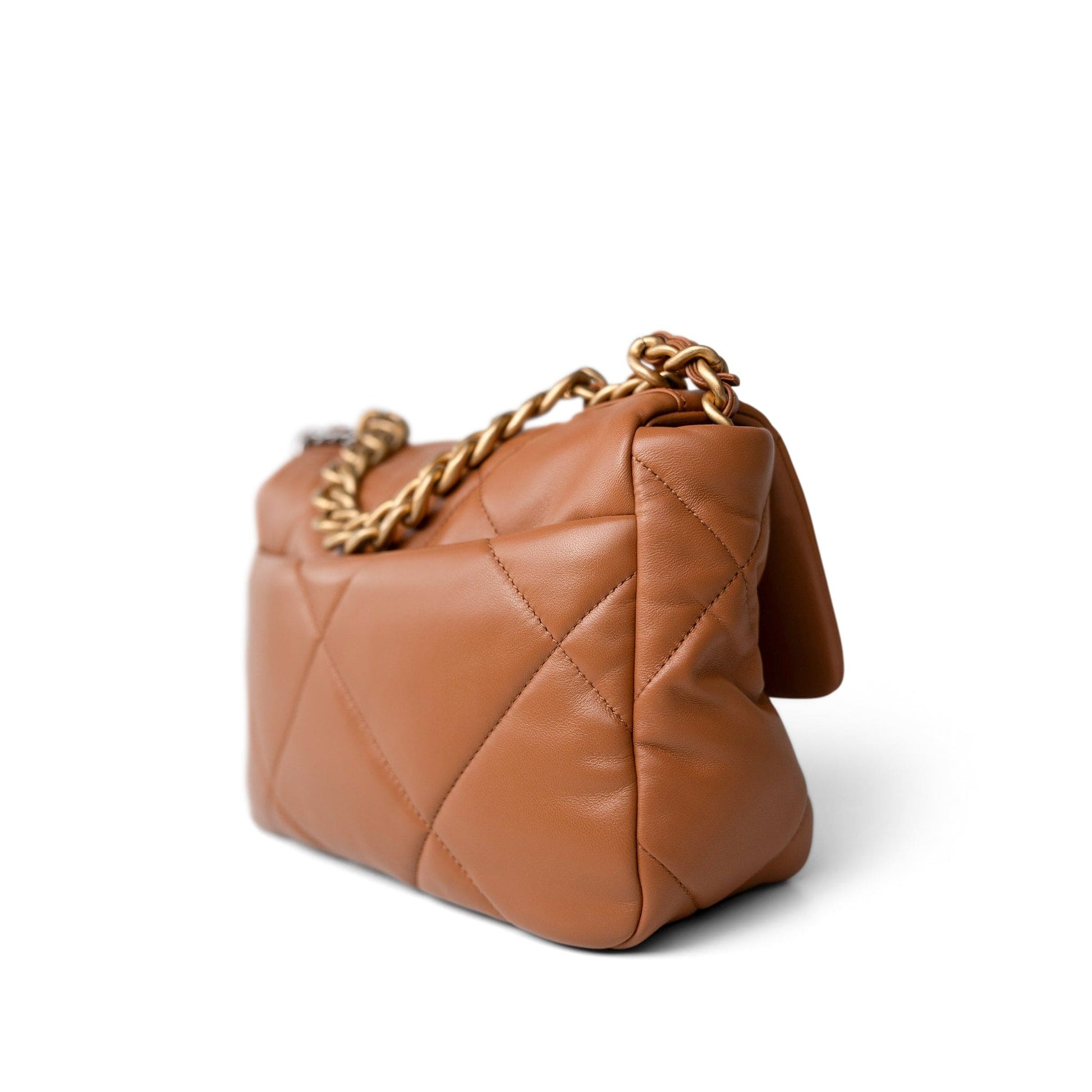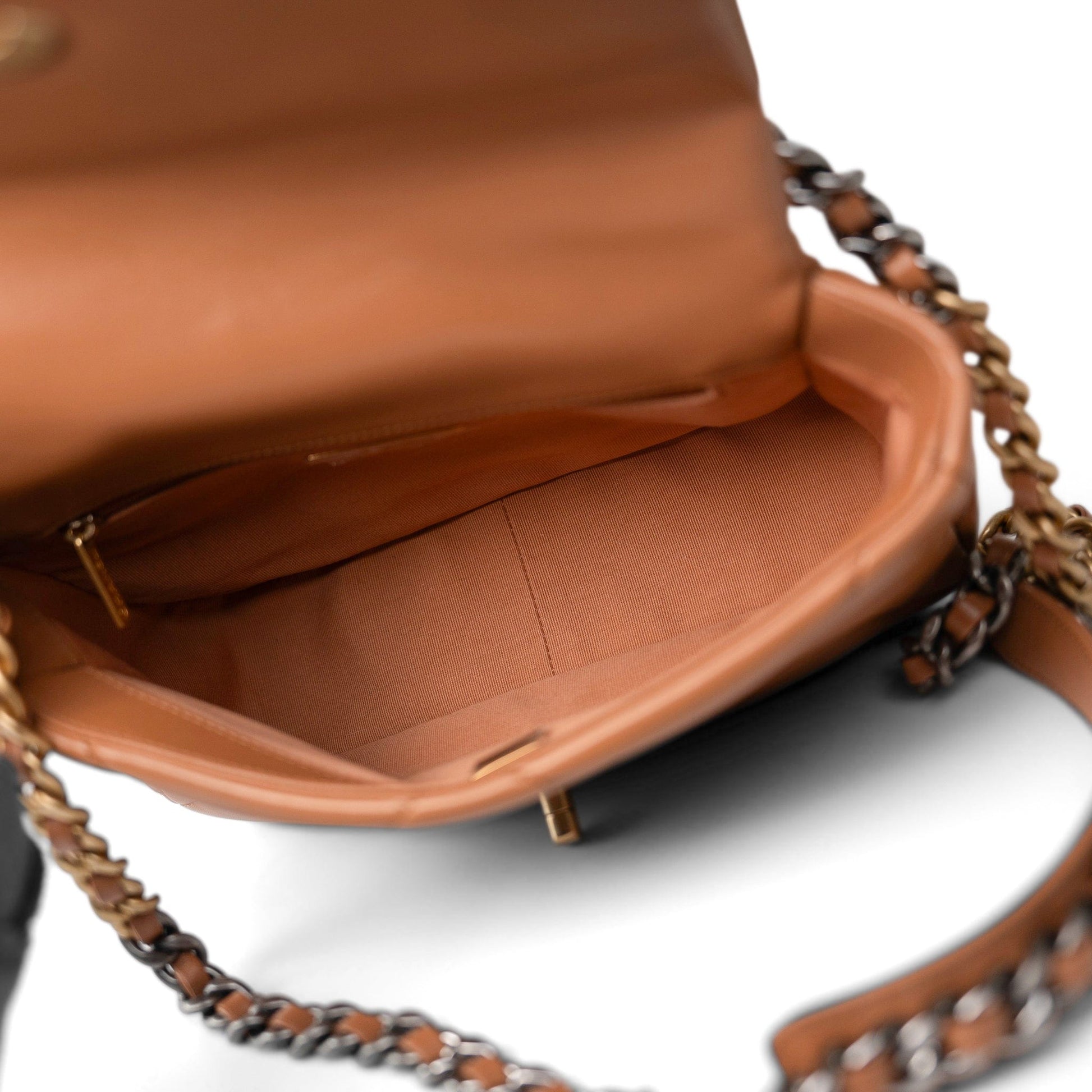 23B Caramel Lambskin Quilted 19 Flap Small Mixed Hardware