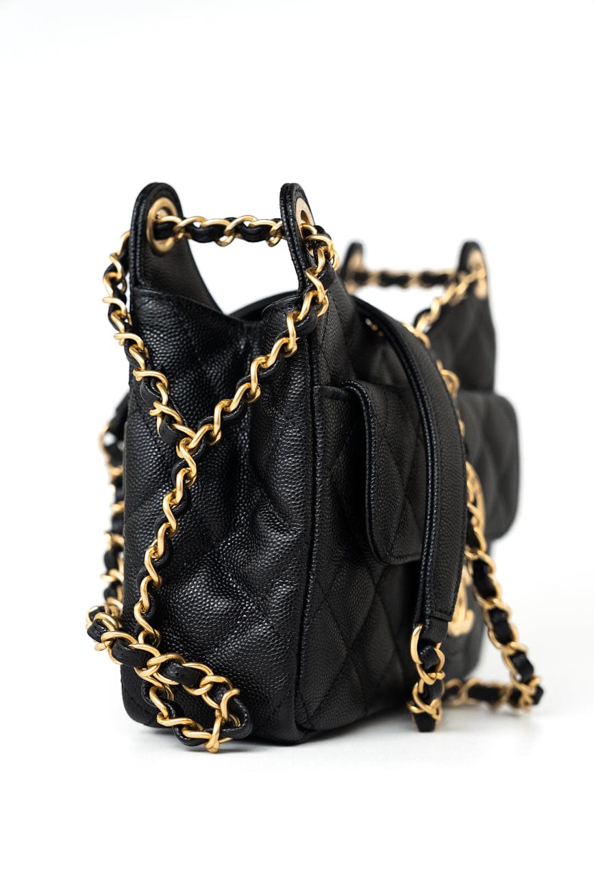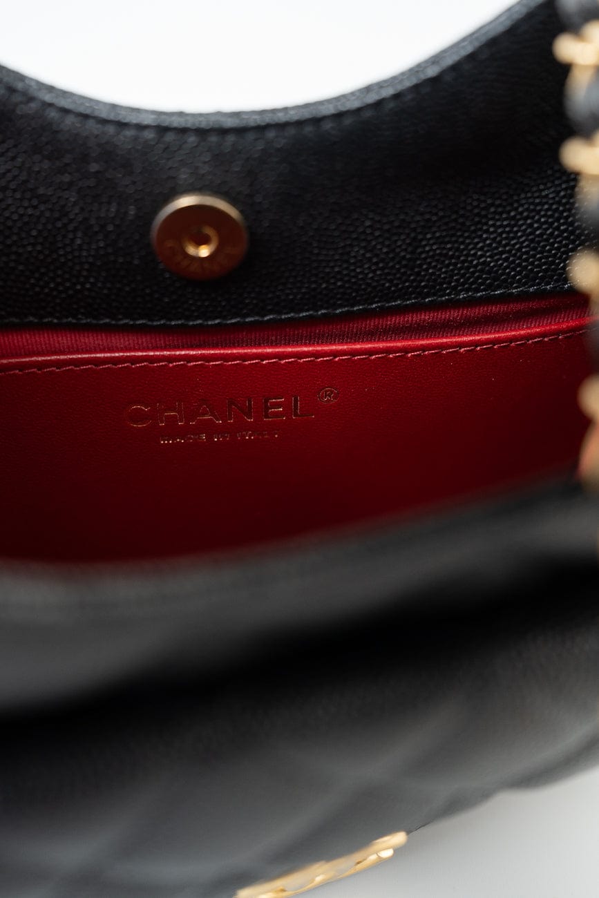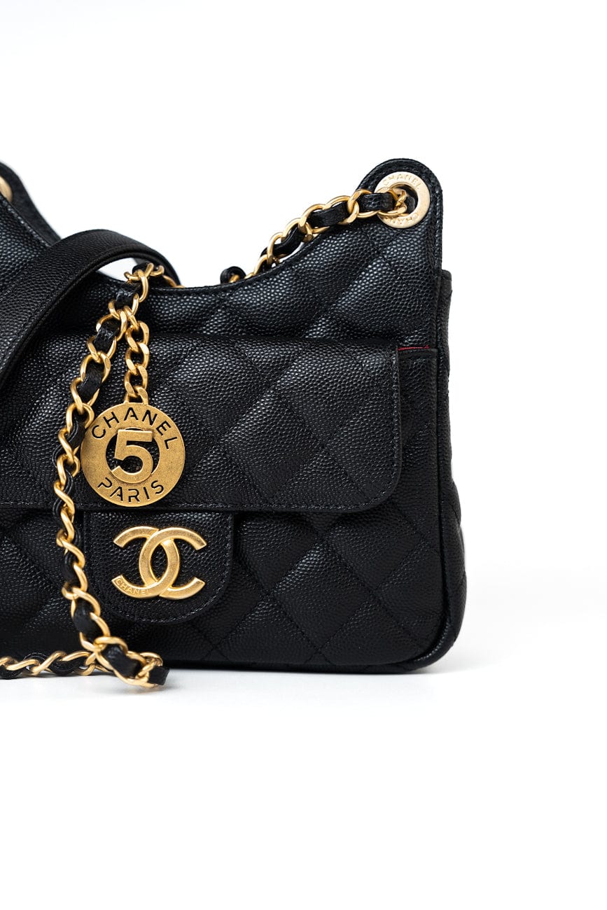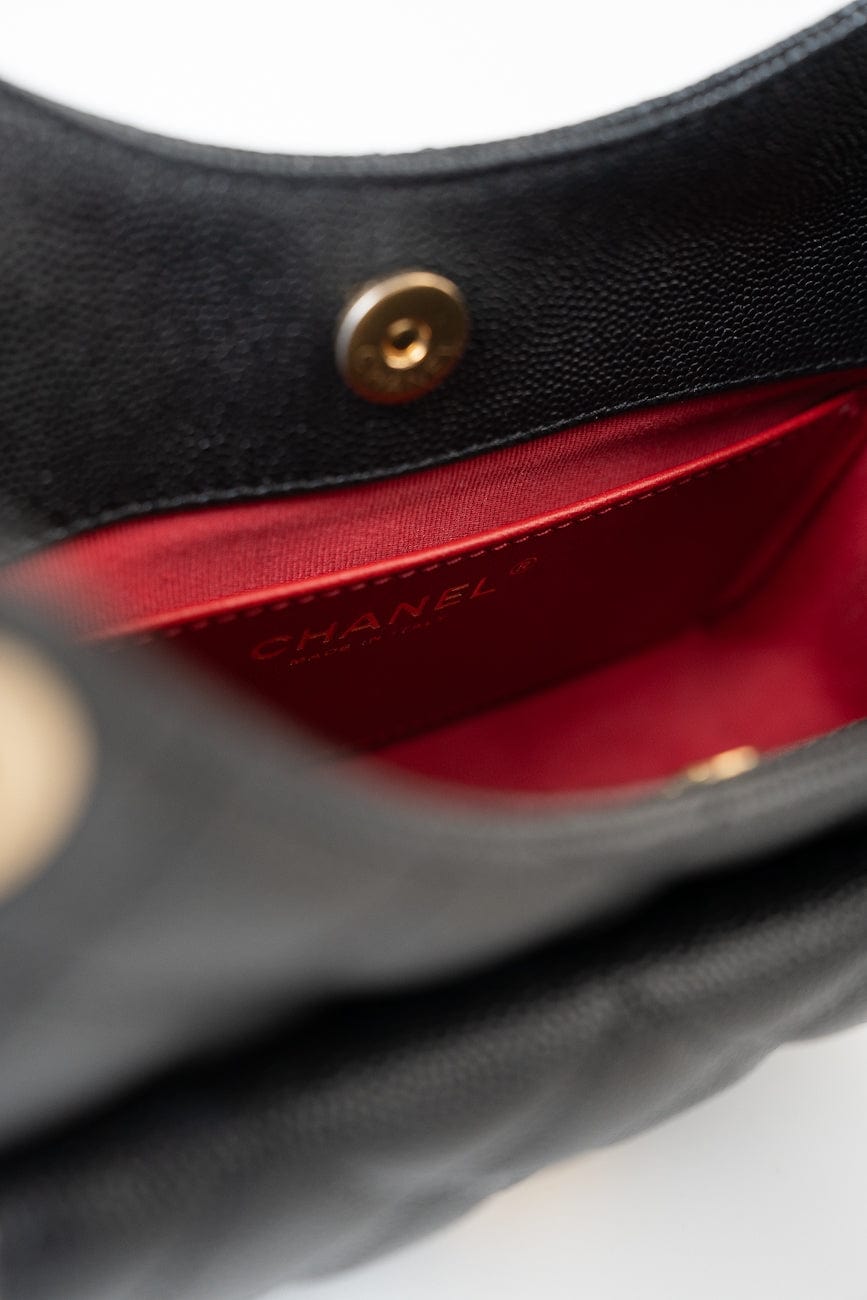 23P Black Caviar Quilted Hobo Bag Small Antique Gold Hardware
