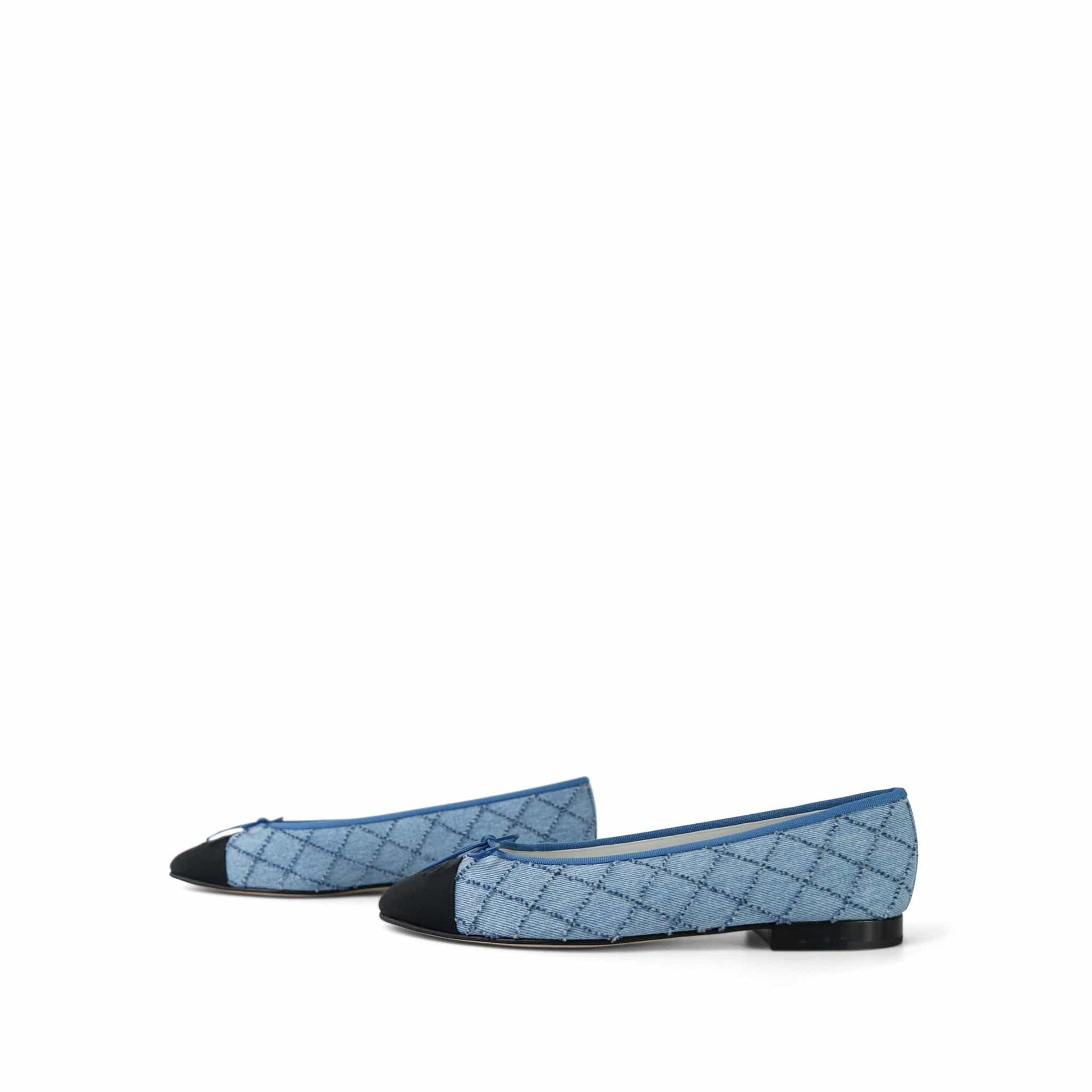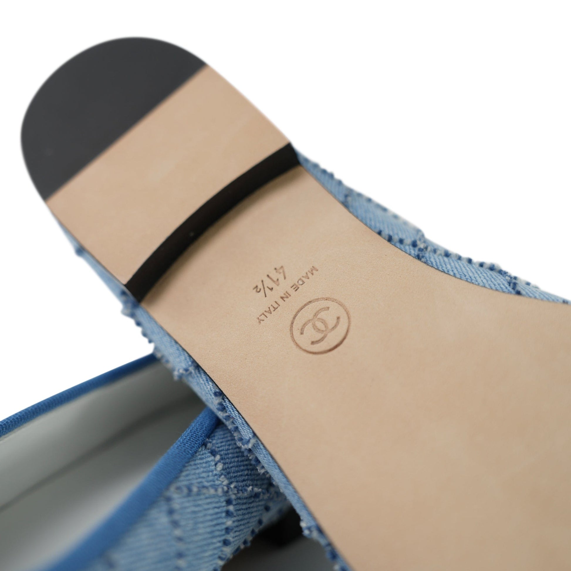 23P Blue Denim Embroidered Grosgrain Cap Toe CC Ballerina Flats Size 41.5
