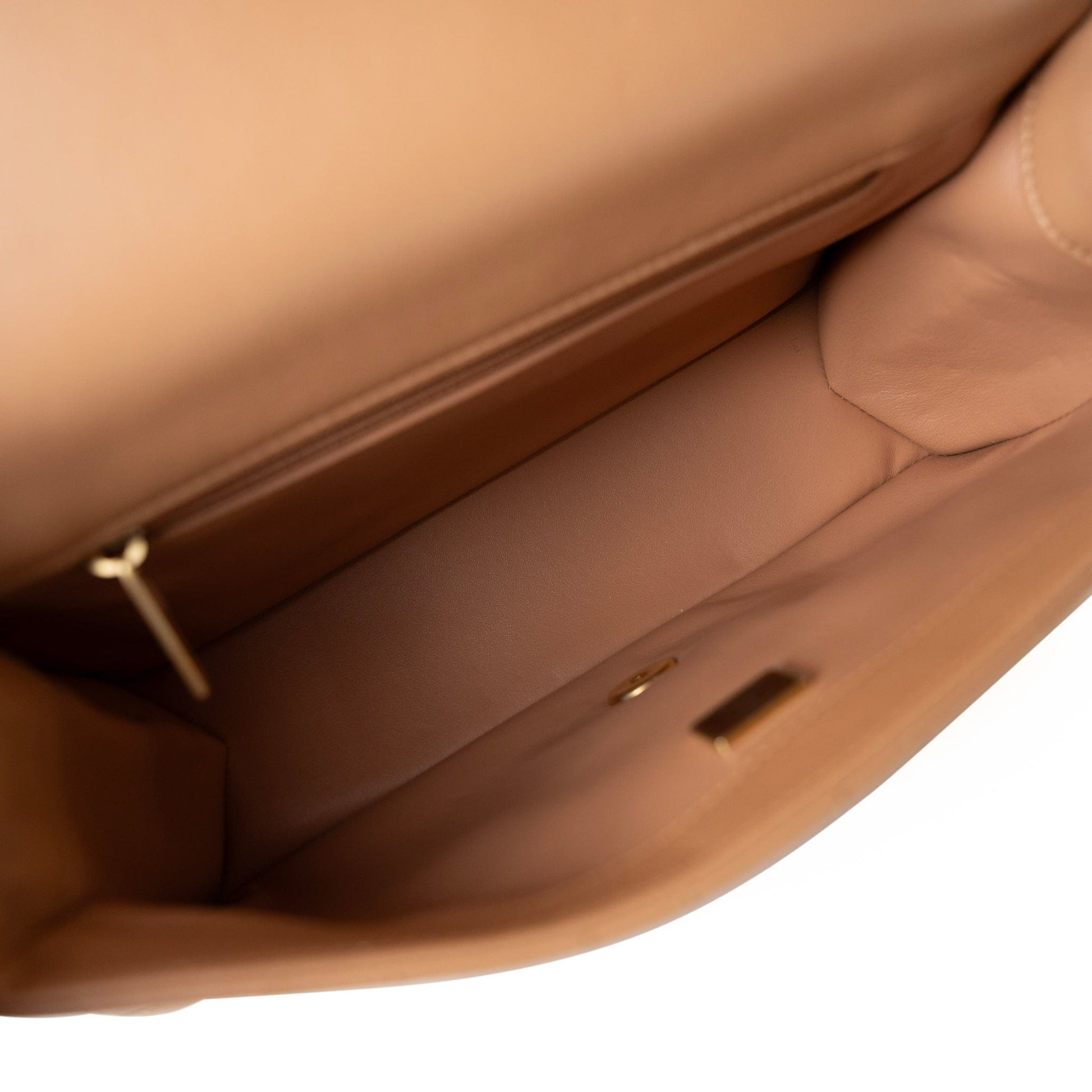 23P Caramel Quilted Chanel Chain Single Flap Bag Antique Gold Hardware