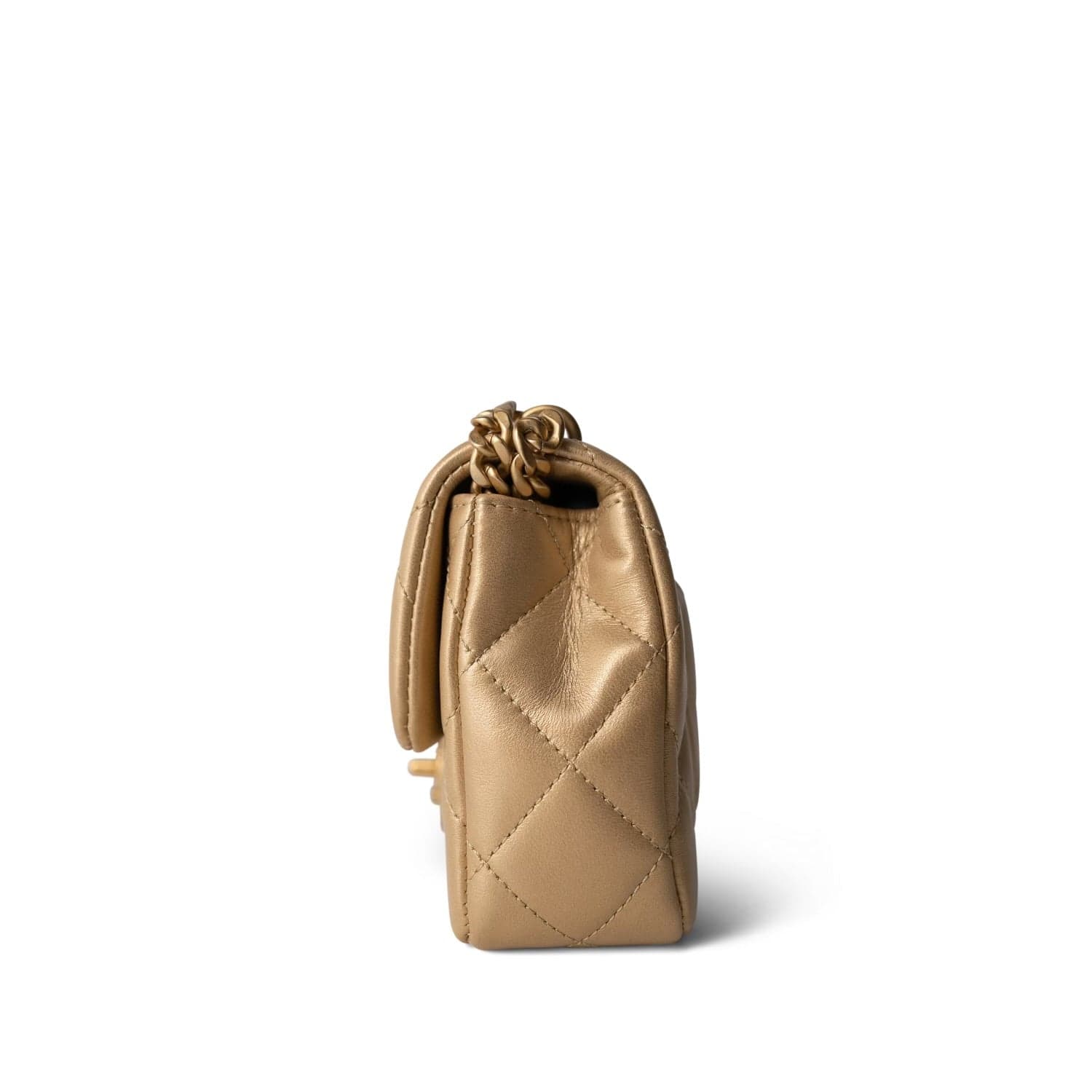 23P Gold Lambskin Quilted Mini Sweetheart Single Flap Bag Aged GHW