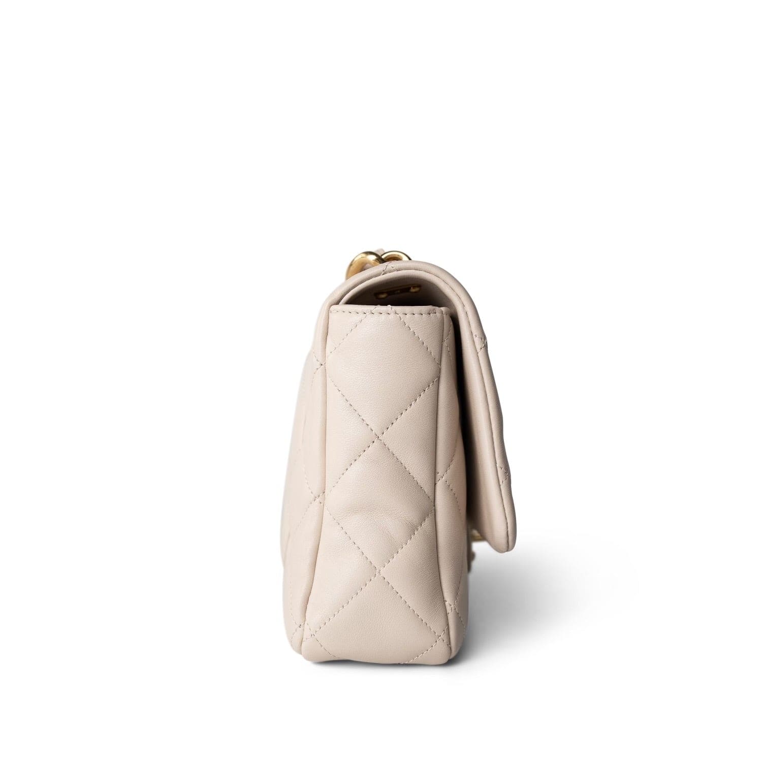 23P Light Beige Lambskin Quilted Funky Town Flap Antique GHW