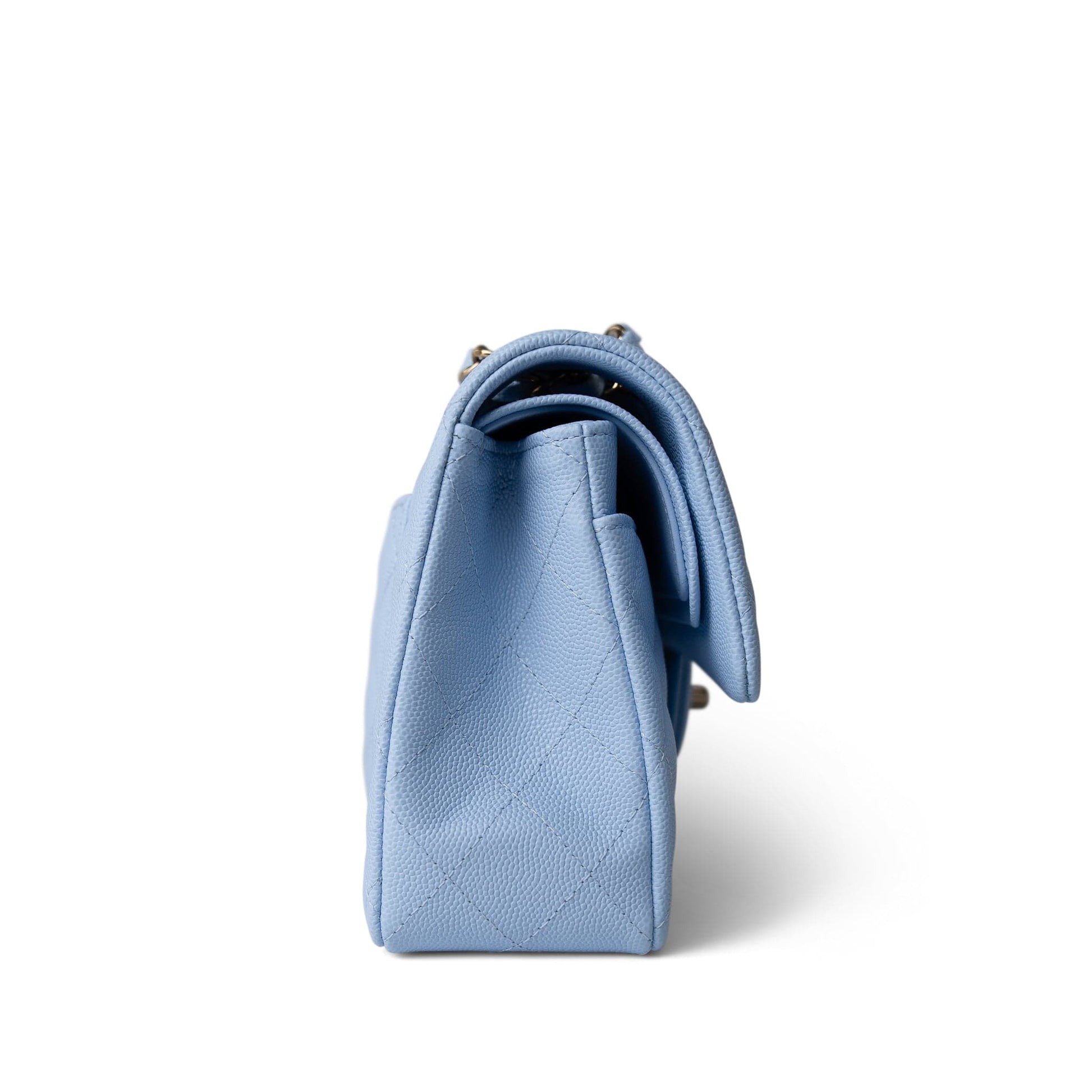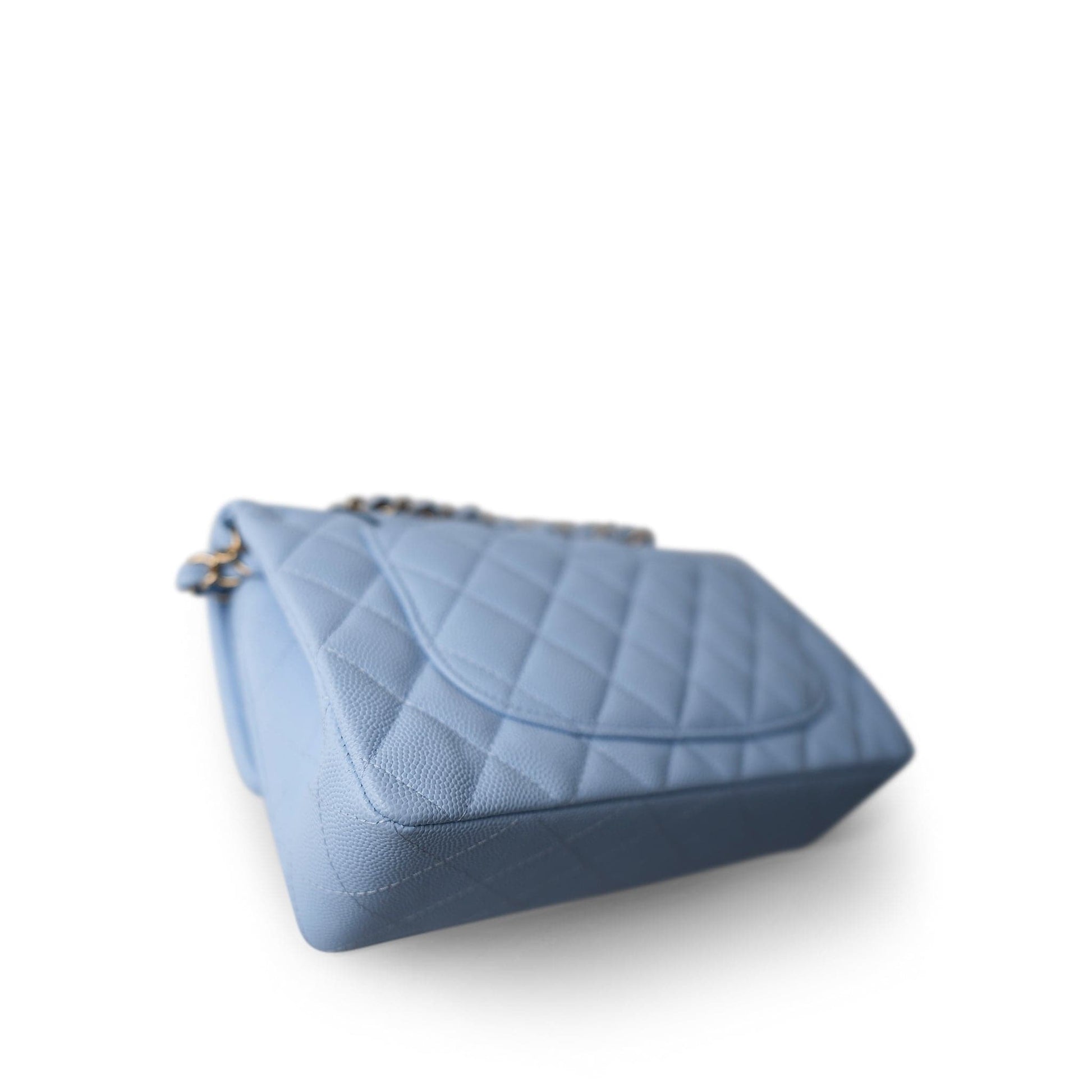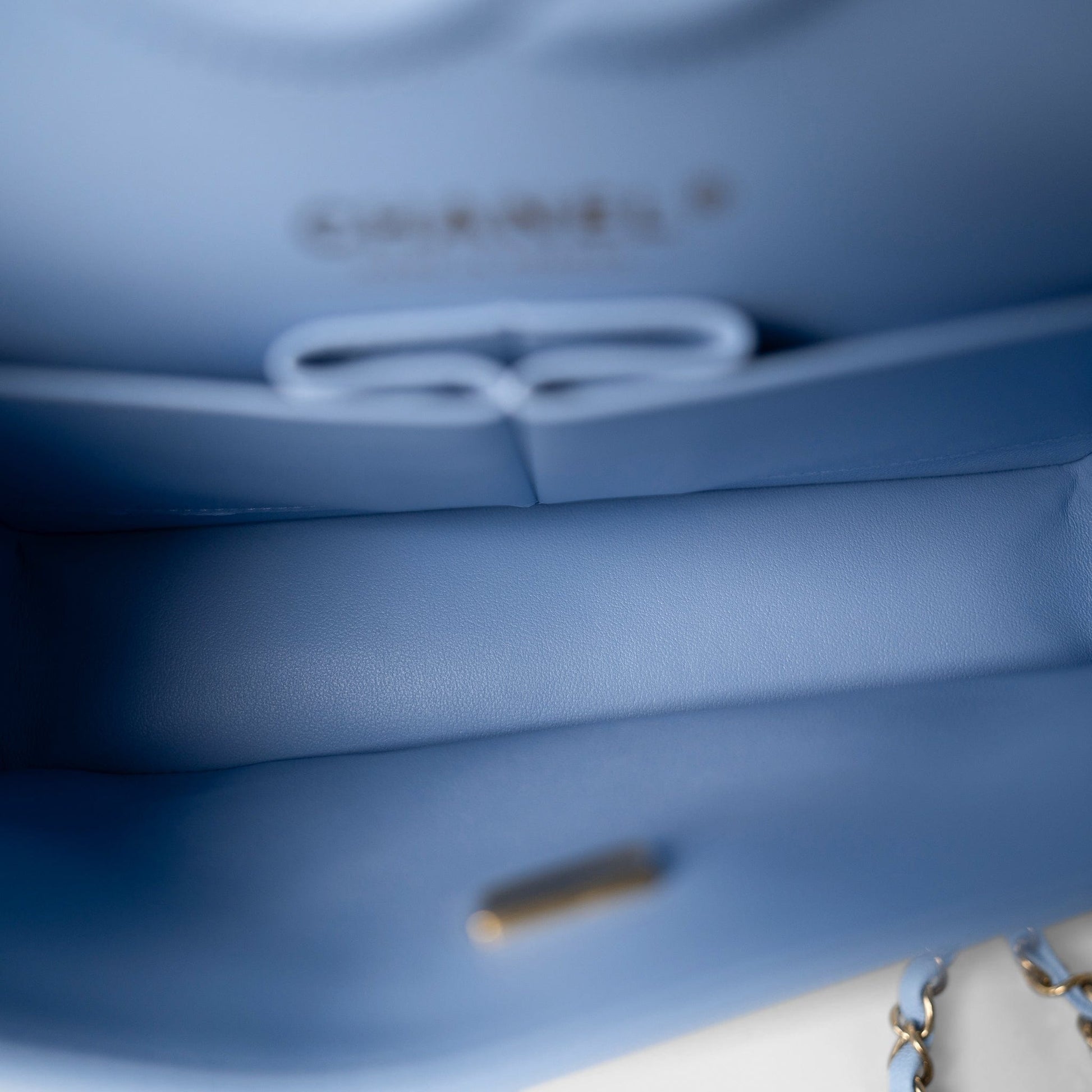 23P Light Blue Classic Flap Small Light Gold Hardware