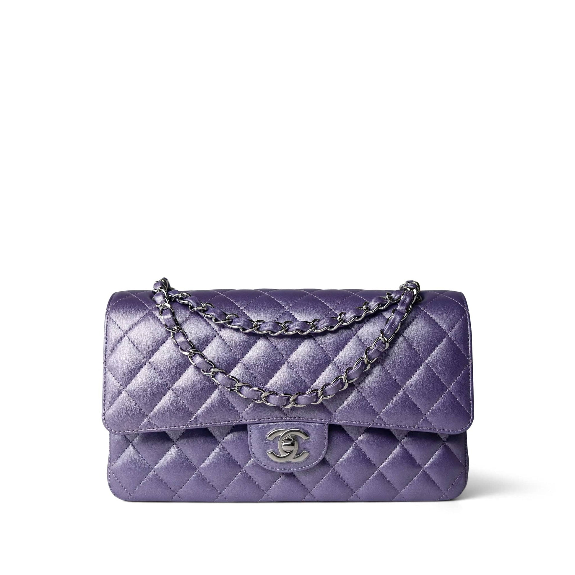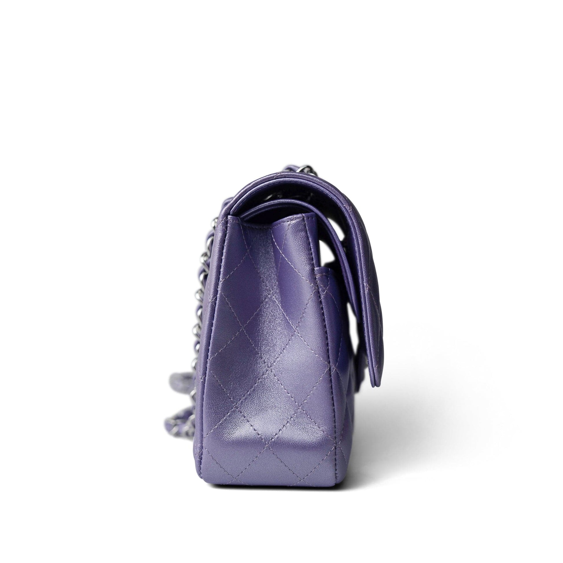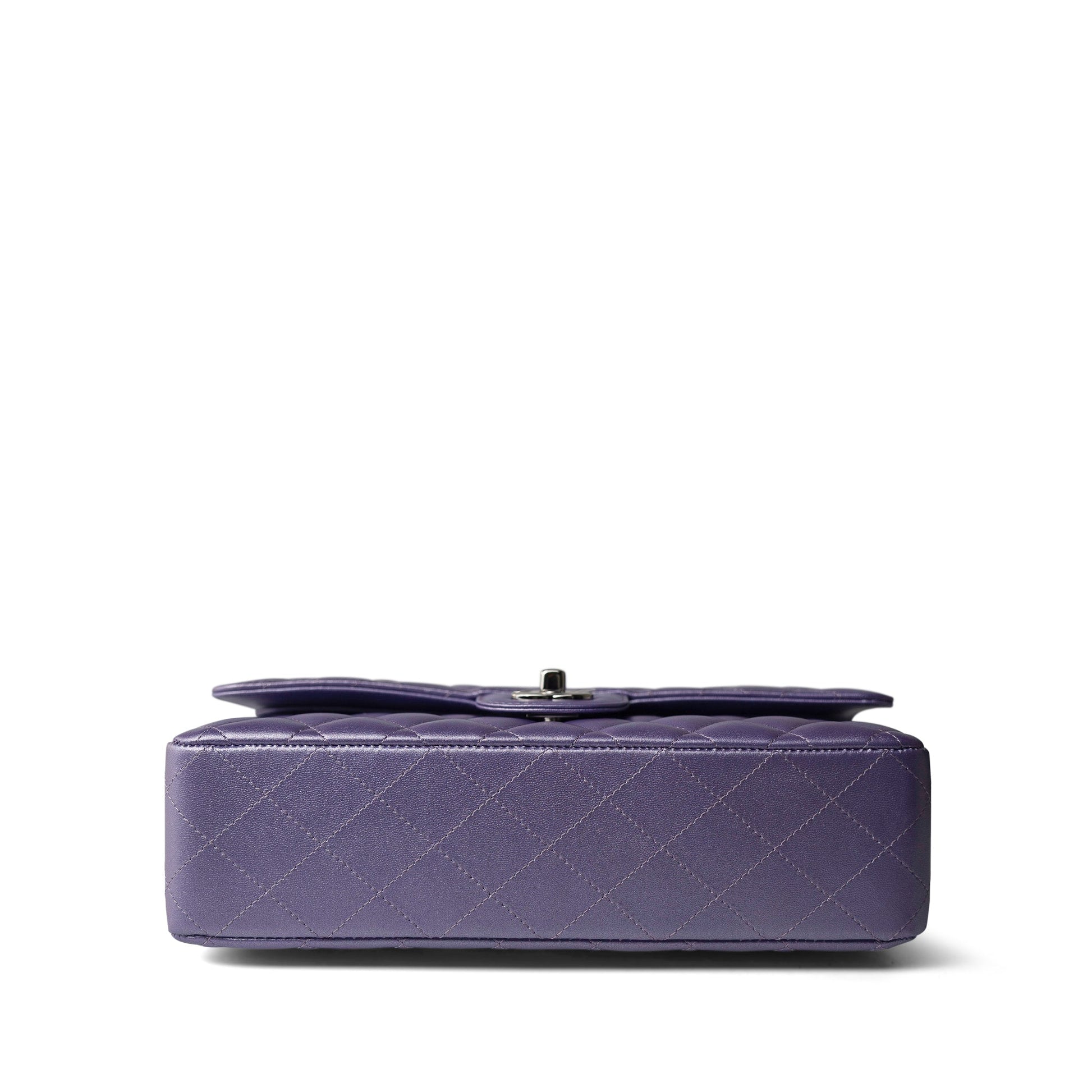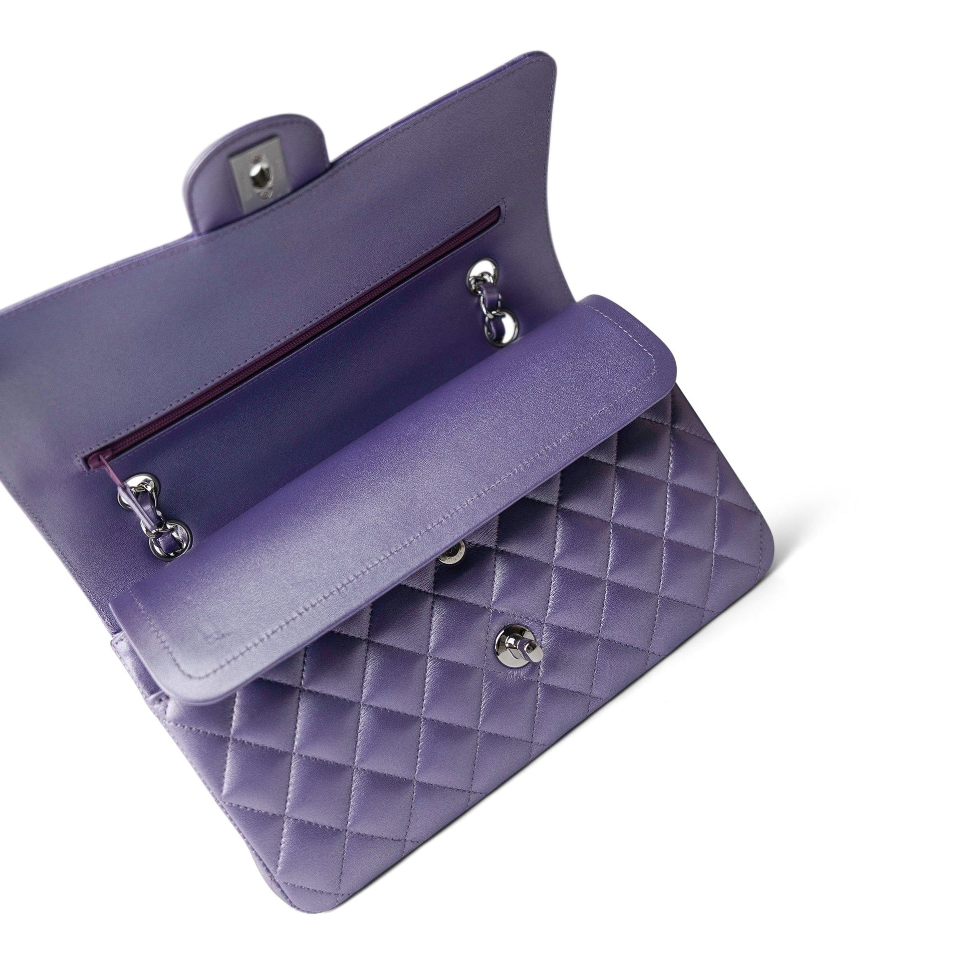 23P Metallic Purple Lambskin Quilted Classic Flap Medium Silver Hardware