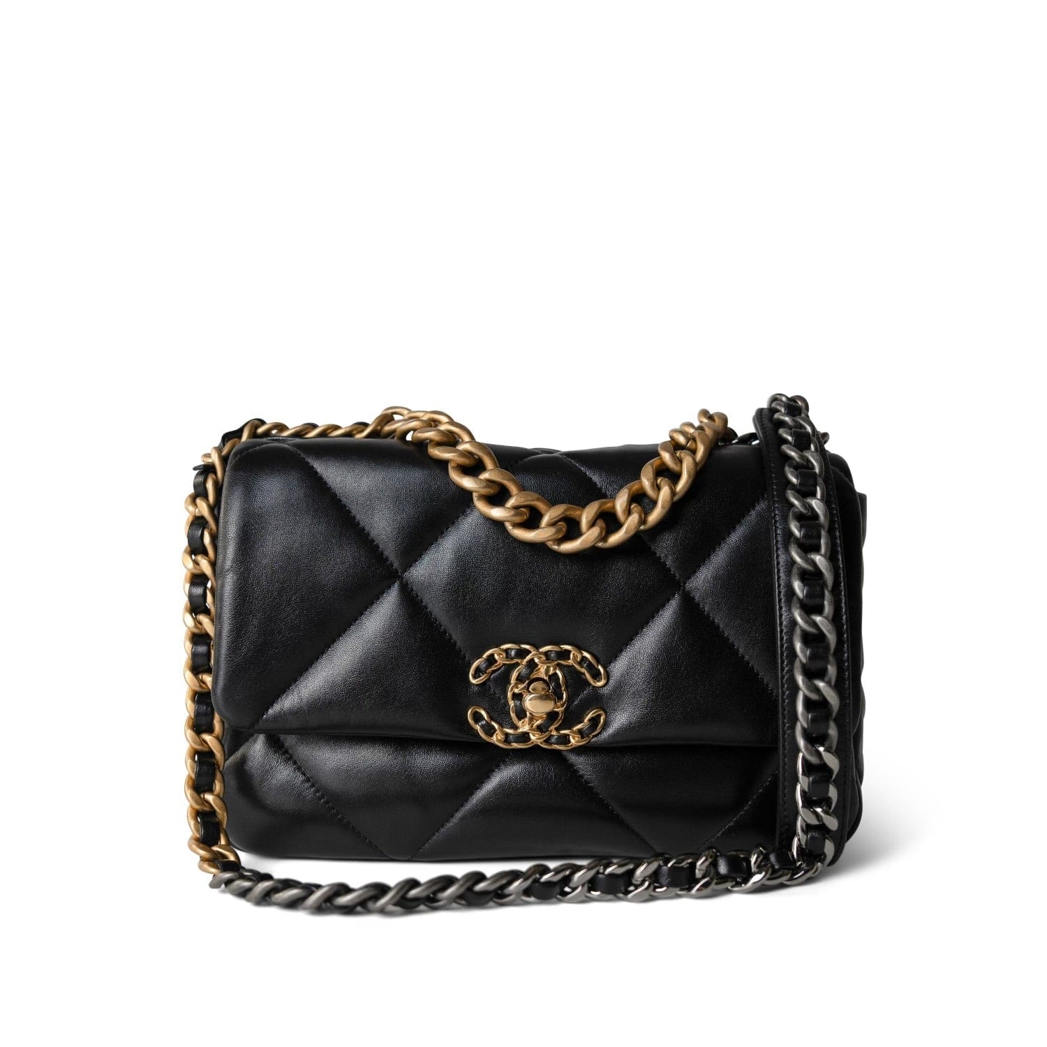 23S Black Lambskin Quilted 19 Flap Small Mixed Hardware