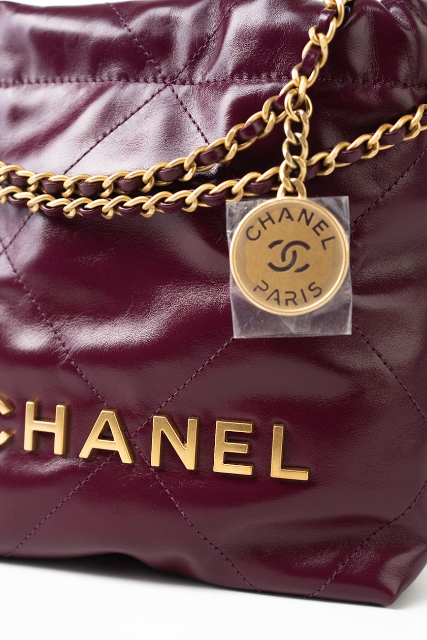 23S Mini 22 Drawstring Bag Burgundy Calfskin Quilted AGHW