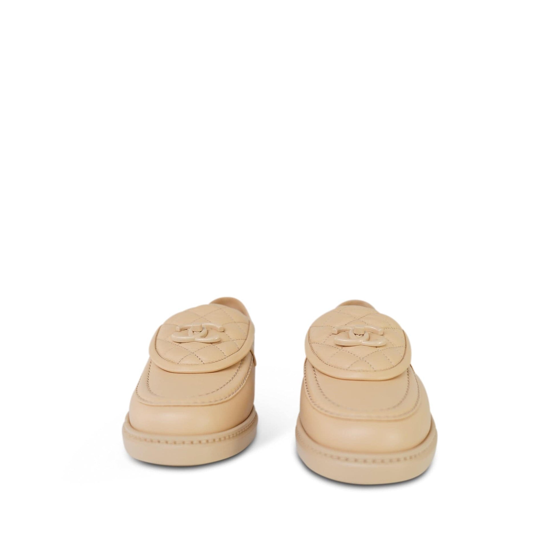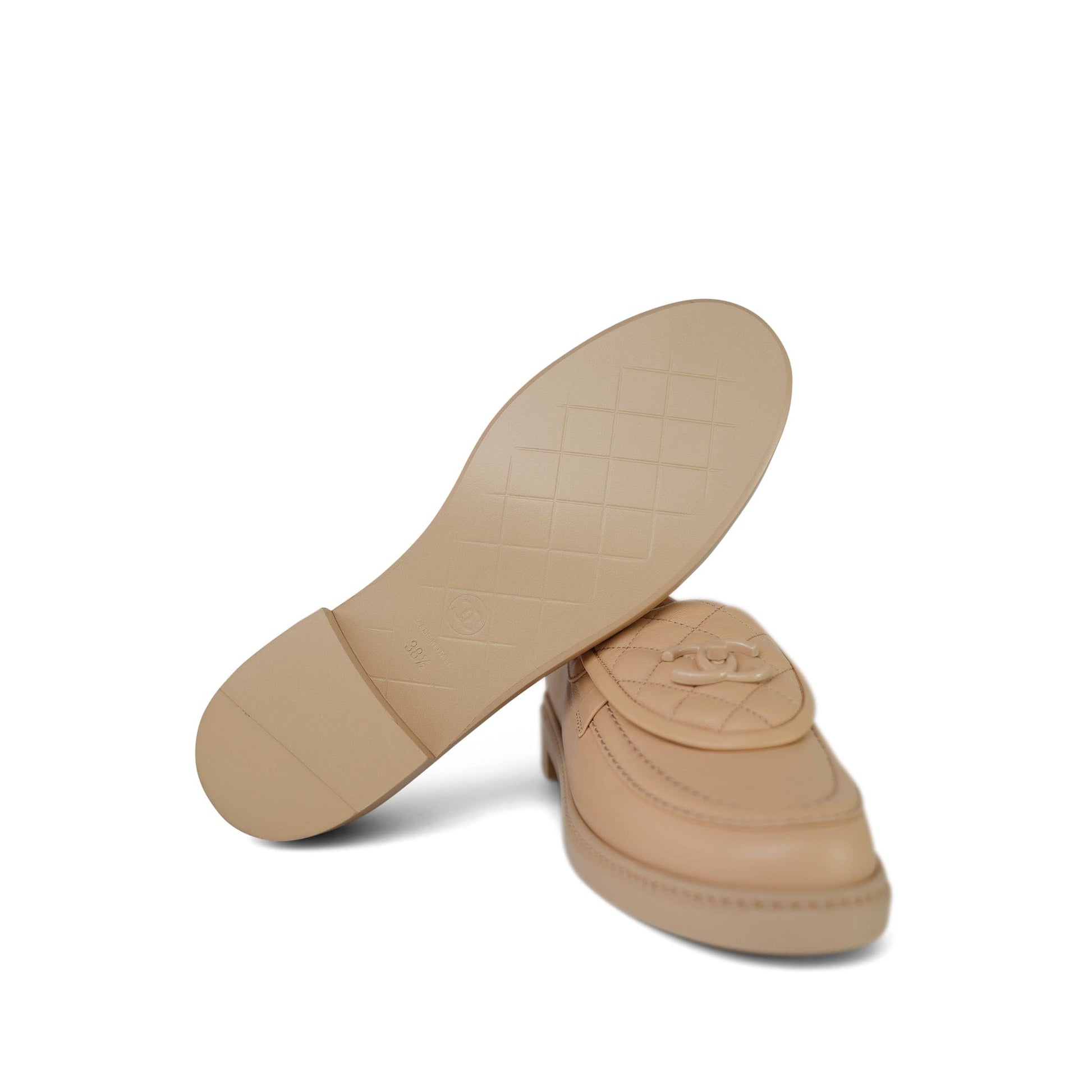 24C Beige Lambskin Quilted Turnlock CC Loafer Moccasins Size 38.5