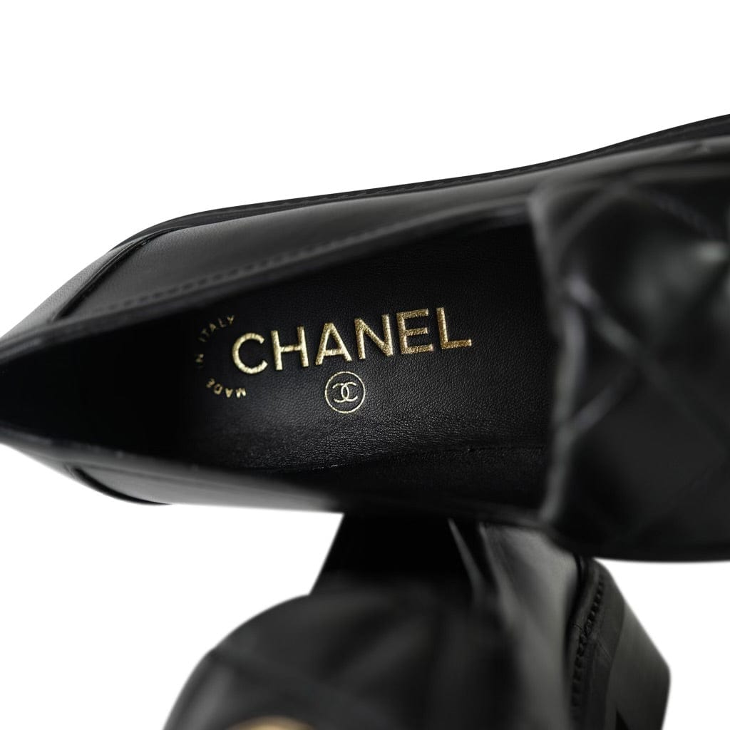 24C Black Lambskin CC Turnlock Loafers Size 38