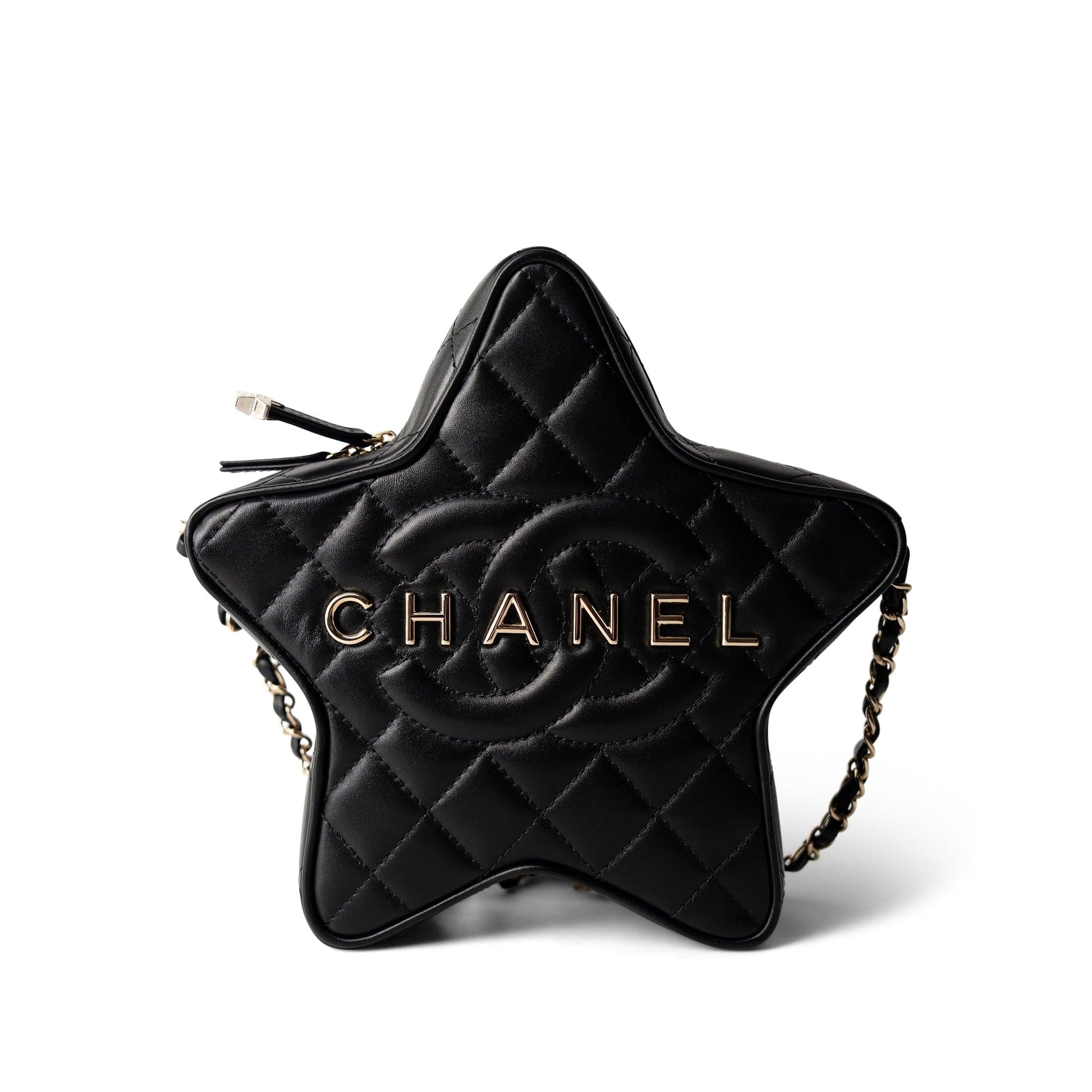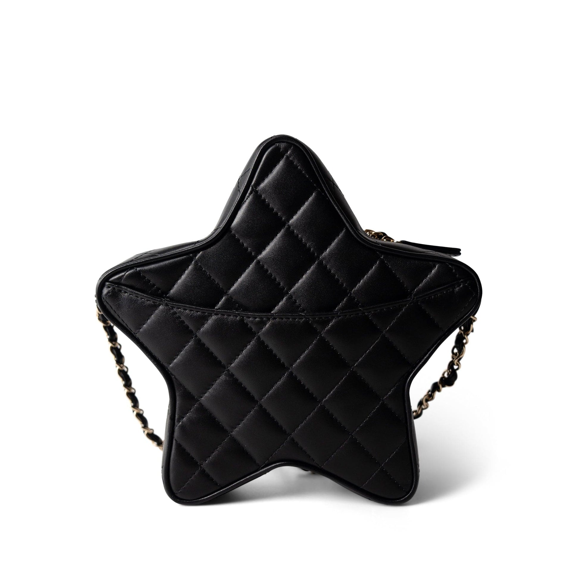 24C Black Lambskin Quilted Star Bag Light Gold Hardware