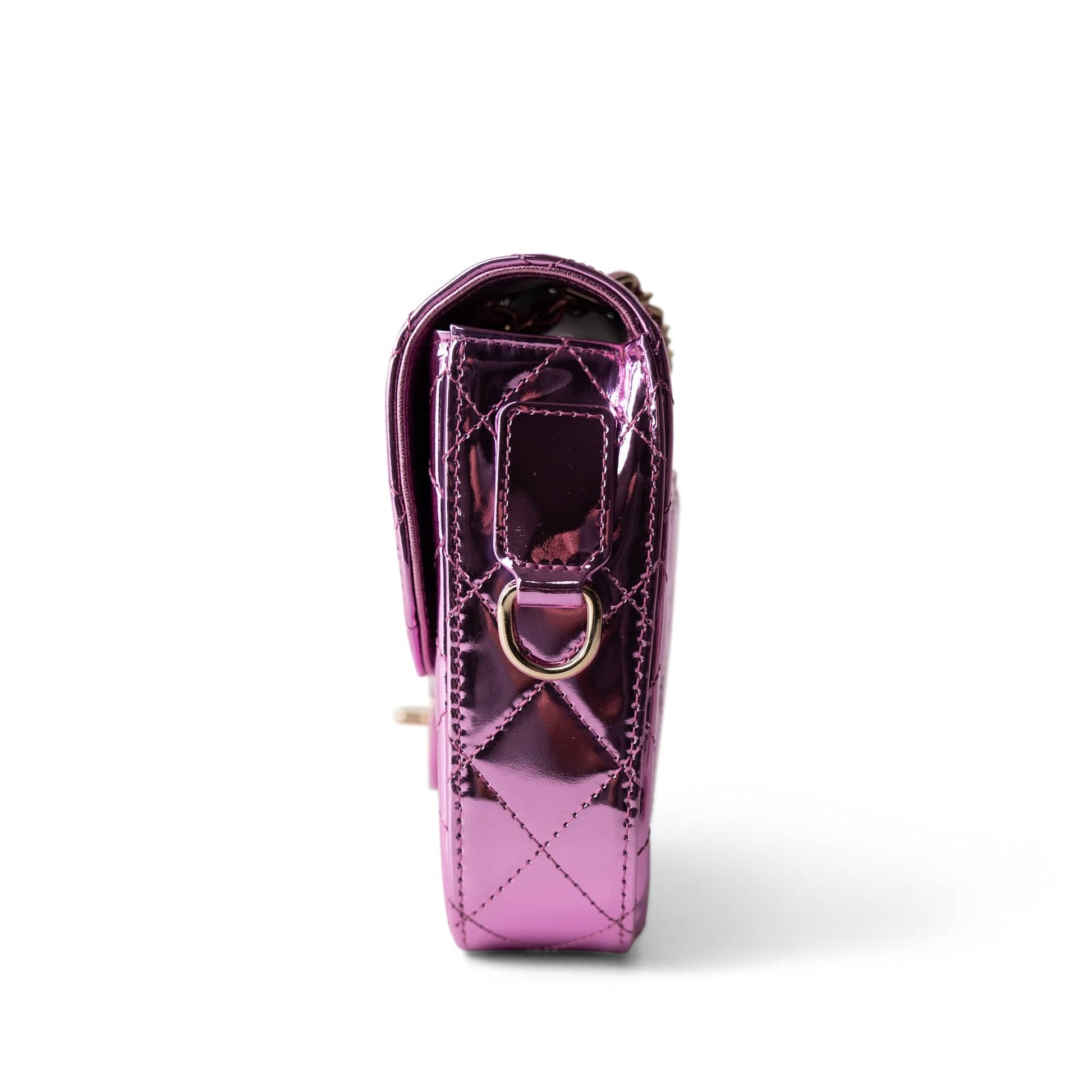 24C Shiny Pink Calfskin Quilted Flap Bag & Coin Purse