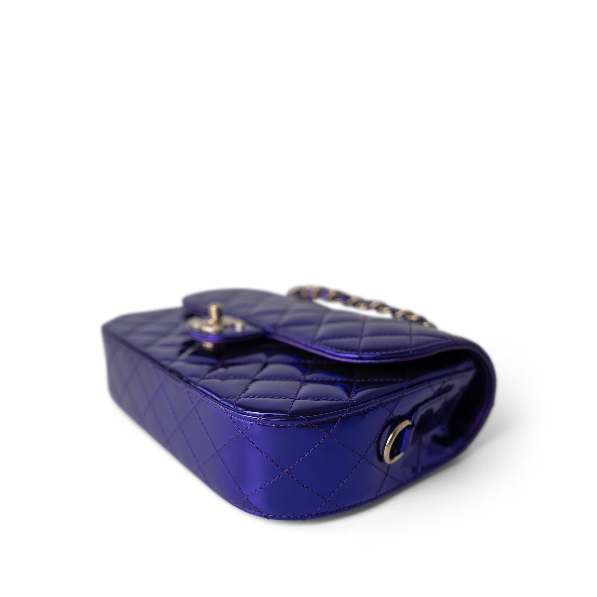 24C Shiny Purple Calfskin Quilted Flap Bag & Coin Purse