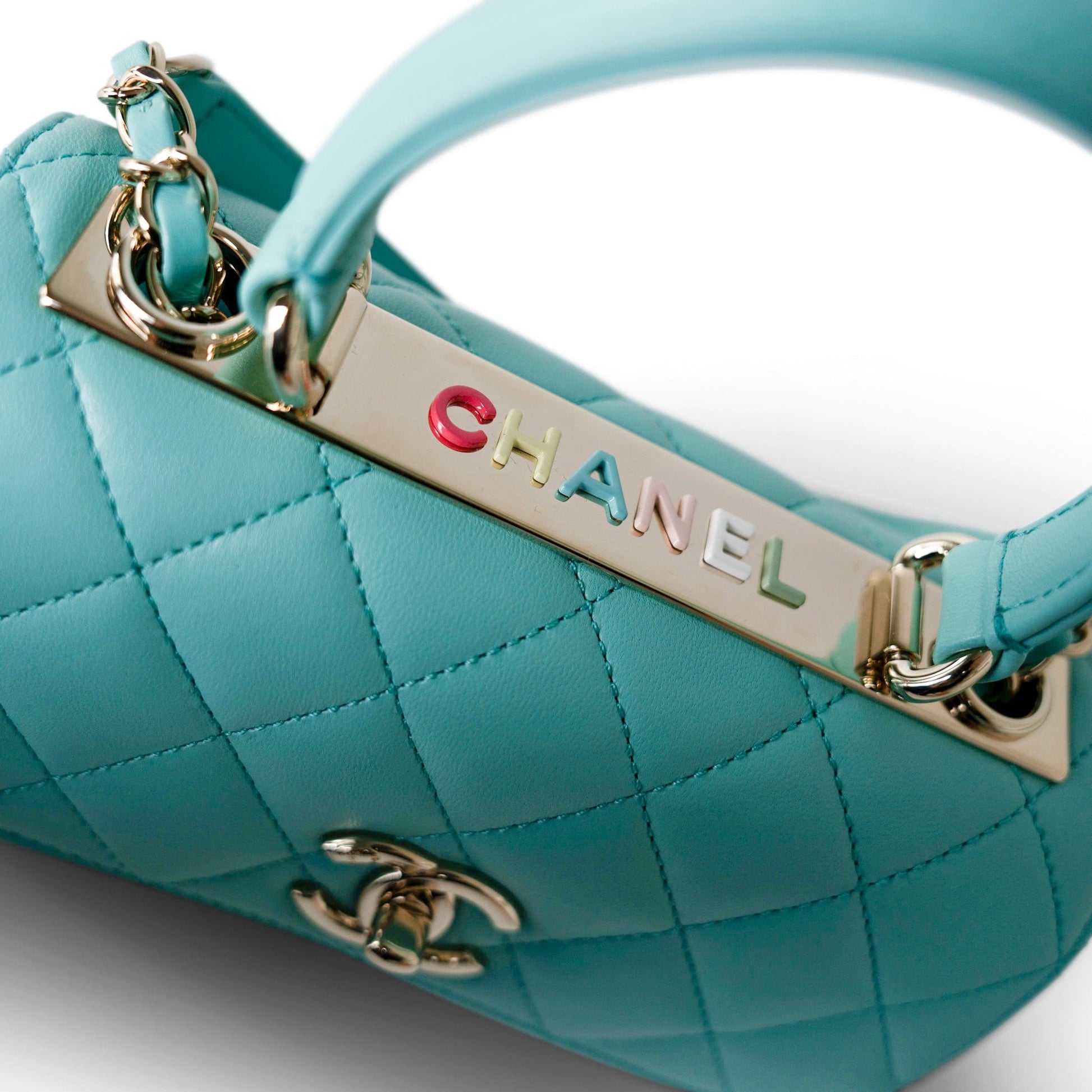 24C Tiffany Blue Lambskin Quilted Mini Trendy CC Light Gold Hardware