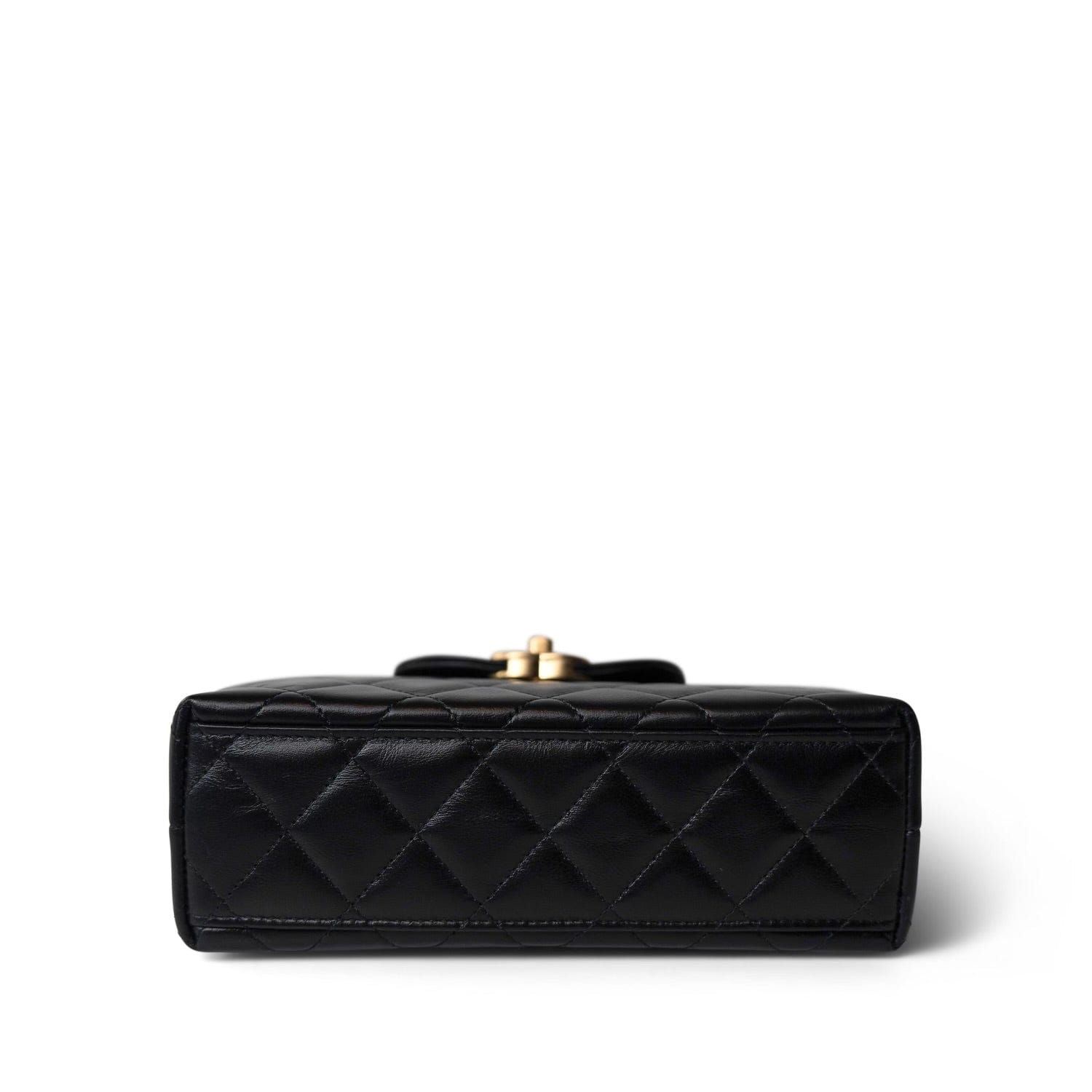 24P Black Shiny Aged Calfskin Nano Kelly Shopper Aged Gold Hardware