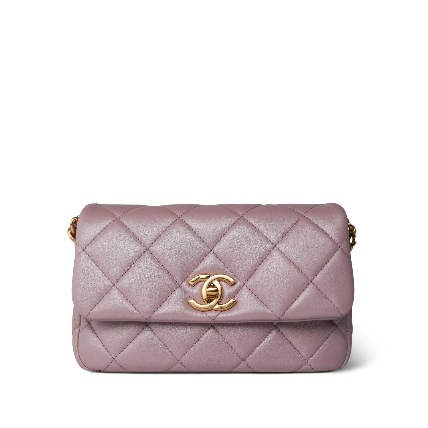24P Pearly Pink Charm Single Flap Aged Gold Hardware