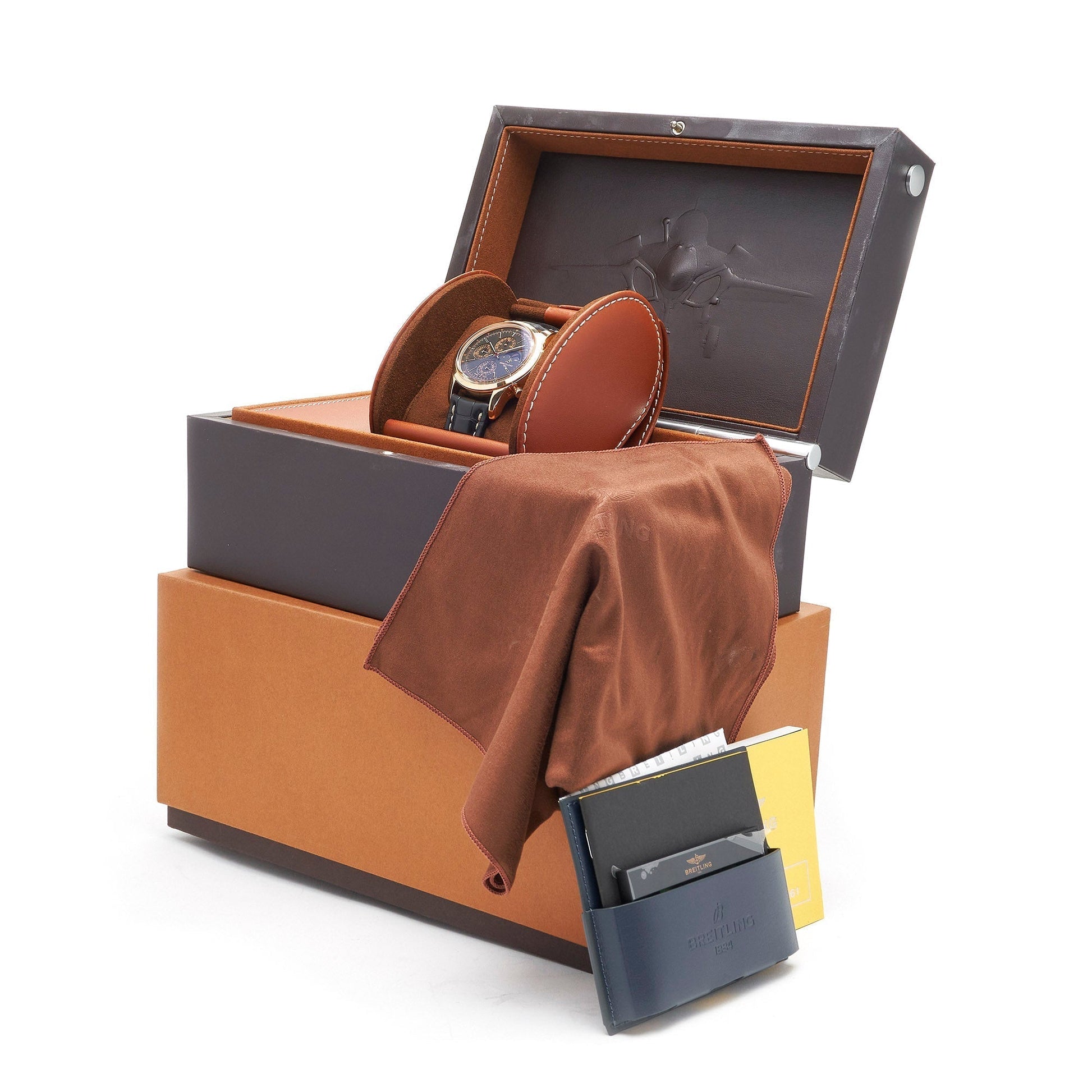 Breitling Transocean Perpetual Calendar Chronograph (ref. R1931012BC20, c. 2019) with a 43mm 18k red gold case, featuring a curved sapphire crystal with a smooth bezel, solid gold caseback, crown and pushers, with four hidden pushers to adjust the calendar functions.