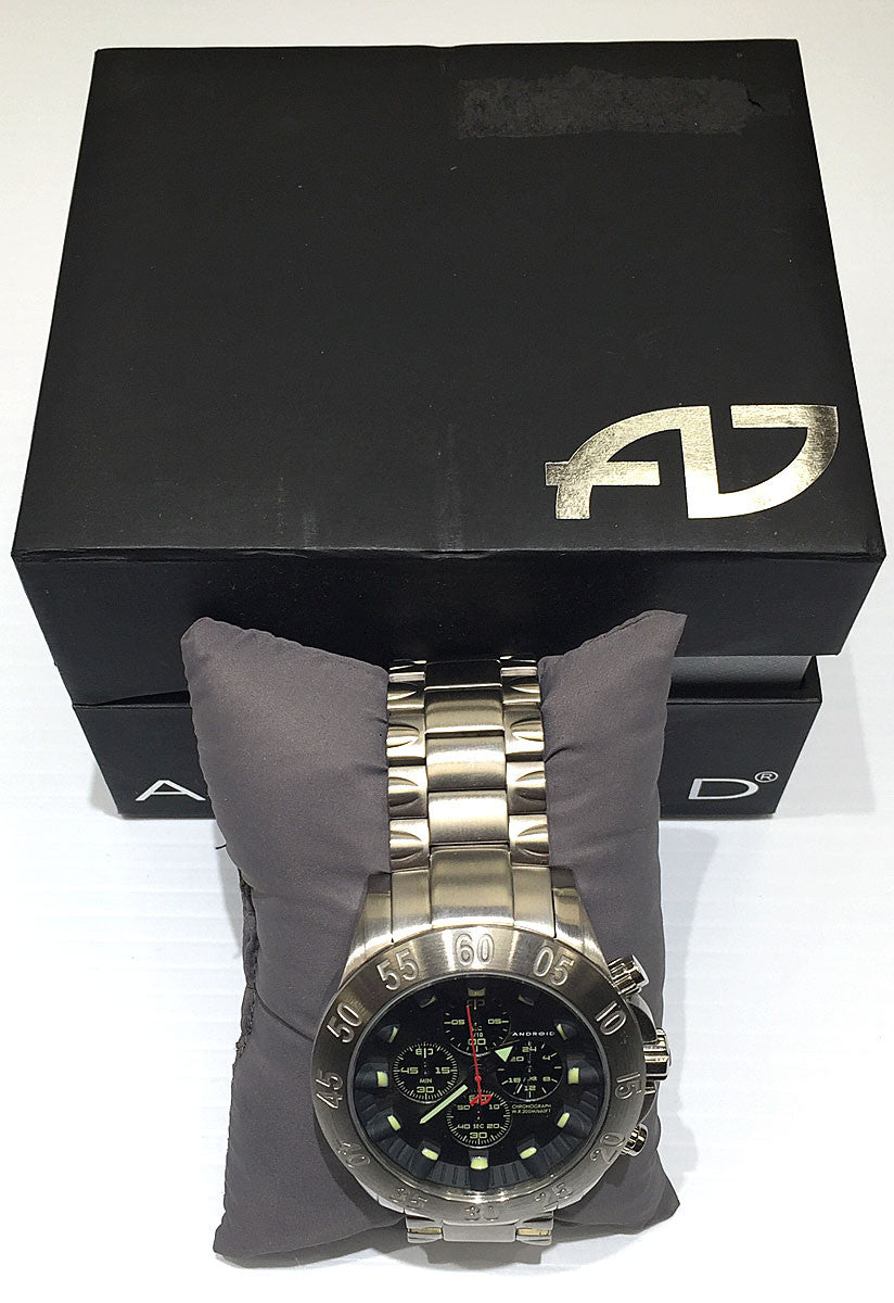 A fantastic and gigantic watch that is perfect for the man that likes to make a bold statement. The Android Tunnelgraph Chrono has a 50mm stainless steel case with a quartz chronograph movement and sapphire crystal. It has a stainless steel bracelet with a push button fold-over clasp and it will fit just about anyone as it is over 9' long!!