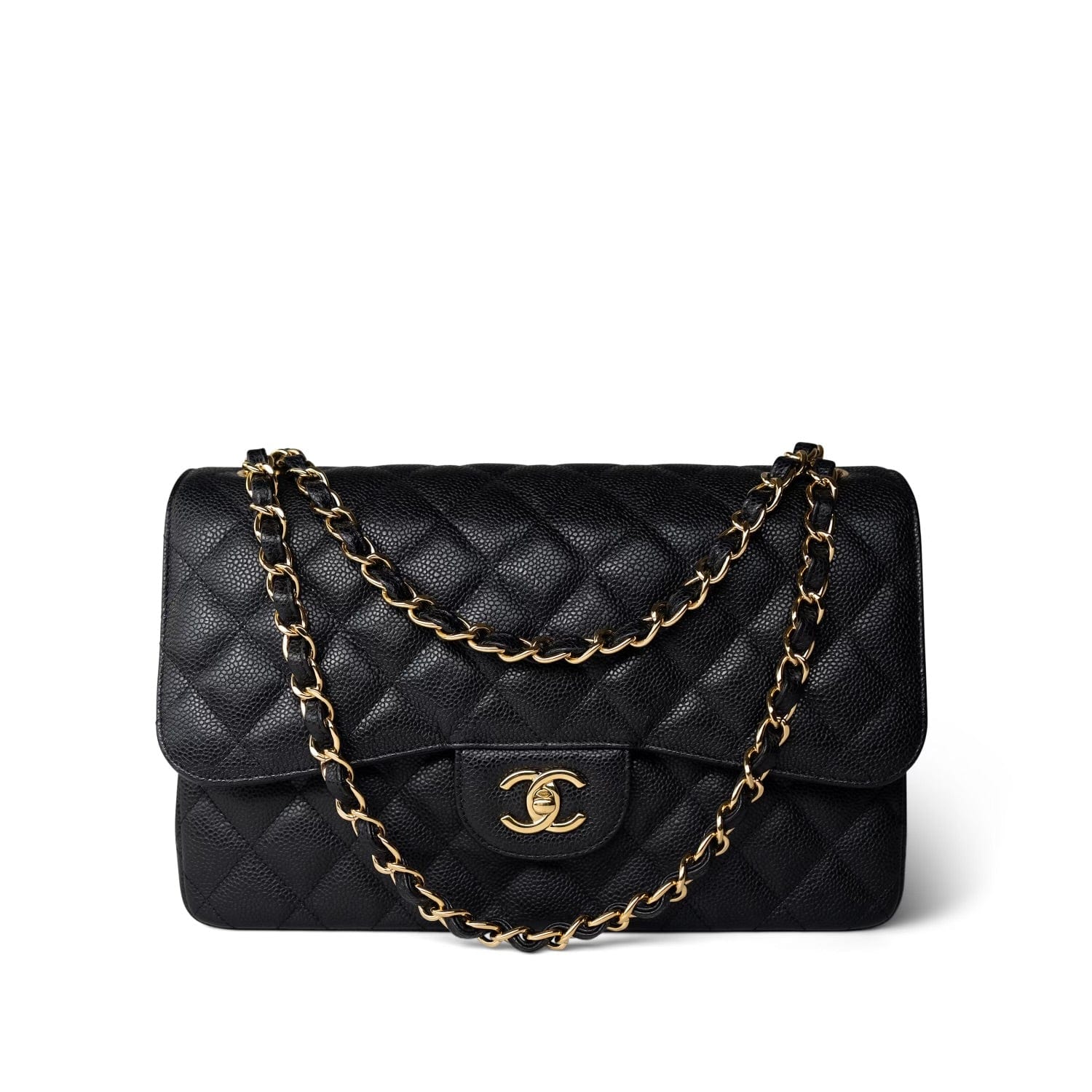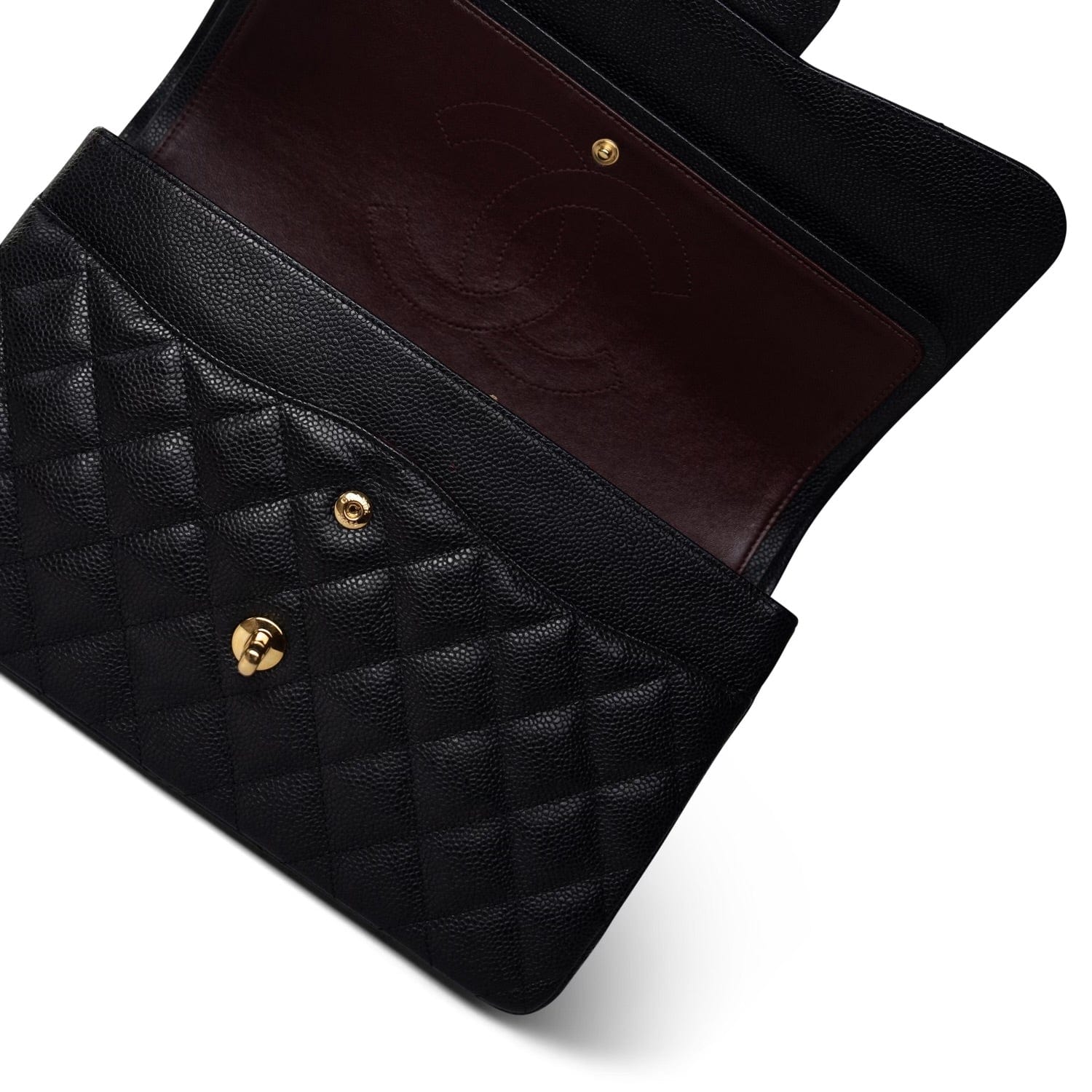 Black Caviar Quilted Jumbo Classic Flap Gold Hardware