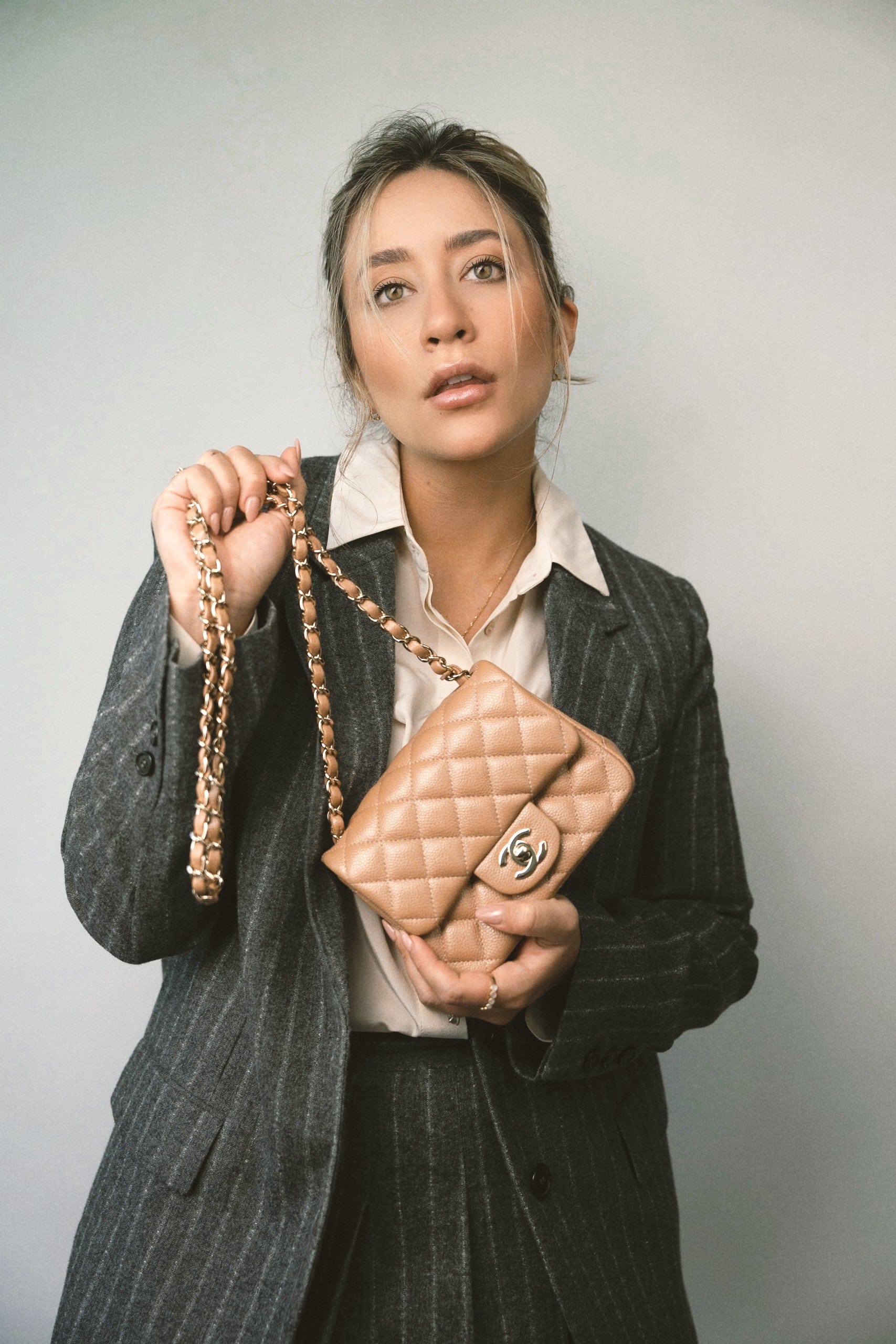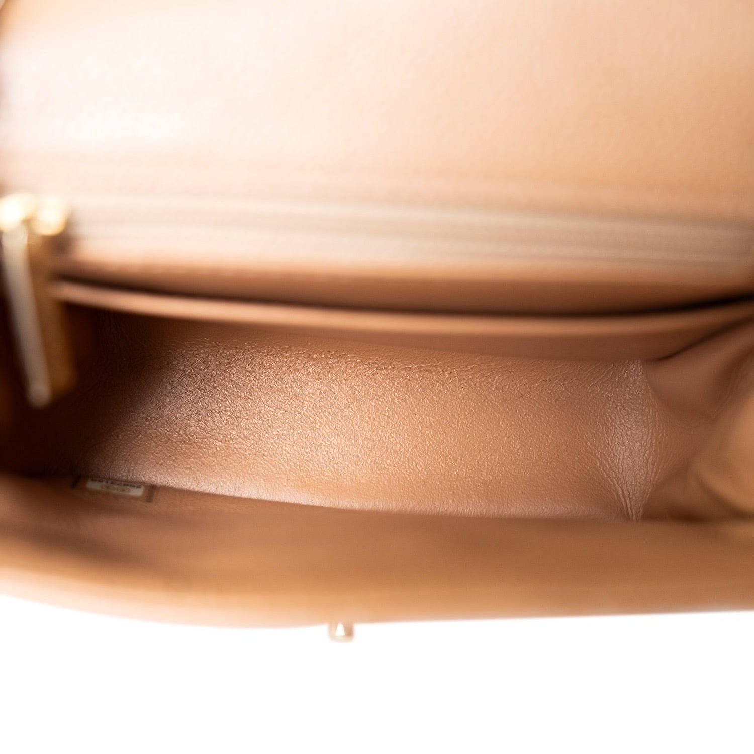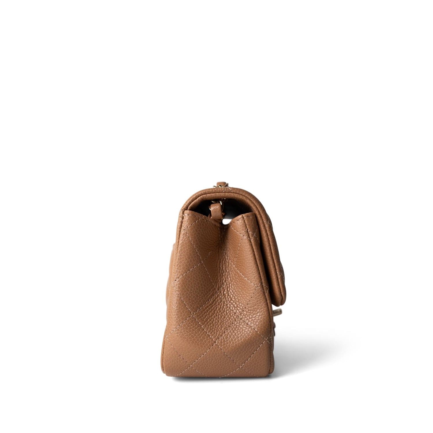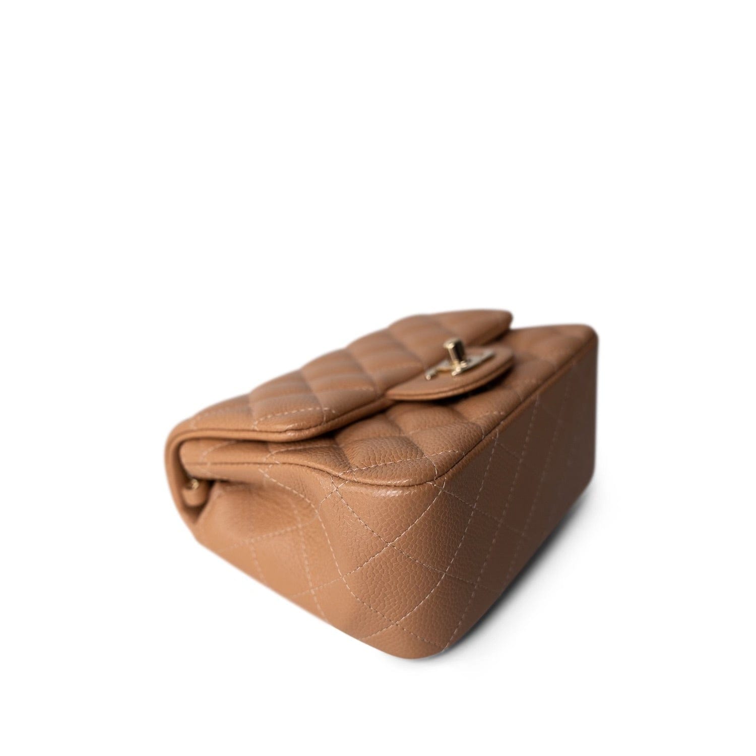 18S Beige Caviar Quilted Mini Square Flap Light Gold Hardware
