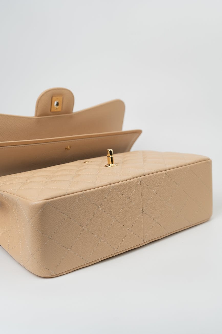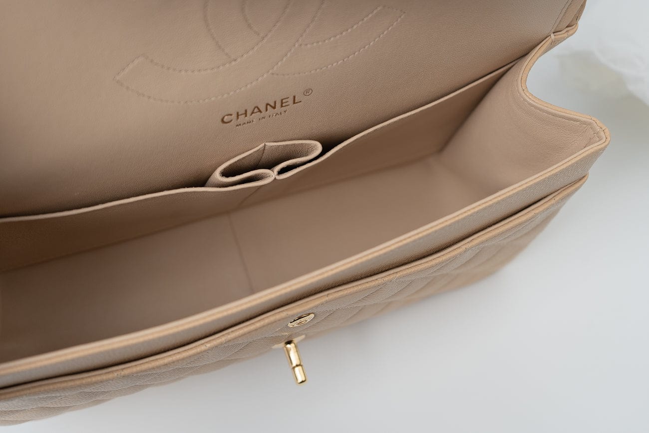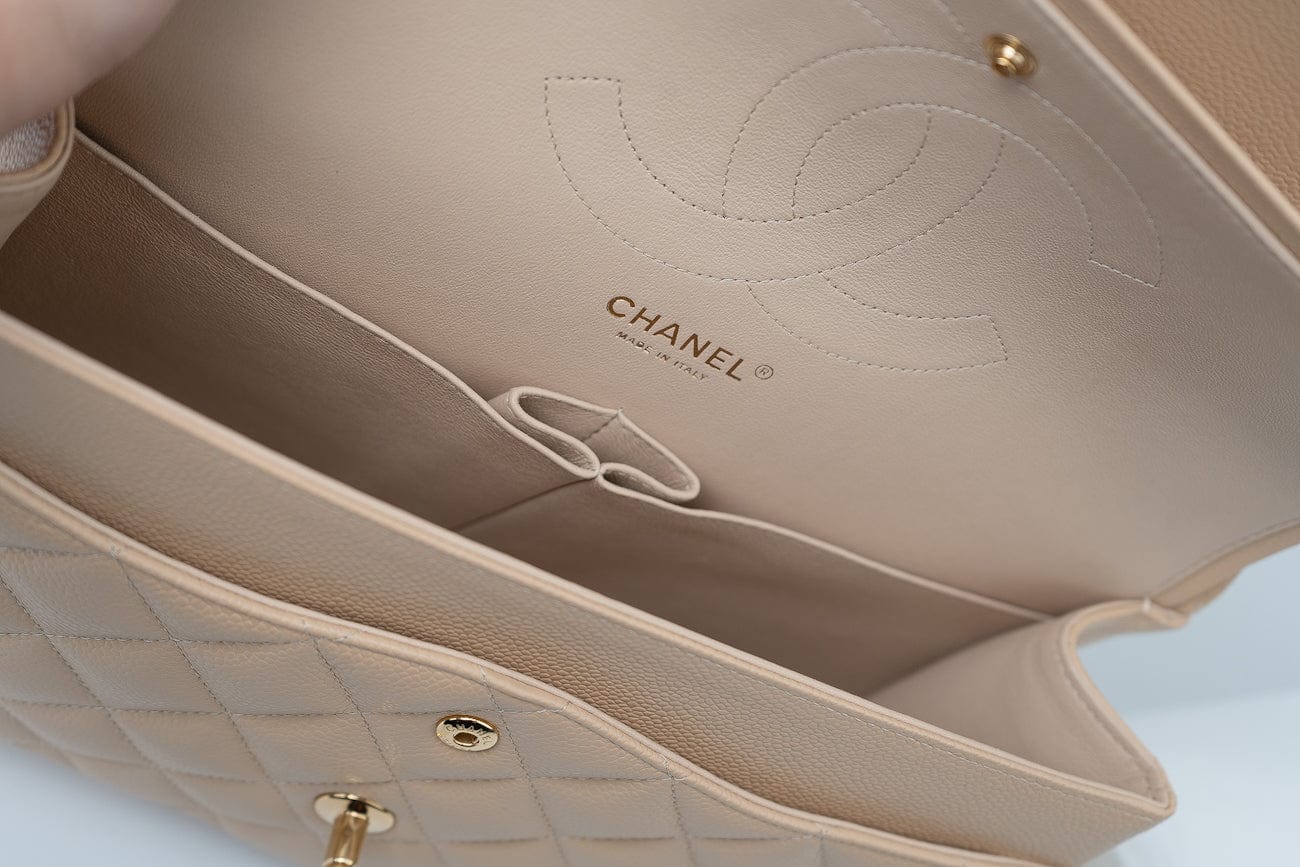 Beige Clair Caviar Quilted Classic Flap Jumbo GHW
