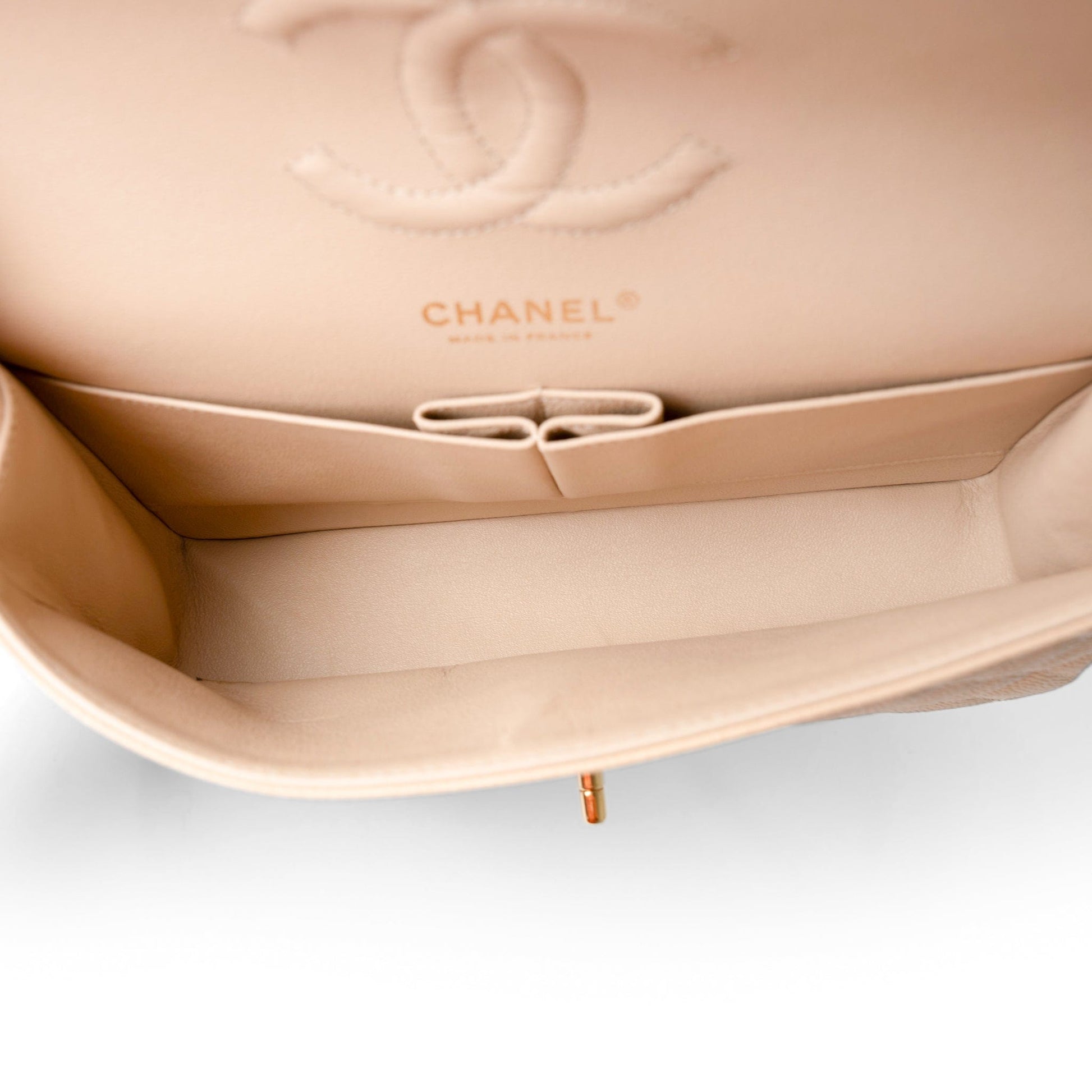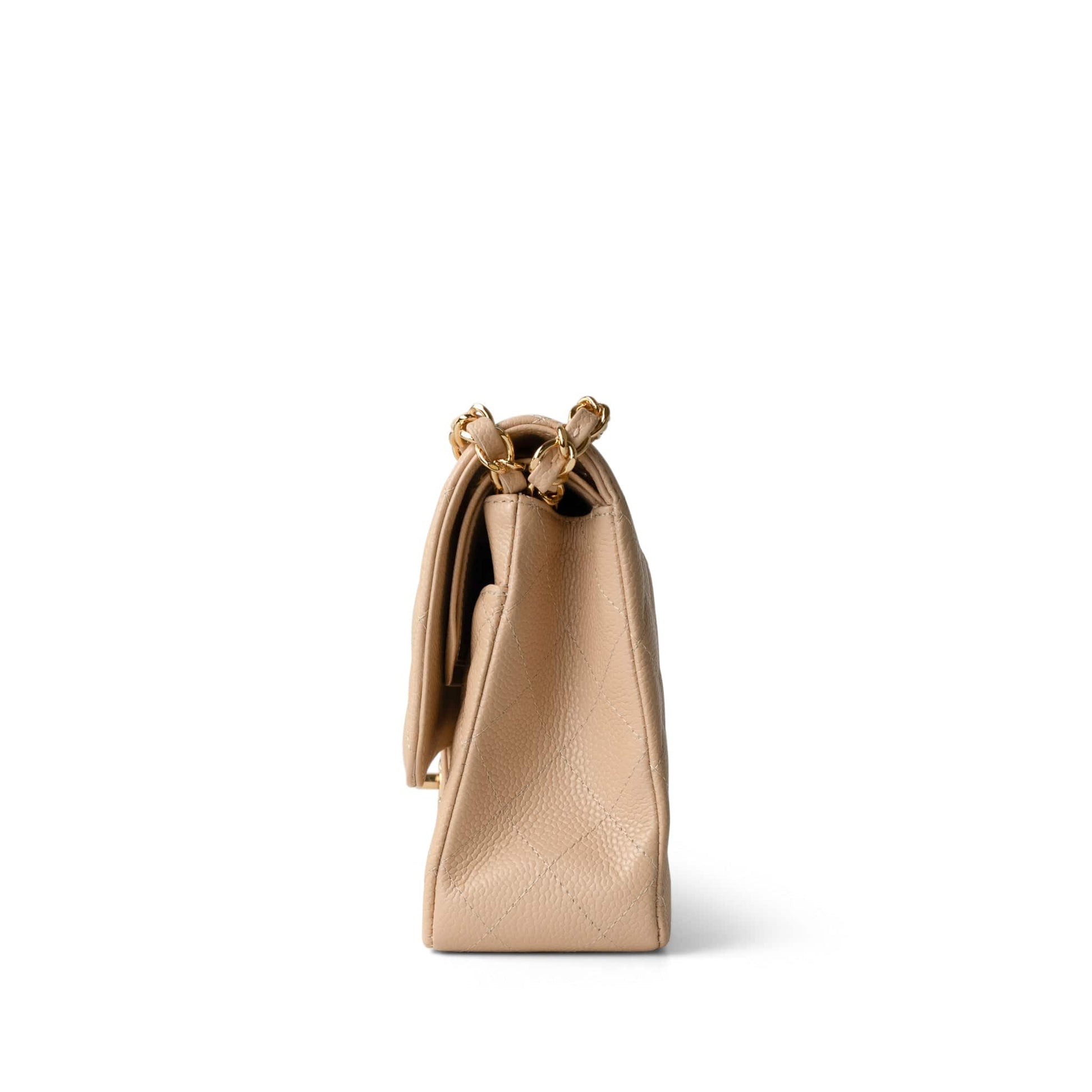 Beige Clair Caviar Quilted Classic Flap Medium Gold Hardware