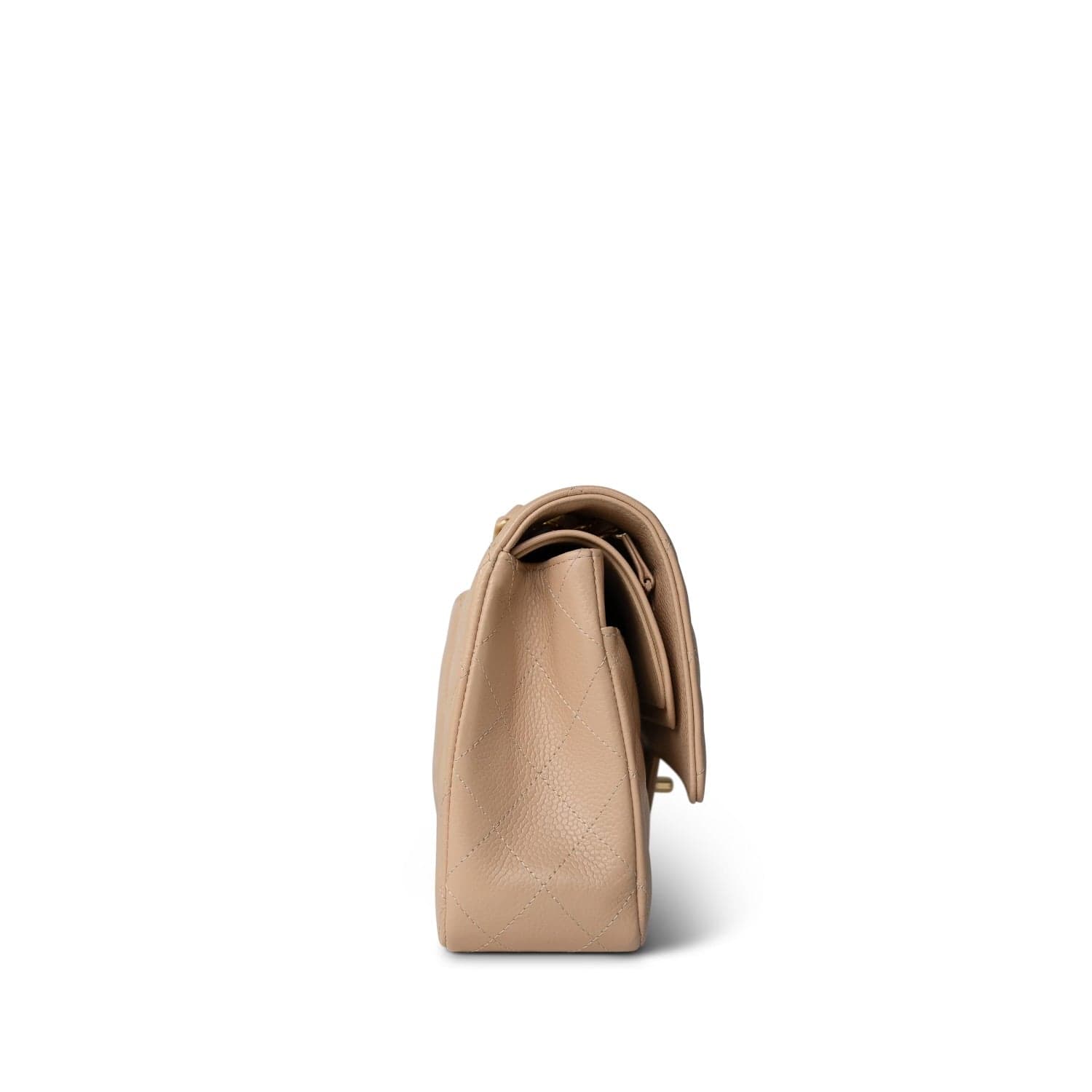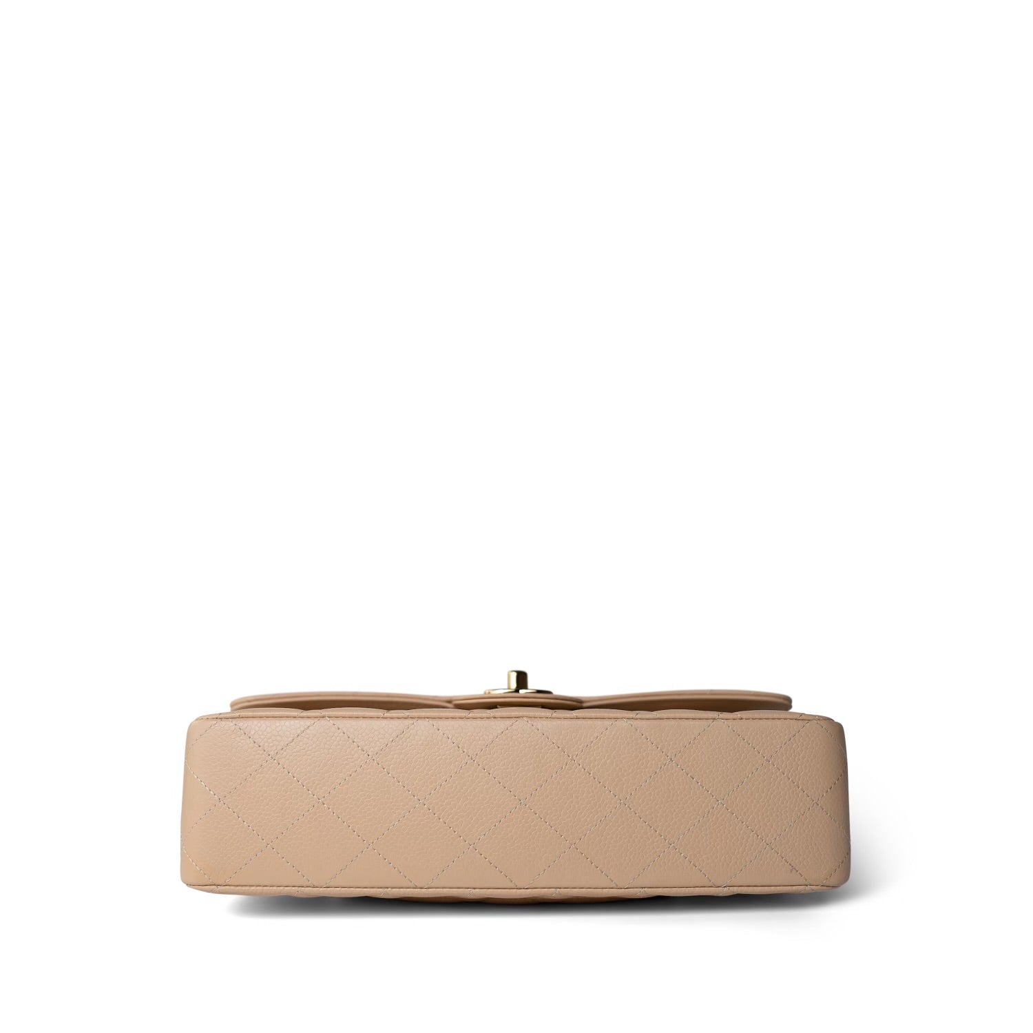 Beige Clair Caviar Quilted Classic Flap Medium Gold Hardware