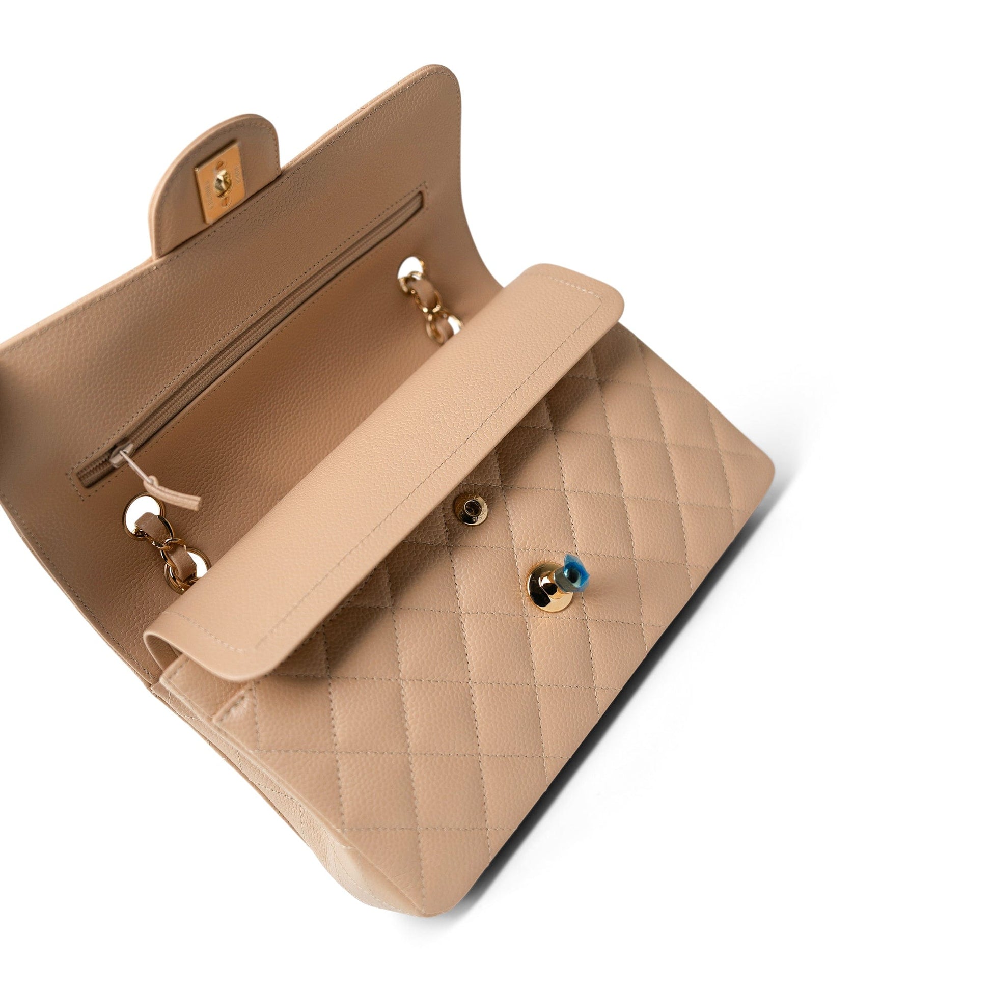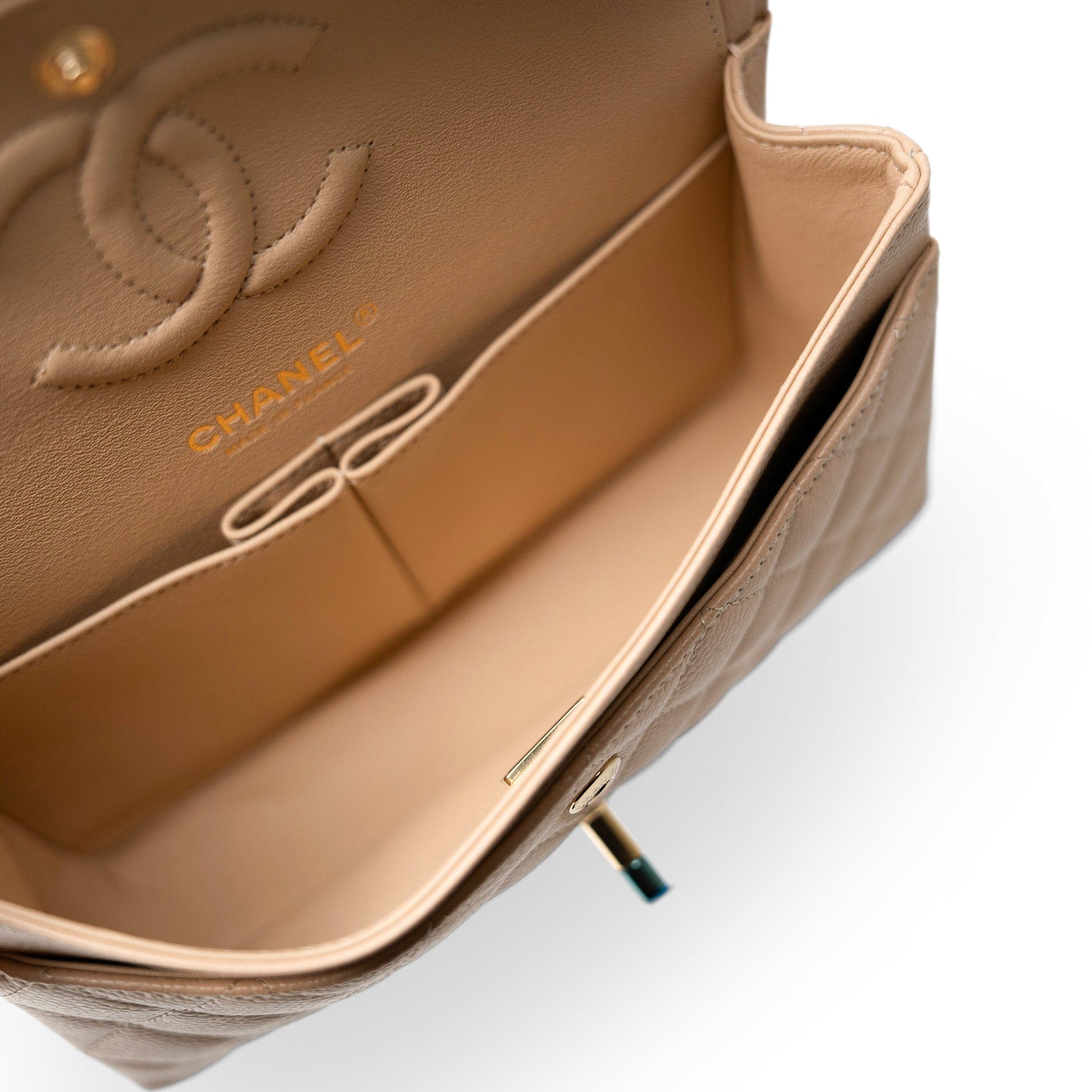 Beige Clair Caviar Quilted Classic Flap Small Gold Hardware