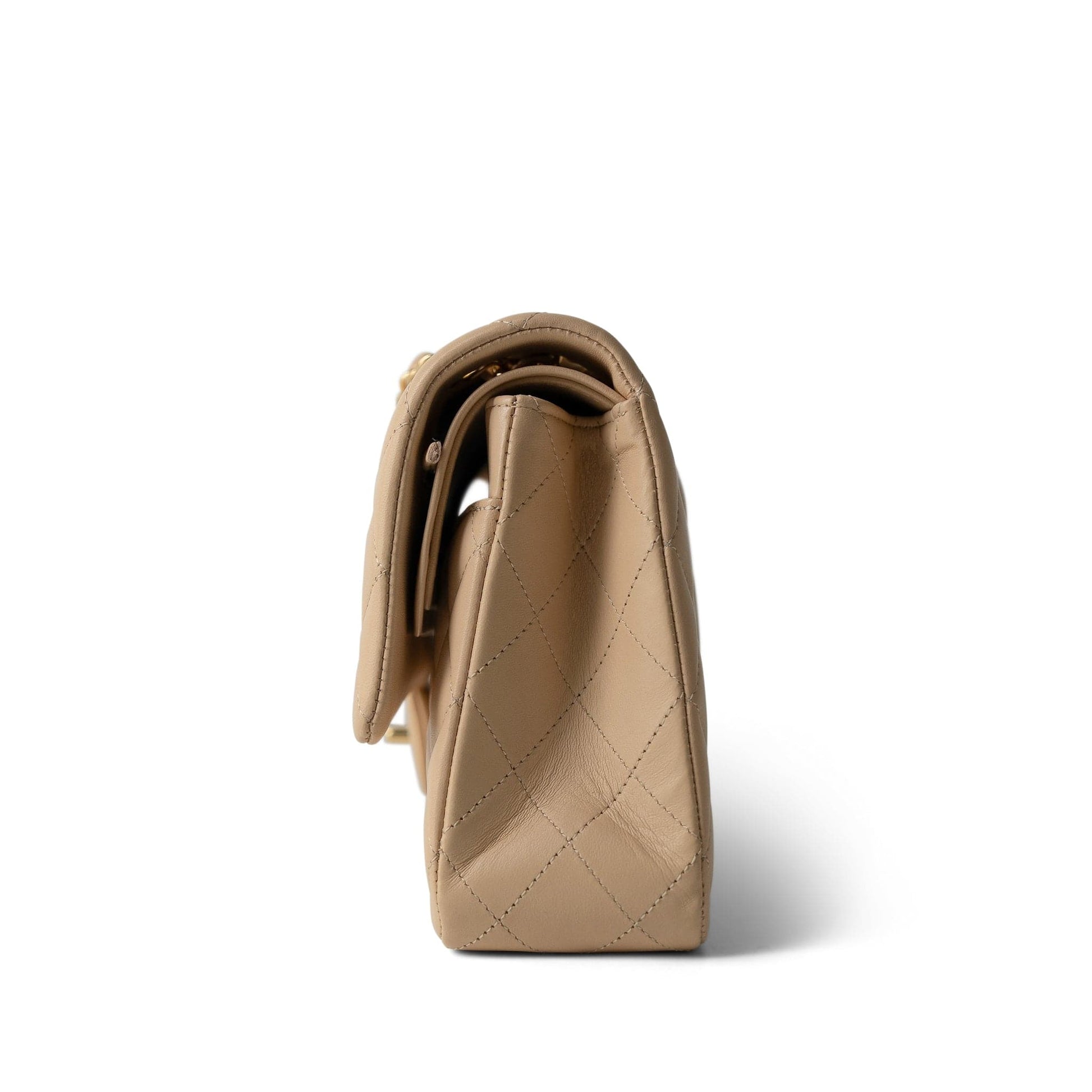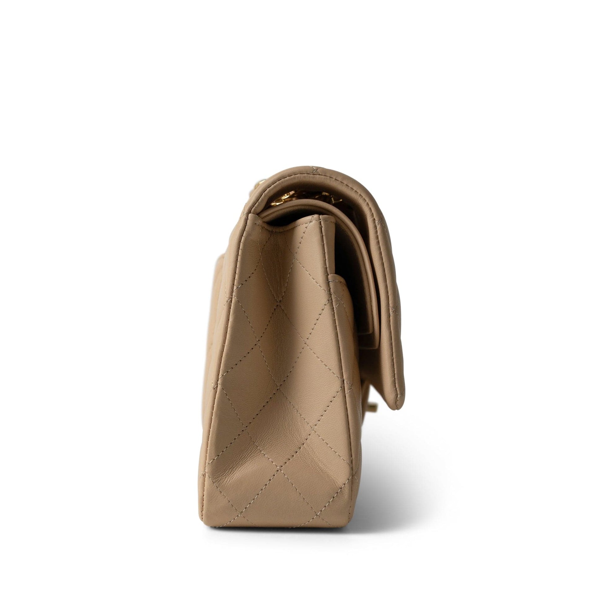 Beige Clair Lambskin Quilted Classic Flap Medium Gold Hardware