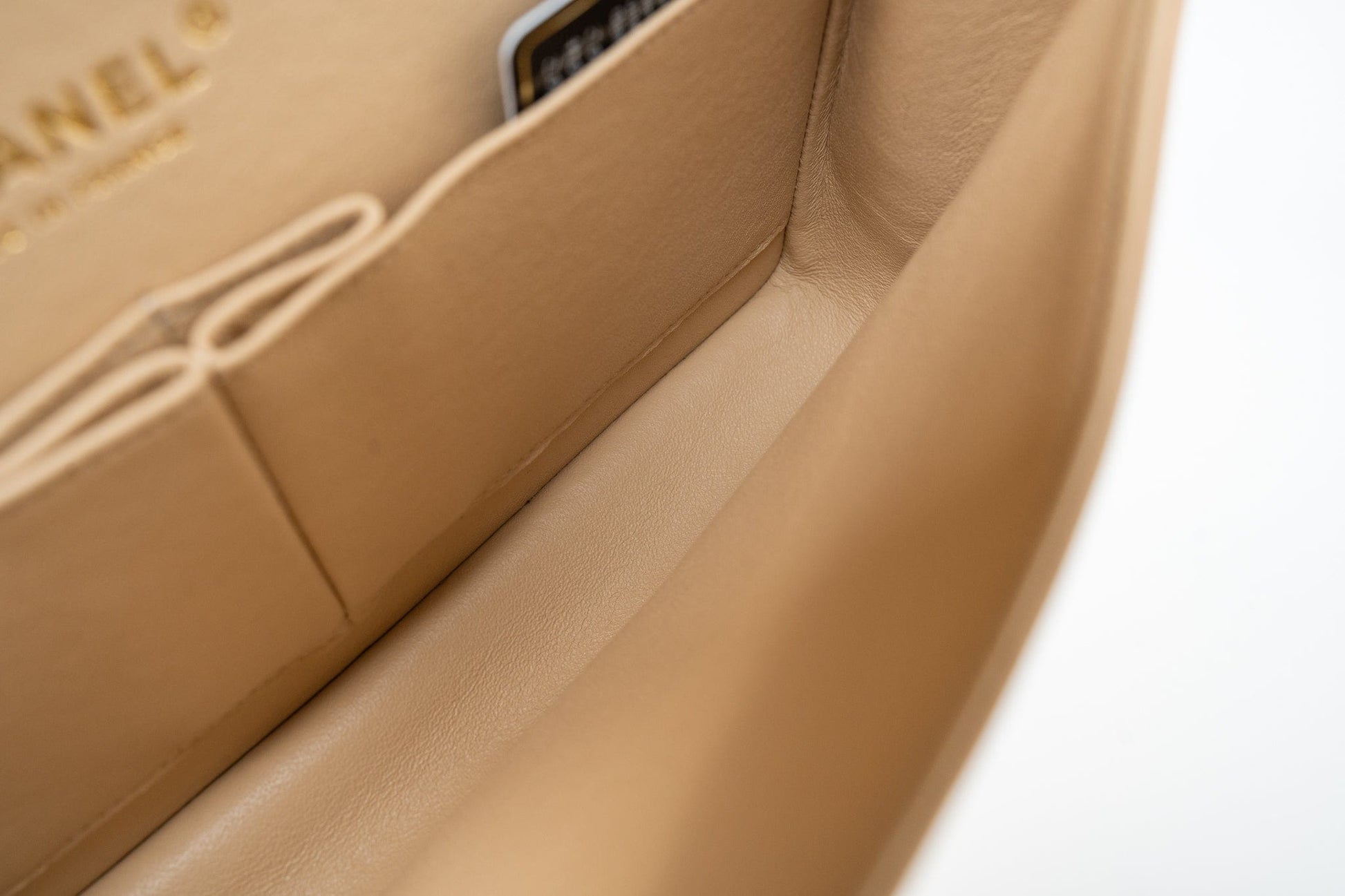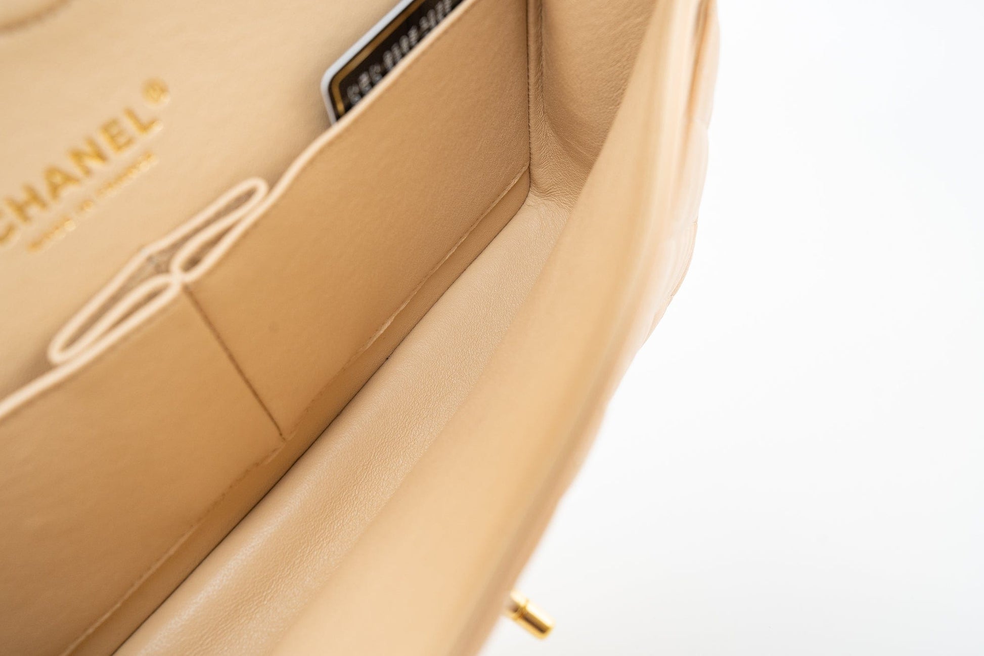Beige Lambskin Quilted Classic Flap Medium GHW