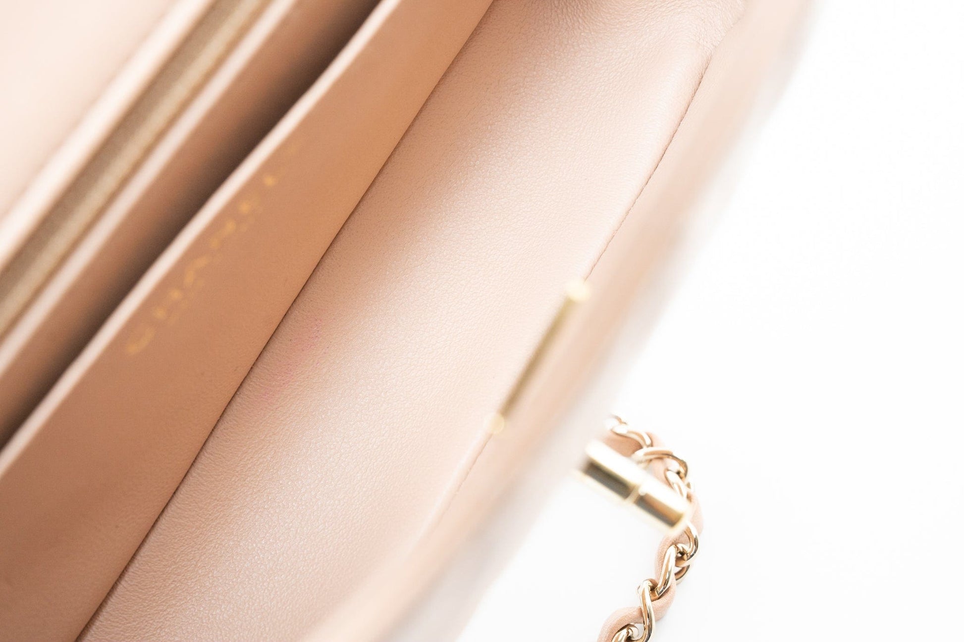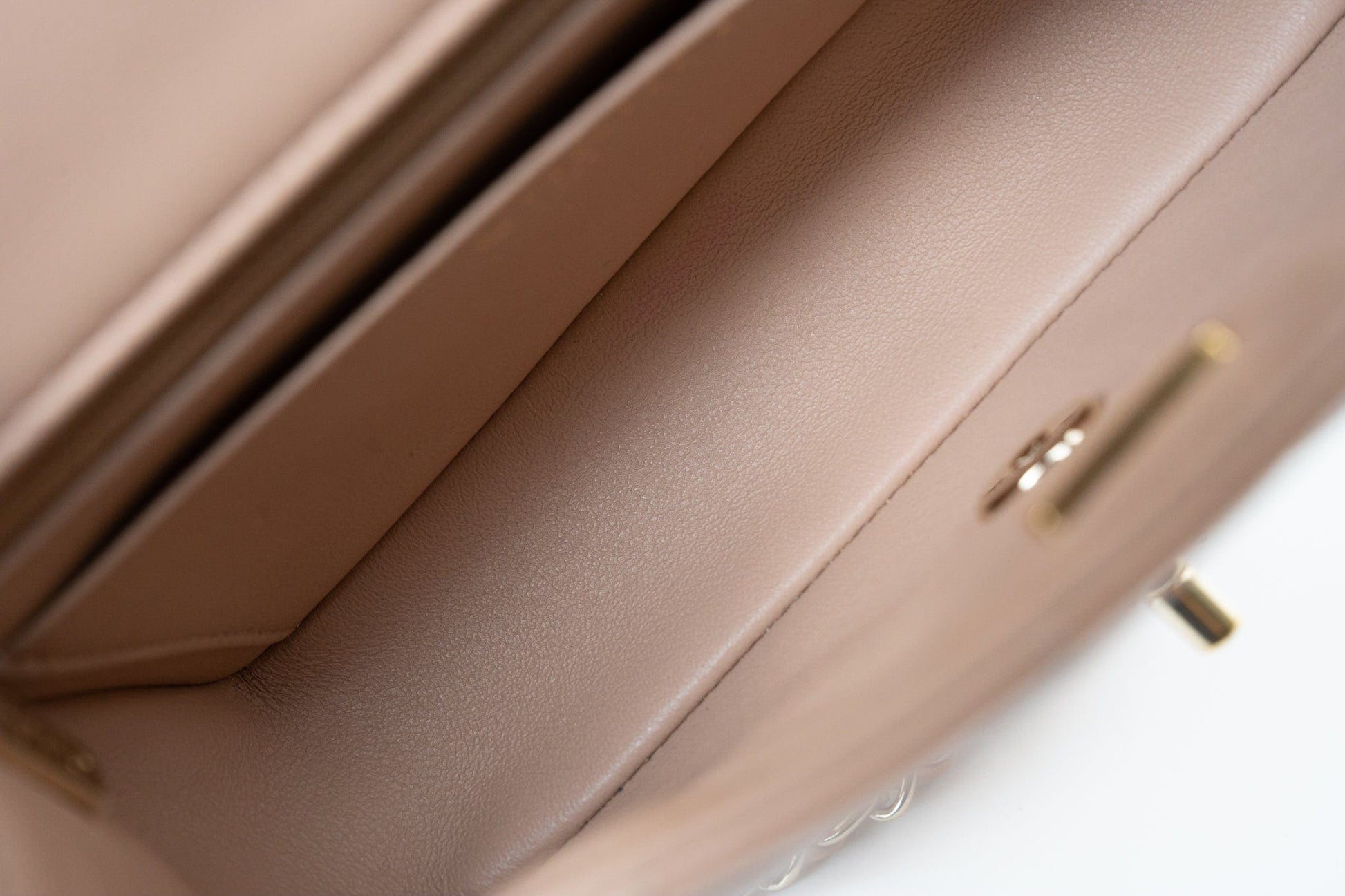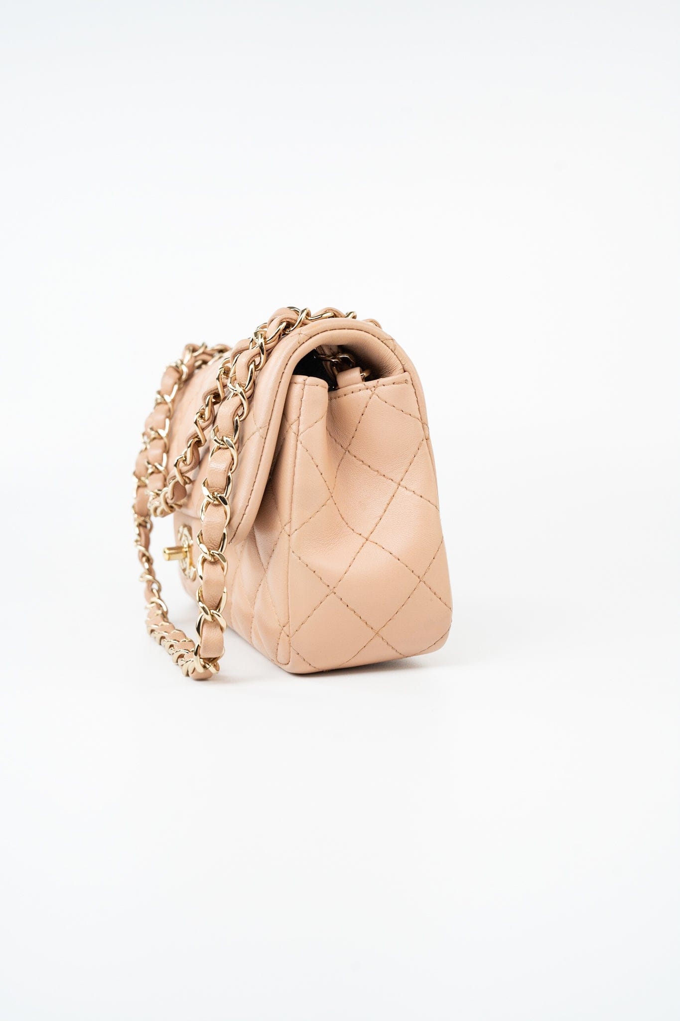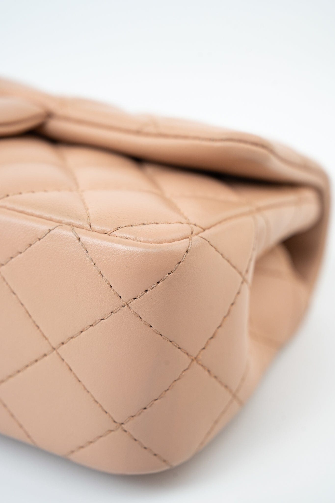 Beige Lambskin Quilted Mini Rectangular Flap Light Gold Hardware