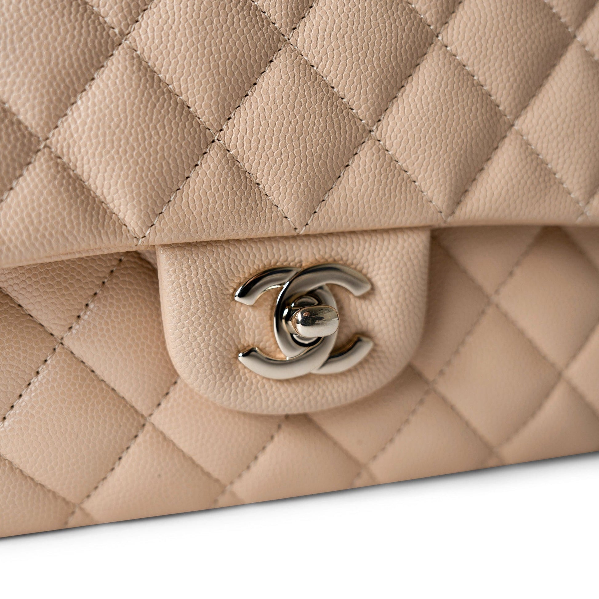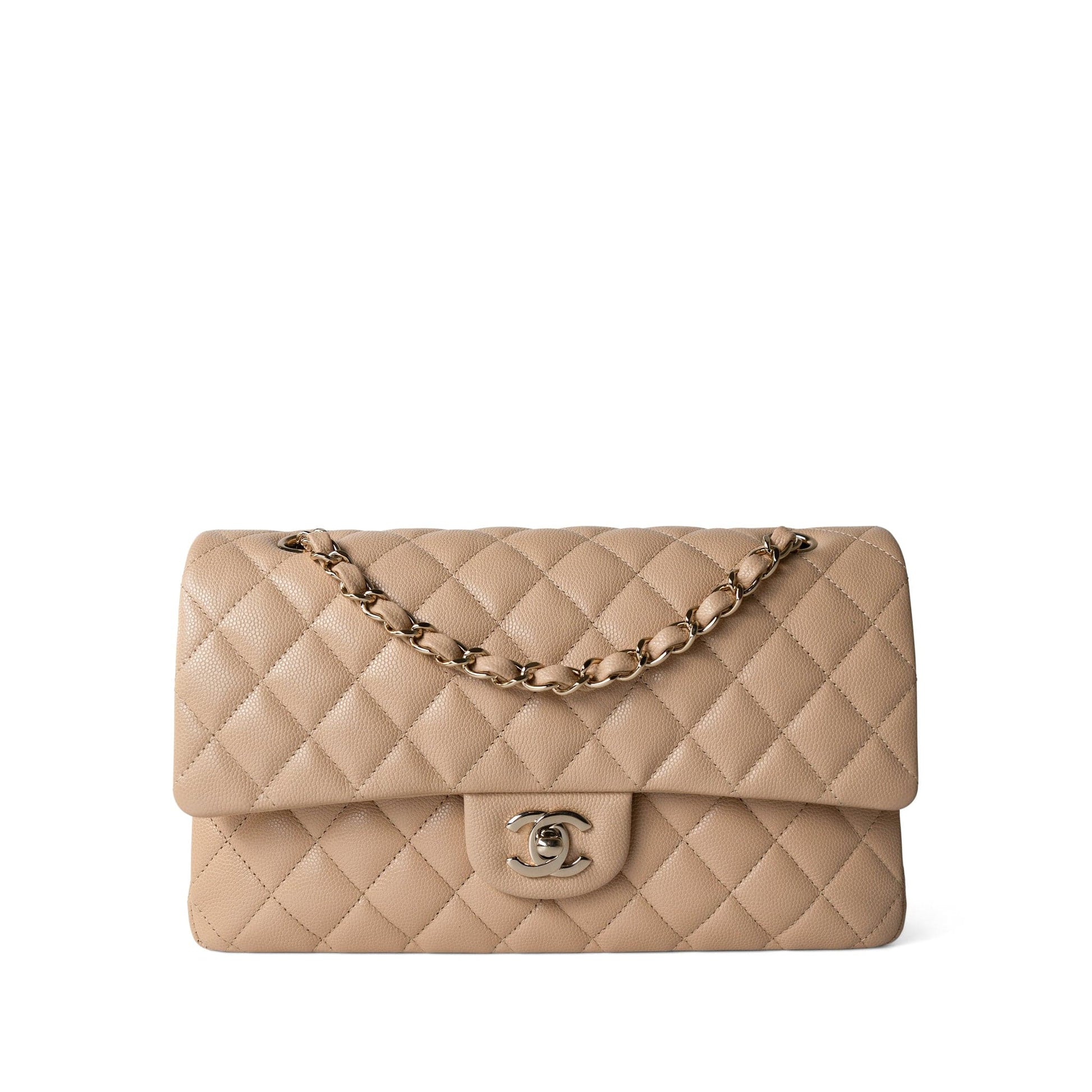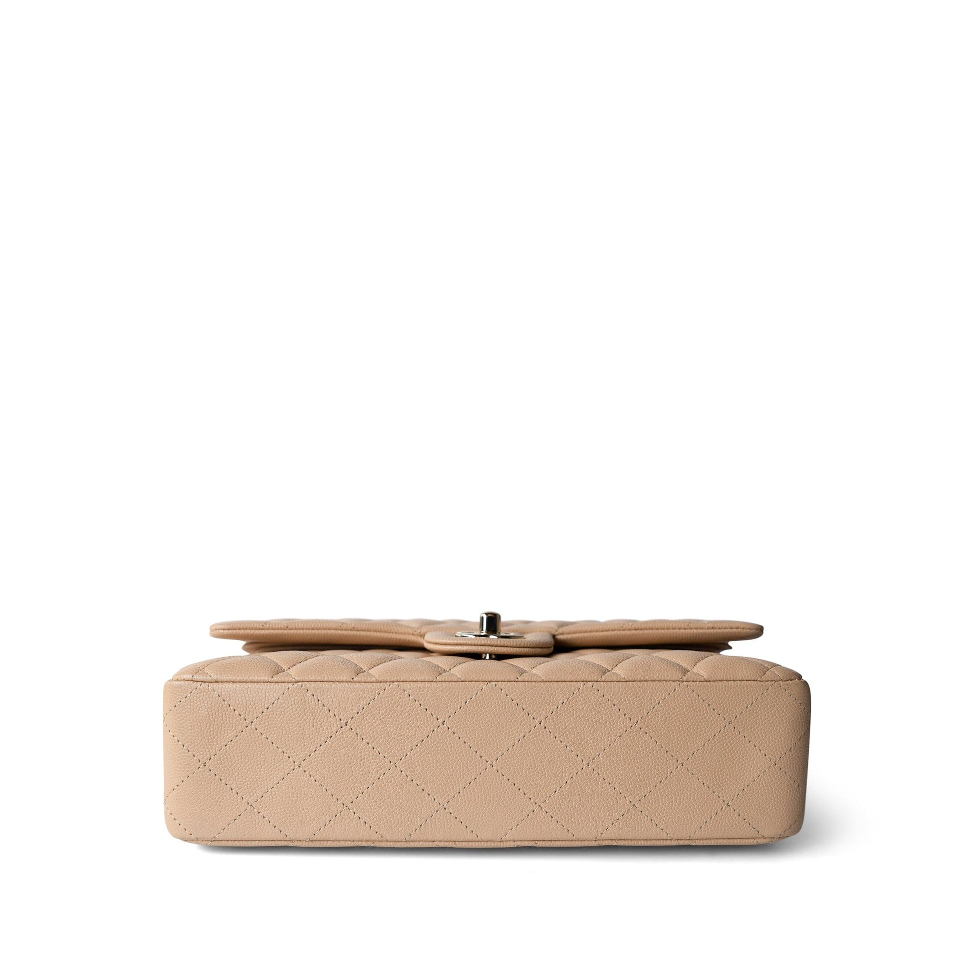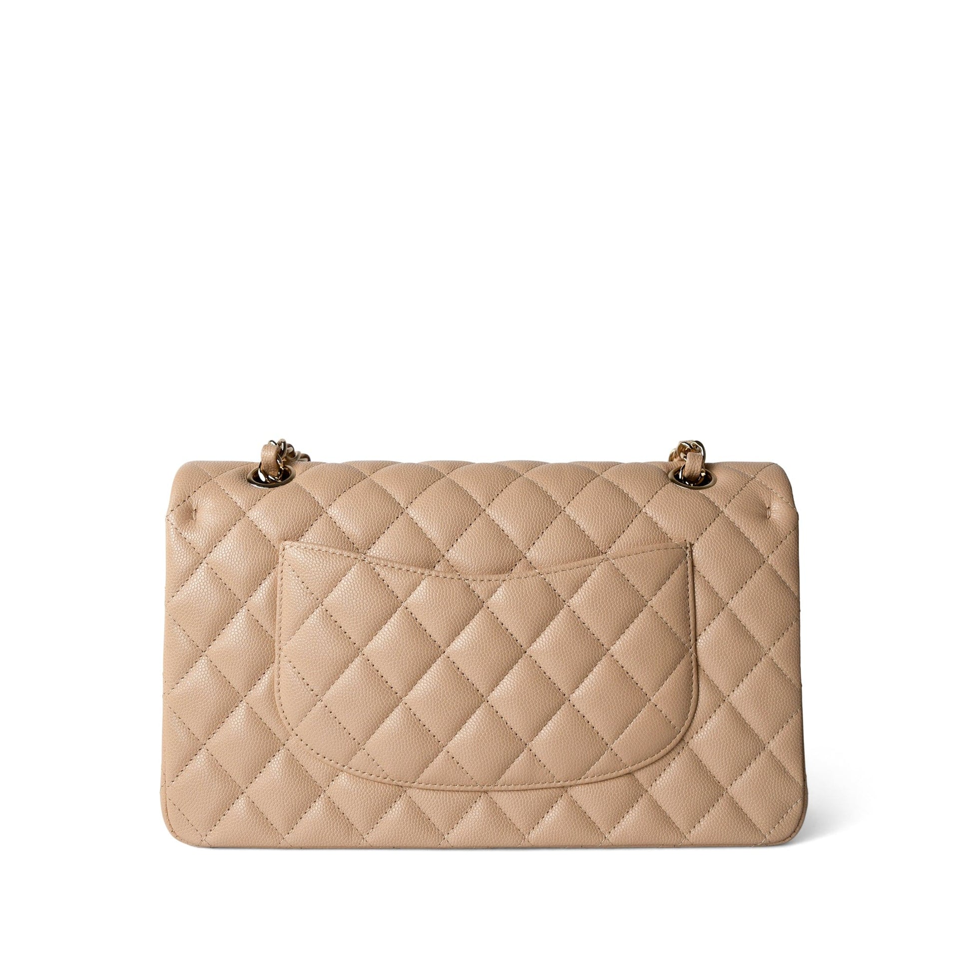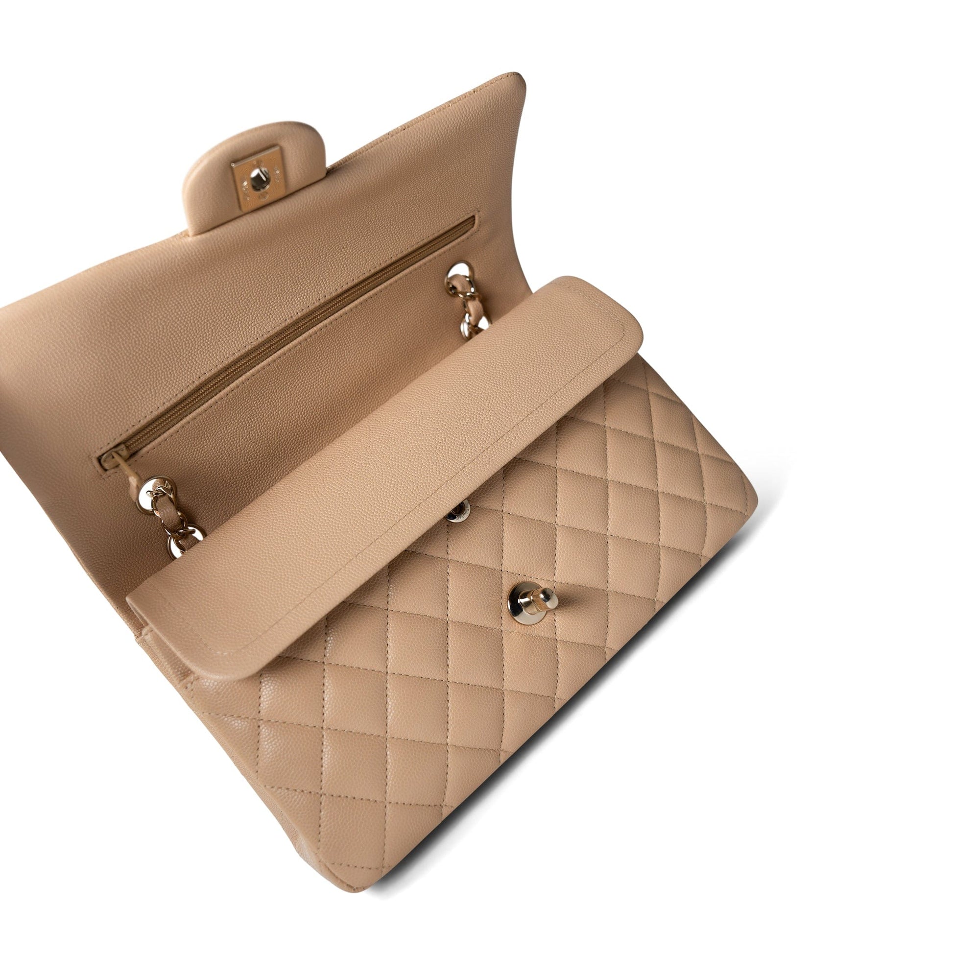 Beige / Tan Caviar Quilted Classic Flap Medium Light Gold Hardware