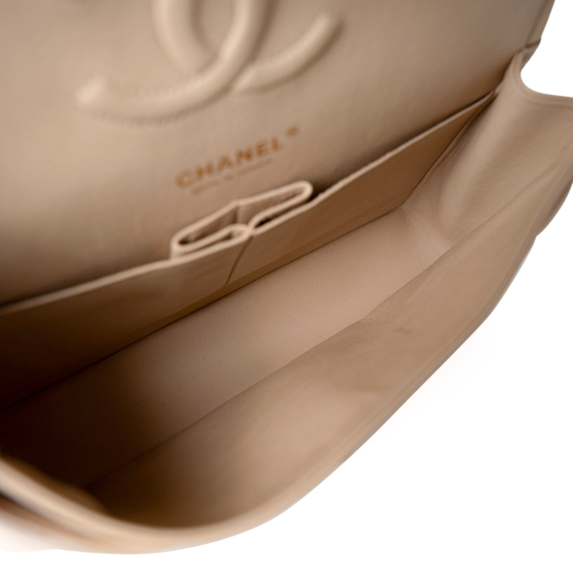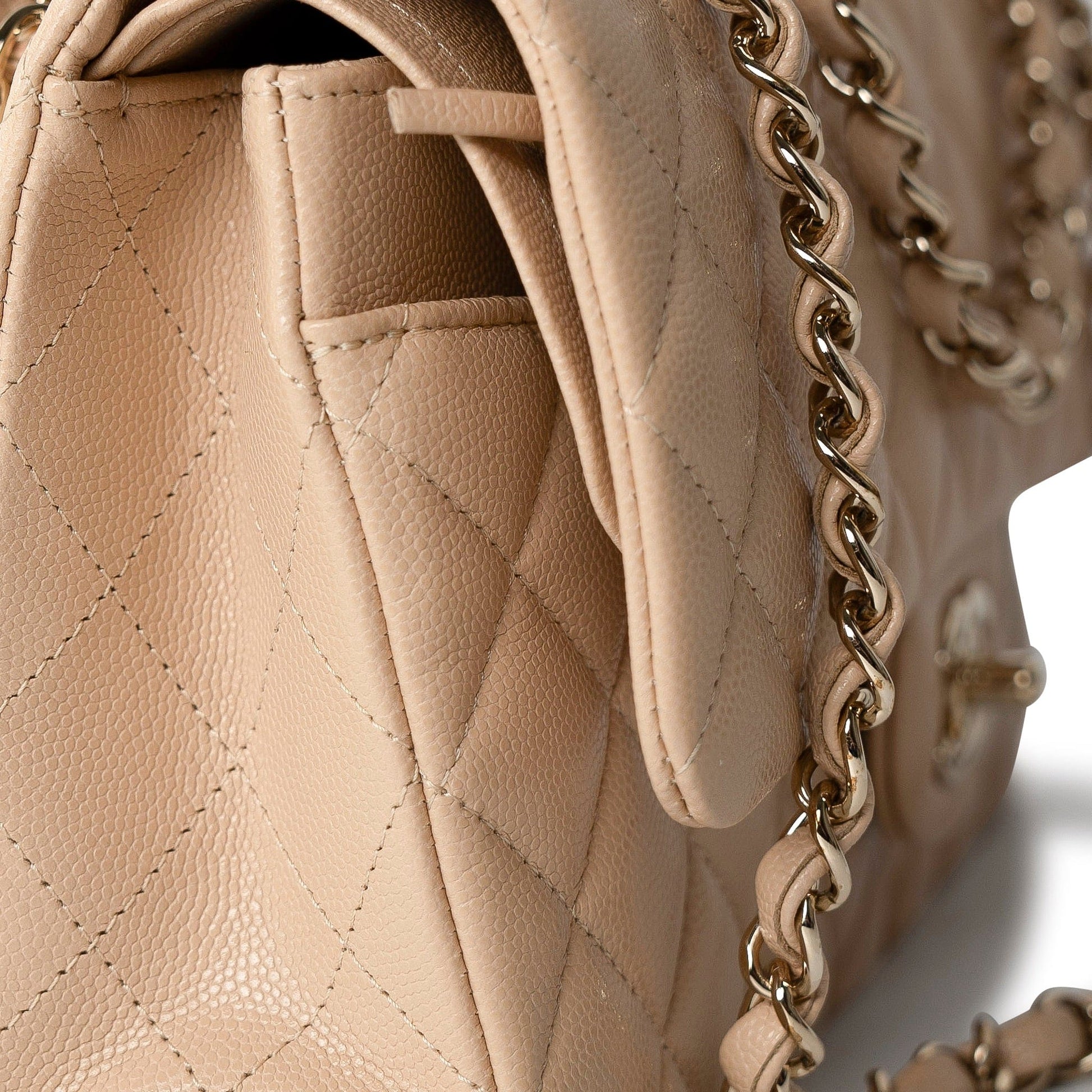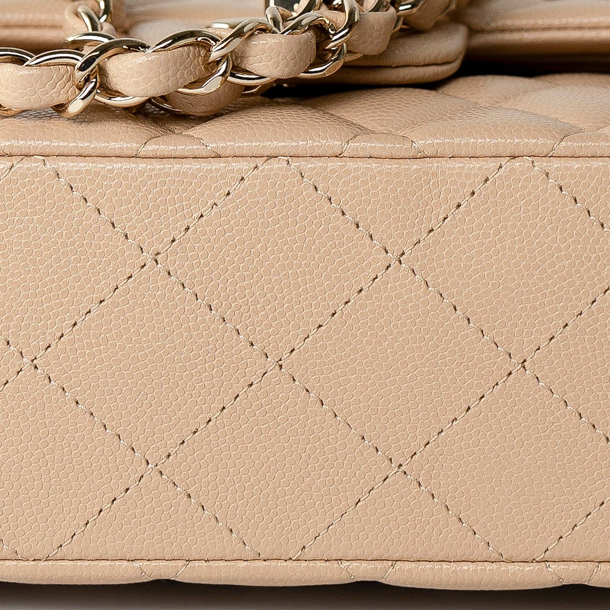 Beige/Tan Caviar Quilted Classic Flap Medium Light Gold Hardware
