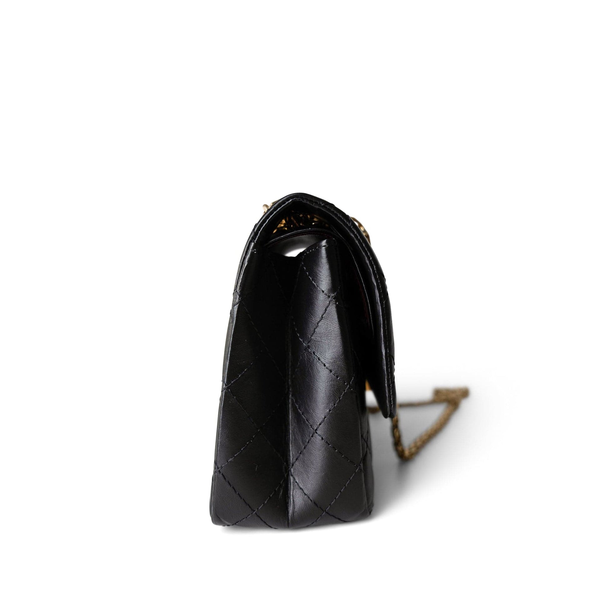 Black Aged Calfskin Quilted 2.55 Reissue 226 Medium Antique Gold Hardware