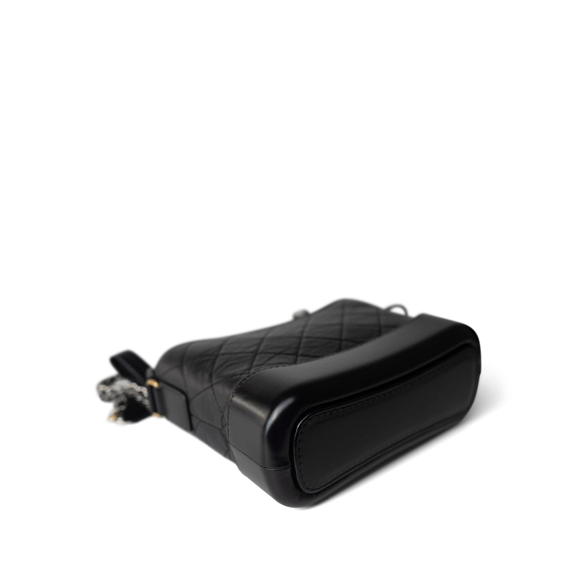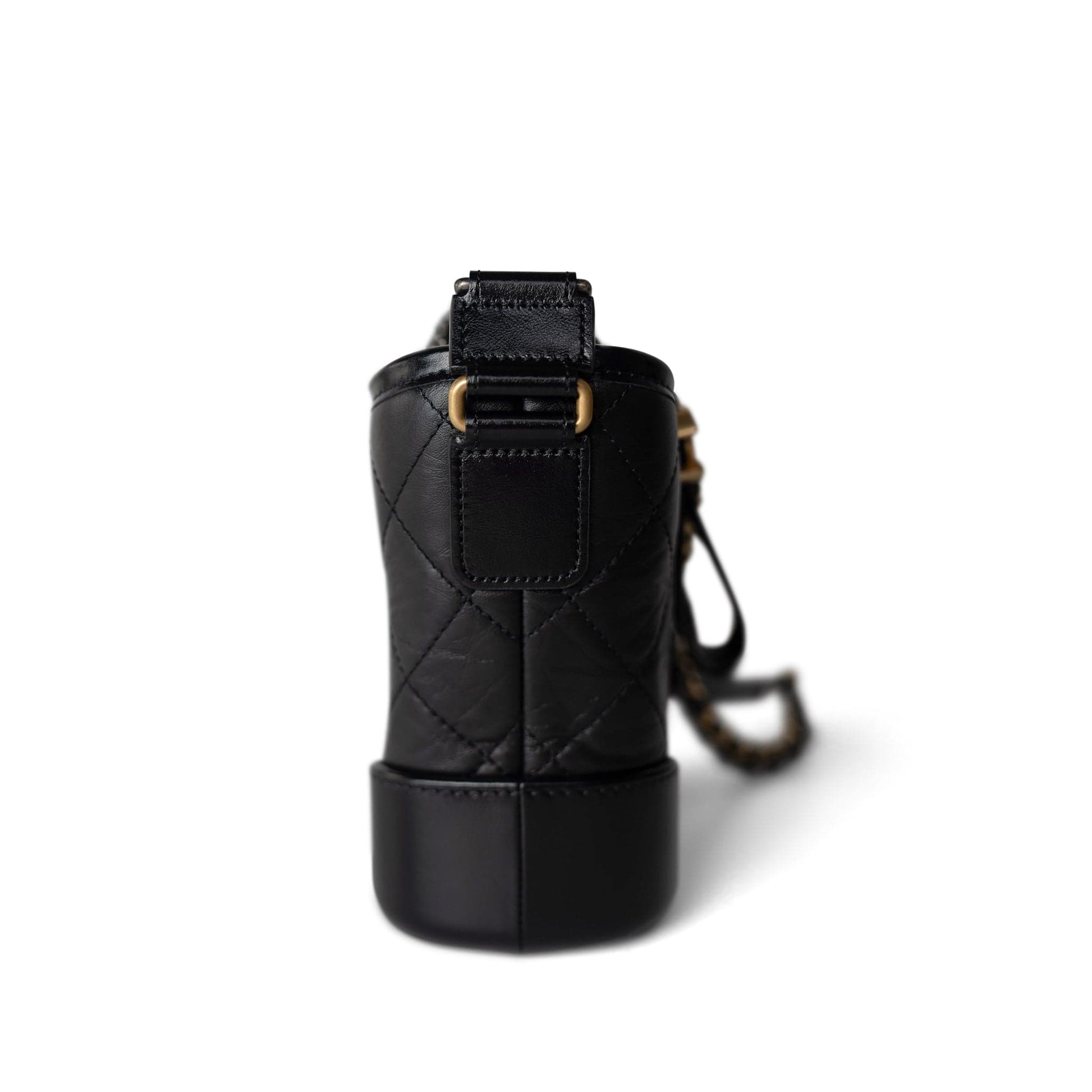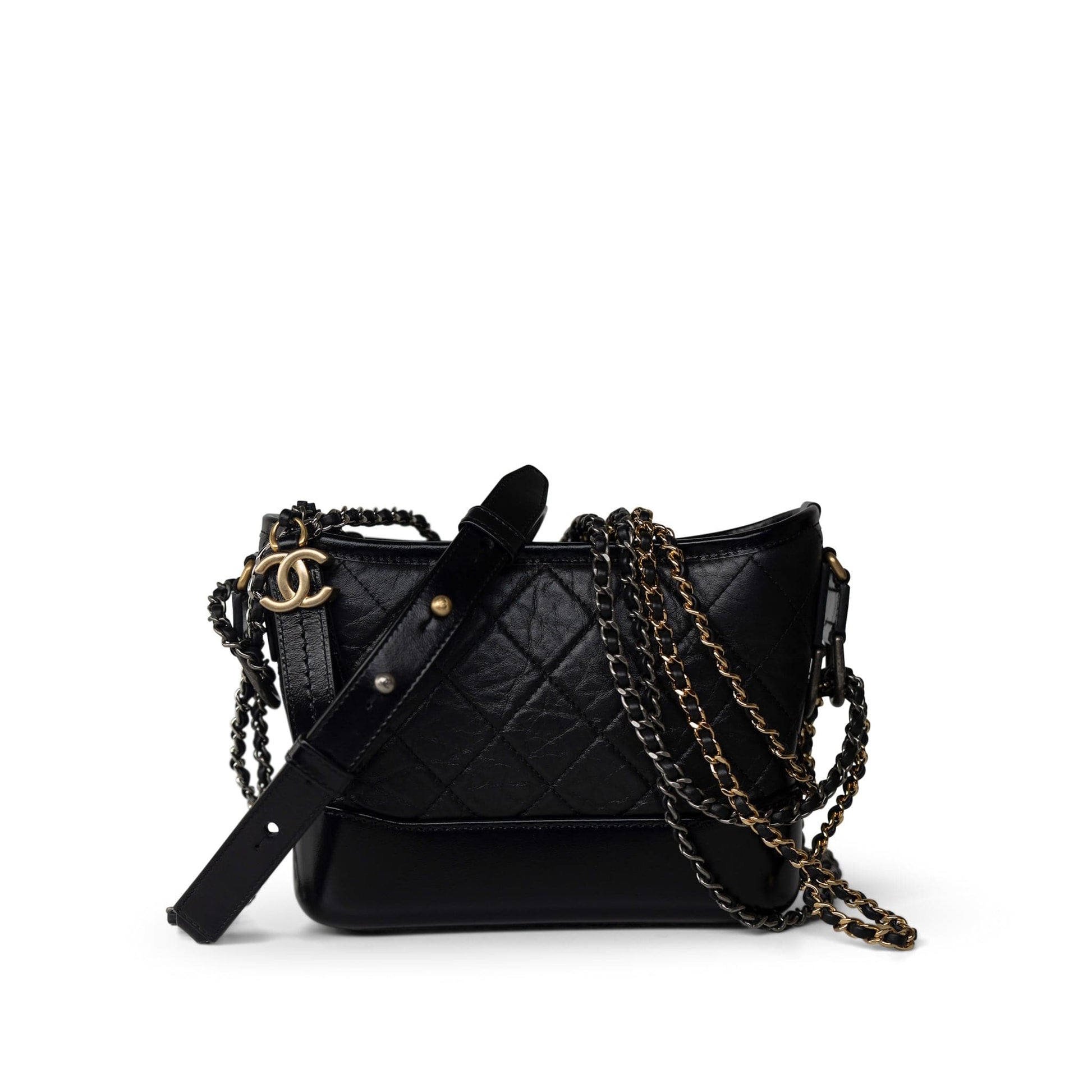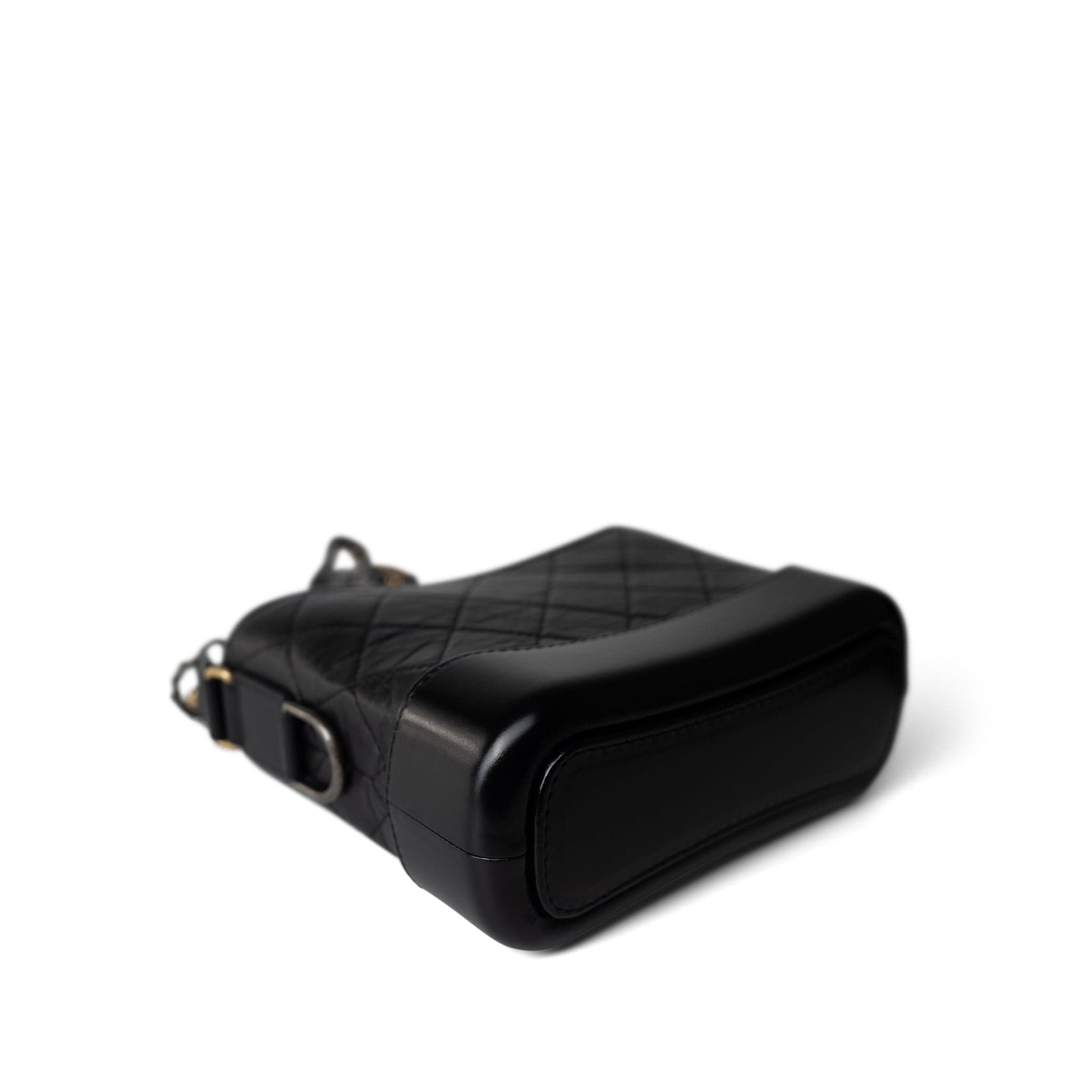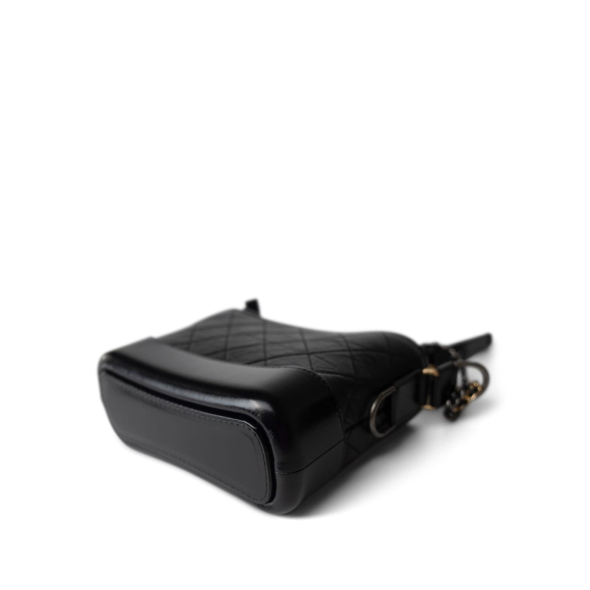 Black Aged Calfskin Quilted Gabrielle Hobo Bag Small Mixed Hardware
