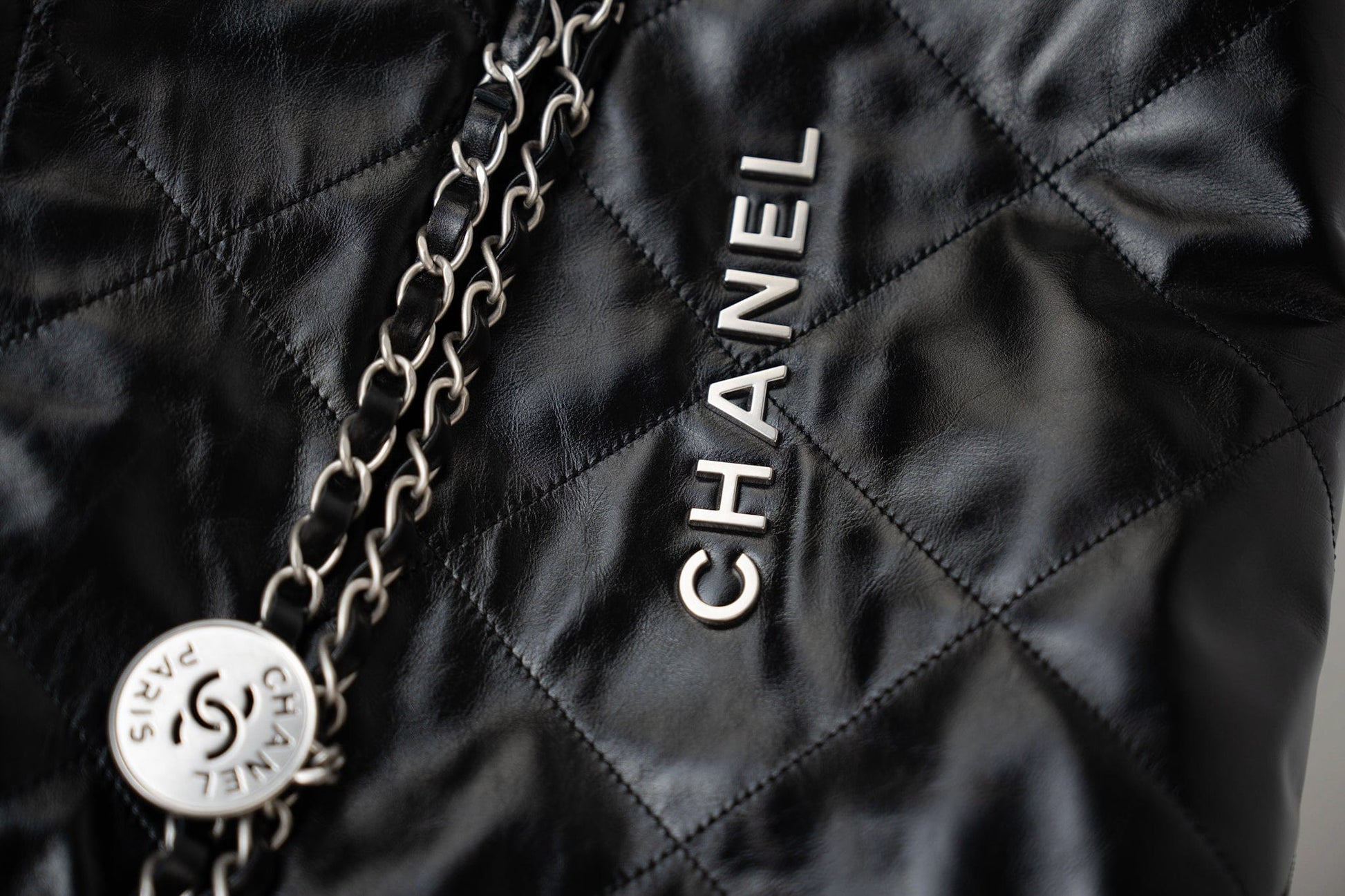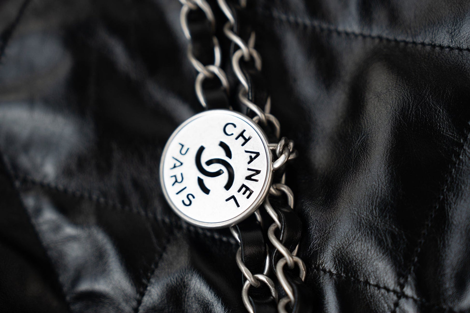 Black Calfskin Quilted 22 Bag Small Aged Silver Hardware